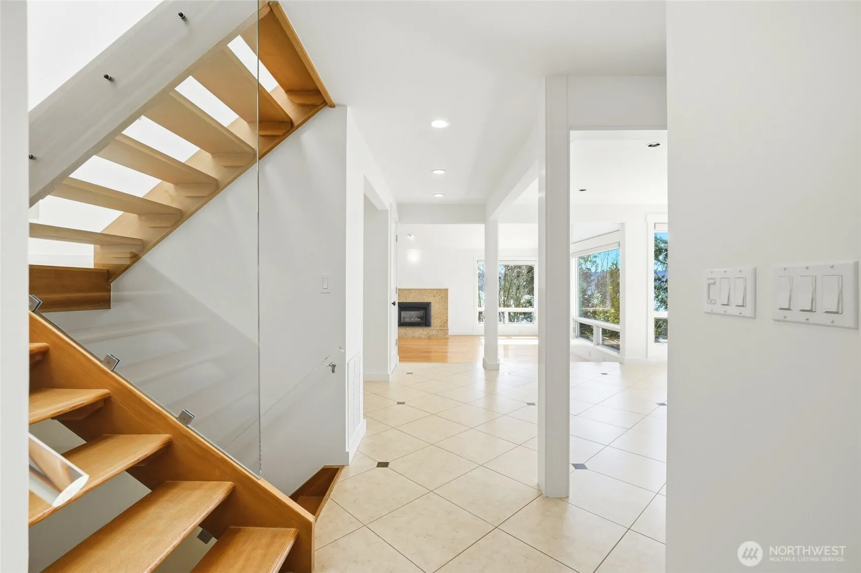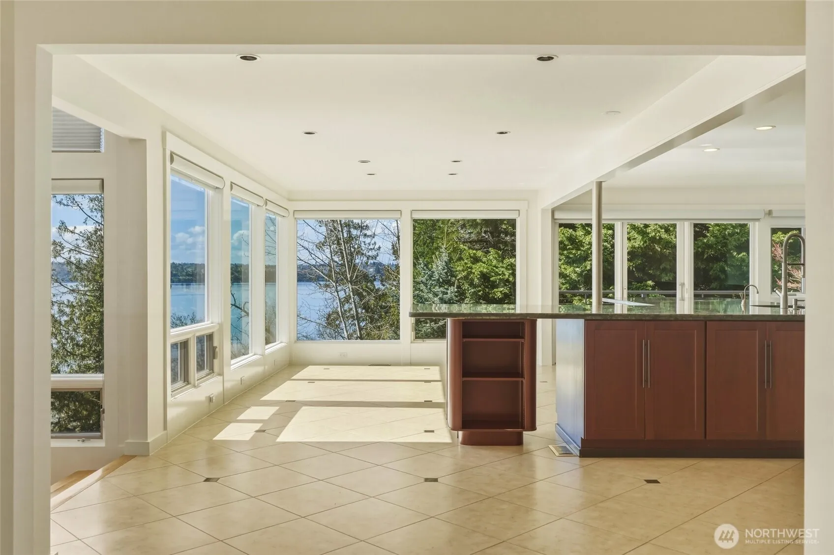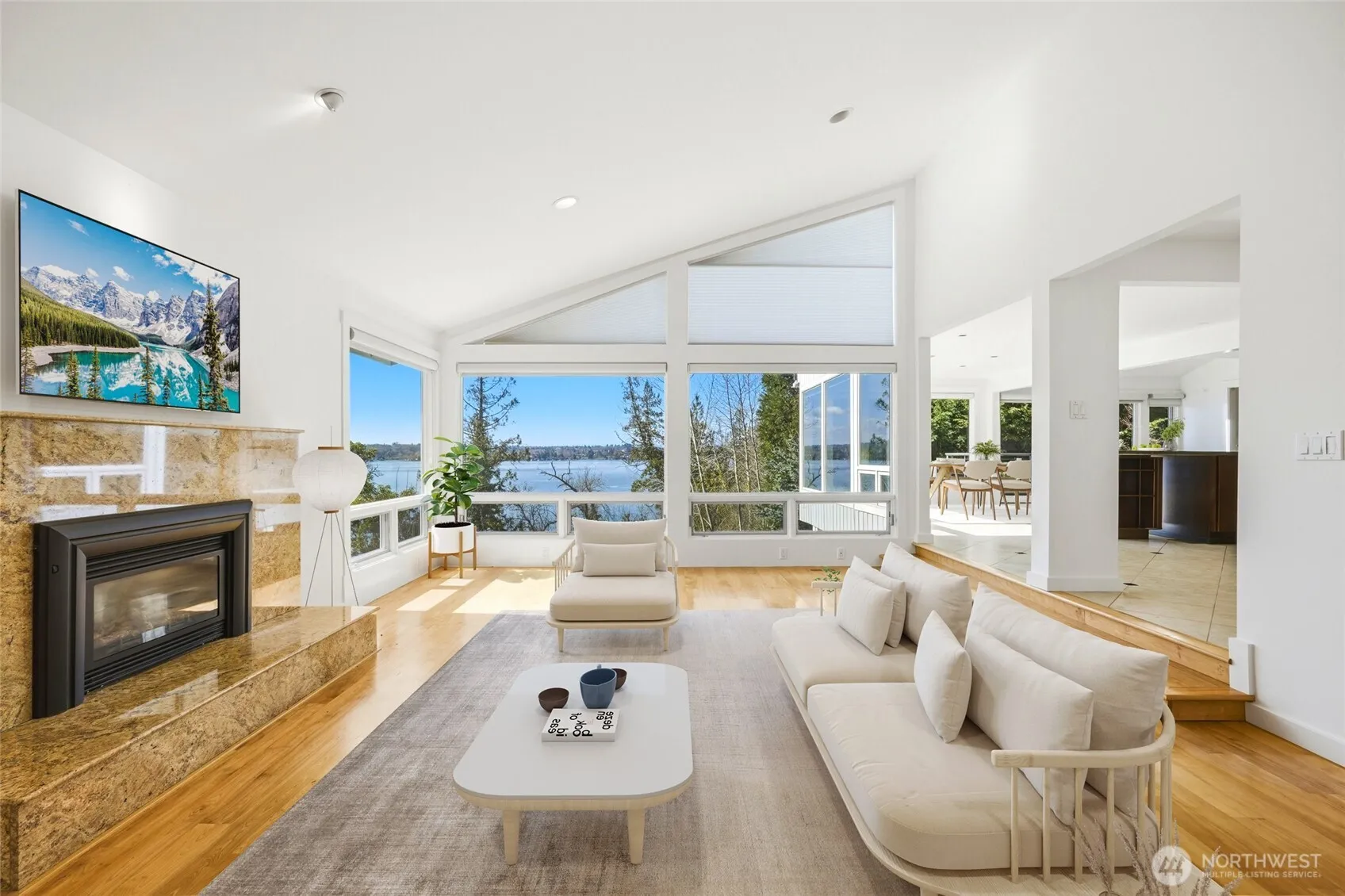 Step down toyour own private waterfront and enjoy unobstructed 270° lake views with a private 100-foot dock. This High bank gorgeous home is fully remodeled and ready to welcome you. Home showcases a professional kitchen with high-end appliances, including a Wolf French cooking range, Miele steam oven with warming drawer, a four-burner range, private wine cellar, and custom cabinetry with pull-out storage. Modern design features floating stairs, expansive windows, brand new blinds, custom fireplaces and counters, heated floors, fresh interior and exterior paint, updated electrical, new furnace, heat pump, and metal roof. The upper primary bedroom features an en-suite with separate closets, a steam bath, heated floors, a private patio, and unobstructed lake views. The lower level offers direct access to the mature garden where bald eagles are often seen. Walk down to your own waterfront or hop in your own boat. Located within a top school district. Very Rare opportunity to see the fireworks or Blue Angels from your own private decks or Dock! It is private and not publicly shared! Come and Check it out for your self. You won’t be disappointed.