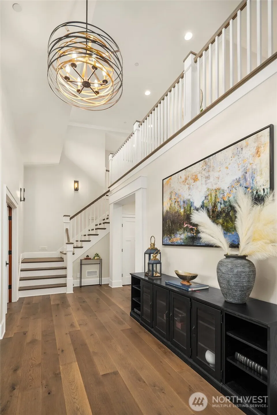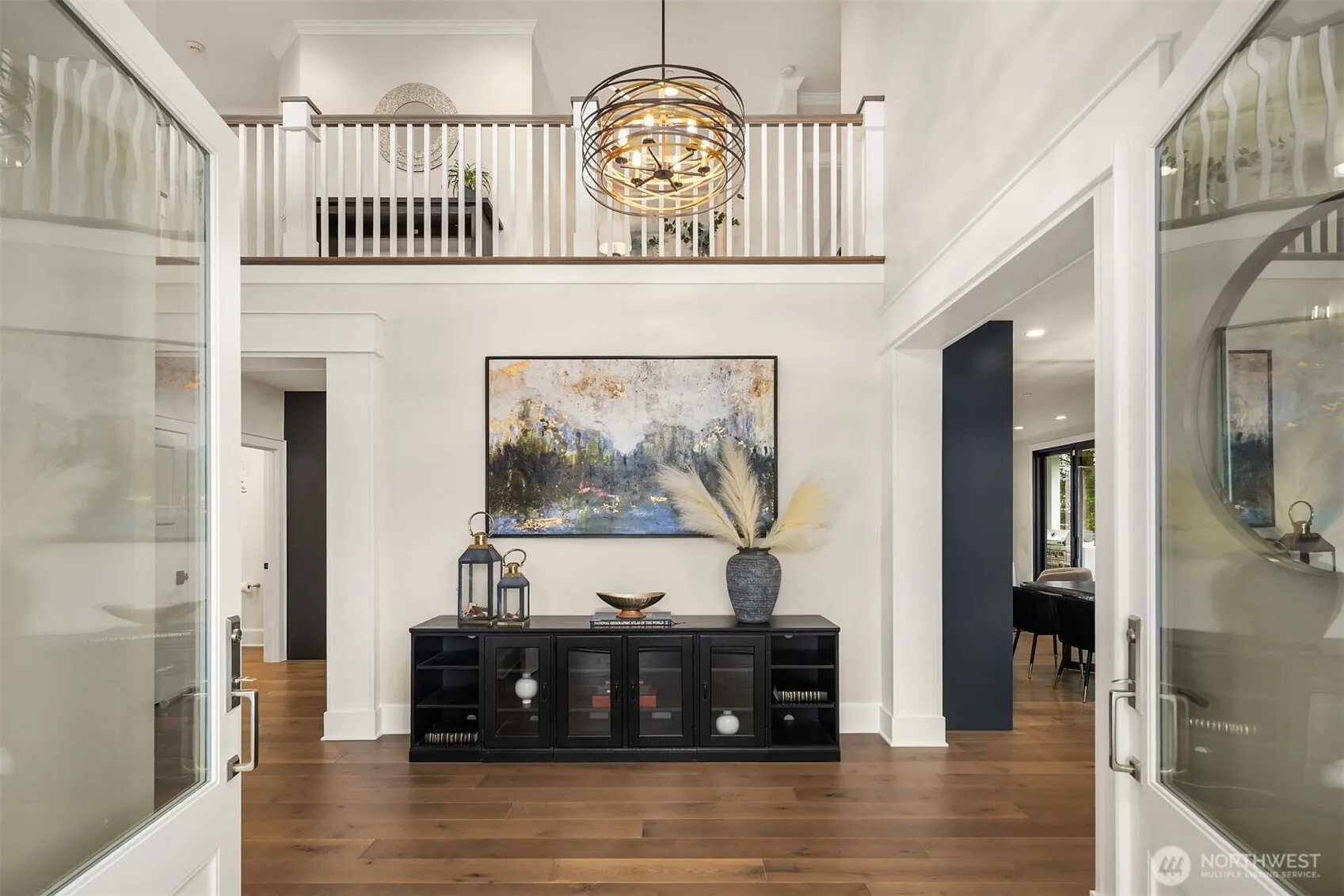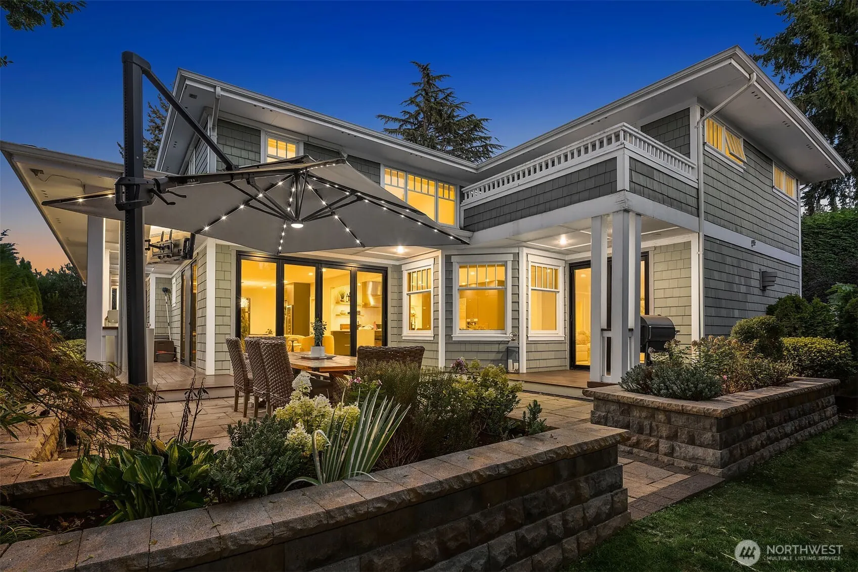 Nestled in coveted Yarrow Point, this beautifully remodeled Craftsman offers the perfect blend of timeless character and modern livability. A dramatic two-story entry sets the stage, leading to an open living and dining layout anchored by an entertainer’s kitchen and warm family room. Bifold doors spanning the main living spaces open to a private patio and lawn perfect for cozy nights in, spring entertaining, or casual gatherings. Rich hardwood floors, abundant natural light, and a thoughtful floor plan make everyday living feel effortless, complemented by a wood-paneled office with custom built-ins. Upstairs, four bedrooms include a serene primary suite with spa bath, freestanding soaking tub, large walk-in closet, and peek-a-boo lake views, plus a versatile guest suite, perfect as a bedroom, bonus, au pair, or extended stay space. Downstairs, a full entertainment level delivers a theater, game room, fitness room or guest bedroom, and ample storage. Space and storage abound throughout. The 3-car garage, mudroom, and 2 laundry rooms round out this exceptionally functional home. Blocks to Yarrow Point Park, beaches, and award-winning West Bellevue Schools.
