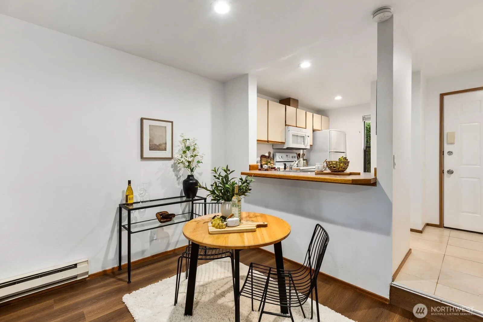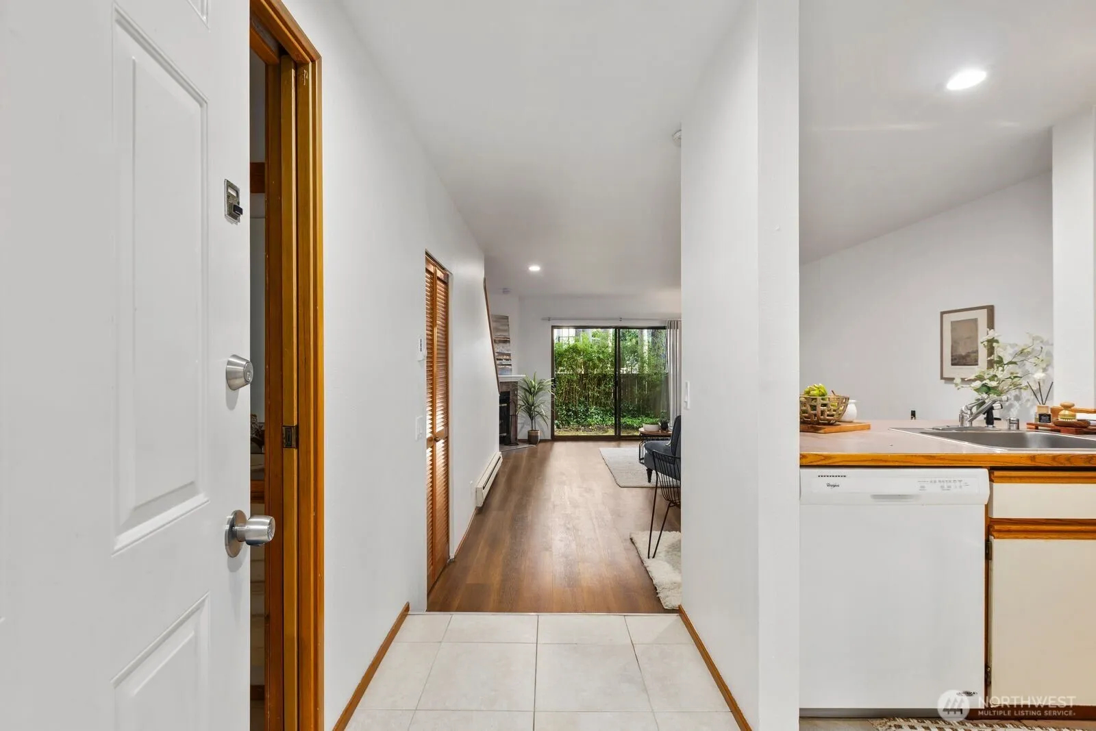 A must see! Welcome yourself home to this beautifully updated end-unit townhome in the desirable Evergreen community of Kenmore. Ideally located just minutes from I-405 and I-5, this home offers an easy commute to both Seattle and the Eastside while maintaining a quiet, tucked-away feel. Thoughtfully refreshed with new flooring, fresh interior paint, and brand-new carpet, the home is truly move-in ready and designed for comfortable everyday living. The functional layout features a bright and open main level, with a spacious living area that flows seamlessly to a private patio with yard space through sliding glass doors—perfect for morning coffee, gardening, pets, or simply relaxing in your own outdoor space. A convenient half bath on the main floor off the living room enhances livability for guests and day-to-day use. Ample kitchen space with bar seating adjacent to the dining nook. Upstairs, you’ll find two well-sized bedrooms and a full bath, offering separation of space and privacy. Dedicated single car detached garage for parking and an exterior storage closet for your day-to-day convenience. One of the best values in Kenmore, this is an incredible opportunity for first-time buyers, investors, or anyone looking to own in a strong Northshore School District location. HOA covers water, sewer, and garbage. A standout option you won’t want to miss!