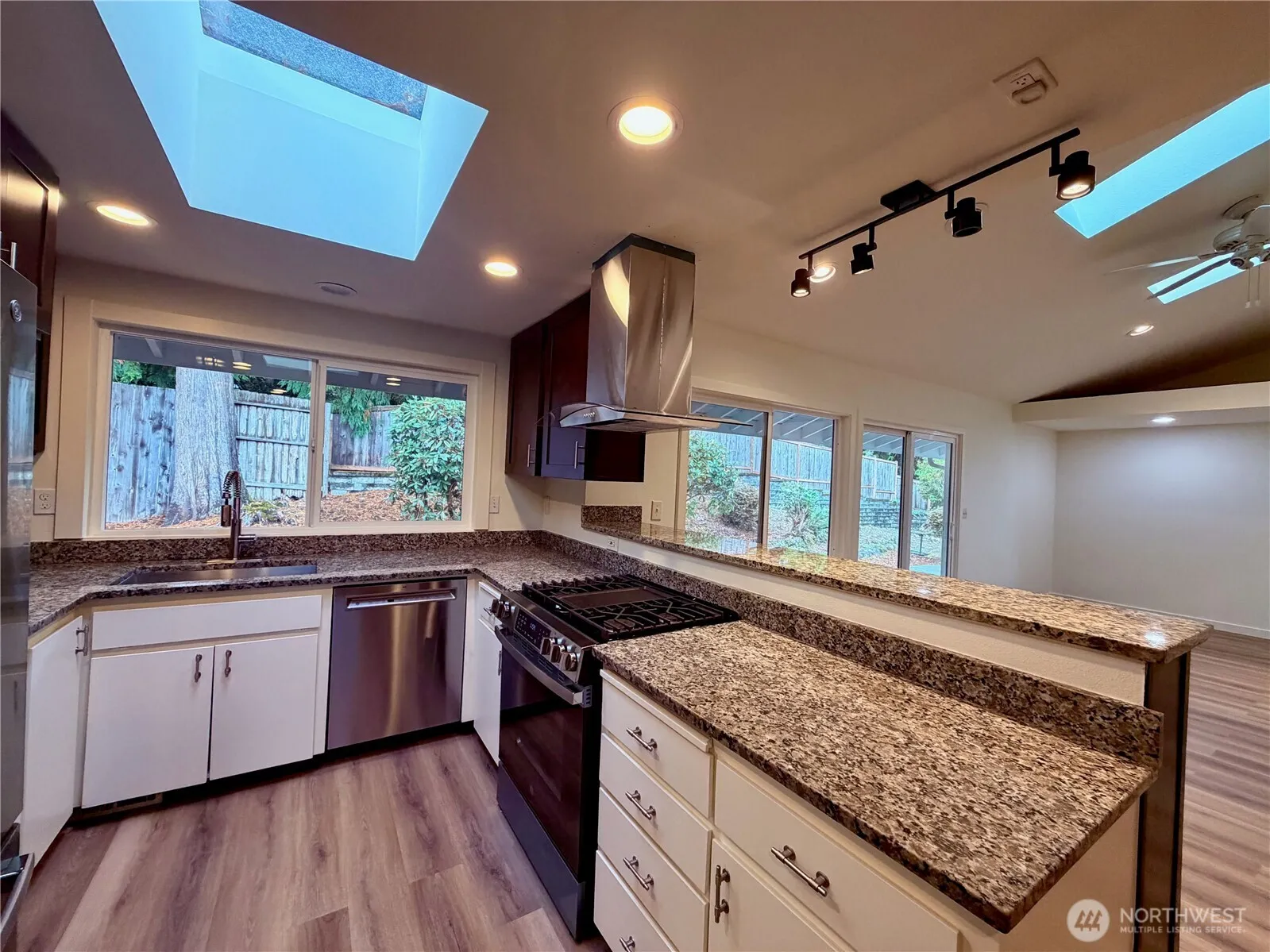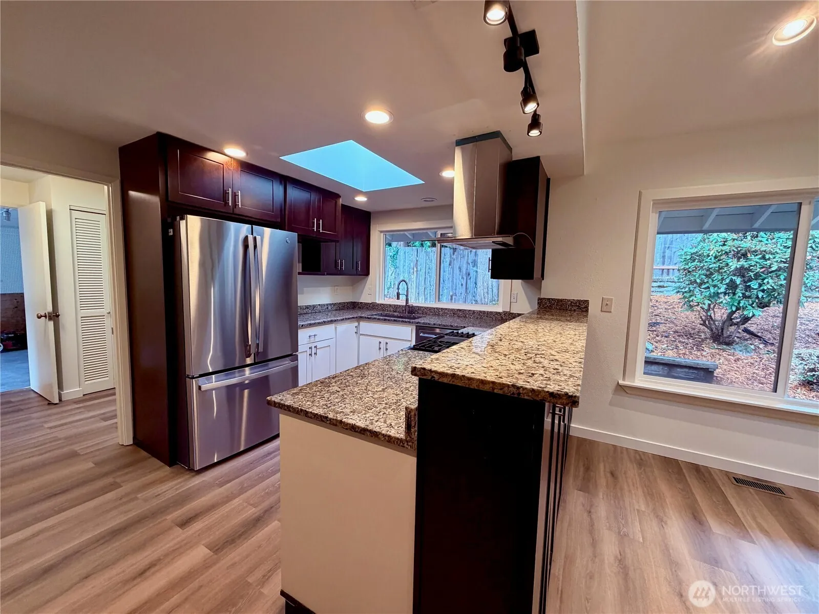 If you are looking for a home in Bellevue with a convenient location, ample off street parking, and multi-generational possibilities, then this listing is a must see! The tri-level design offers a family room, living room, and den/office on the main floor in addition to the kitchen, laundry room, and half bathroom. The wood burning fireplace features an indoor BBQ for those rainy days when grilling outside is not an option. The upper floor boasts the master bedroom with attached 3/4 bathroom and two additional bedrooms. The lower level has the forth bedroom and two additional finished rooms for your use as playrooms, additional family room, or a quiet sitting room with lots of natural light! The interior has new vinyl plank flooring, has been newly painted, and has all new kitchen appliances. The large lot provides an uncovered patio in the backyard with gardening areas, an ample front yard, and fencing on three sides.