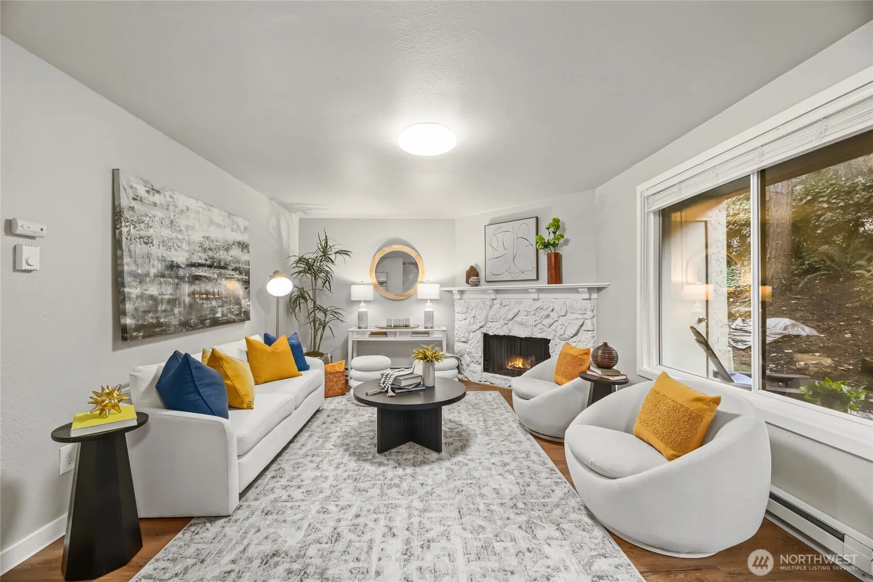 Welcome to Kirkland’s ‘Ridgewood Village’, where stylish comfort meets unbeatable Totem Lake convenience. This refreshed, light-filled 2-bedroom, 1-bath condo is thoughtfully updated and move-in ready. The kitchen features newer cabinetry and stainless steel appliances. Durable LVP flooring, fresh interior paint, modern window coverings, and updated lighting create a bright, contemporary feel throughout. Additional upgrades include a Rebath walk-in shower, new water heater, custom wood shelving in all closets, and exterior storage room for added organization. The spacious living room offers a cozy wood burning fireplace and opens to a walk-out patio with a low-maintenance garden of ferns and perennial flowers—perfect for relaxing or entertaining. The home includes in-unit laundry, a covered parking space, and ample guest parking. Ideally located just 1 mile to The incredible Village at Totem Lake- where you’ll find: Shopping, Dining, Theaters and gym facilities! With no rental cap, and HOA dues covering water, sewer, garbage, and more, this is a great opportunity for homeowners or investors.
