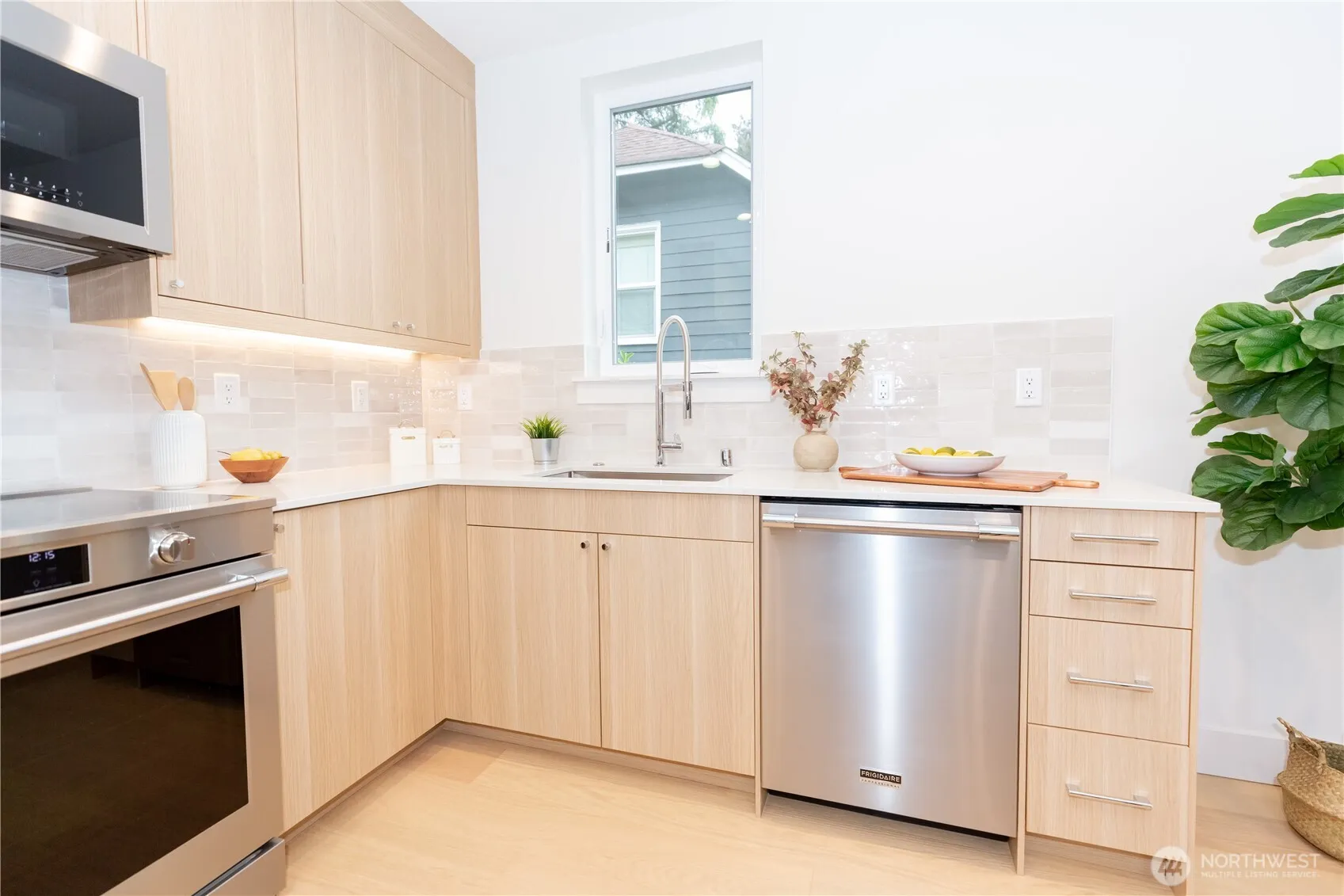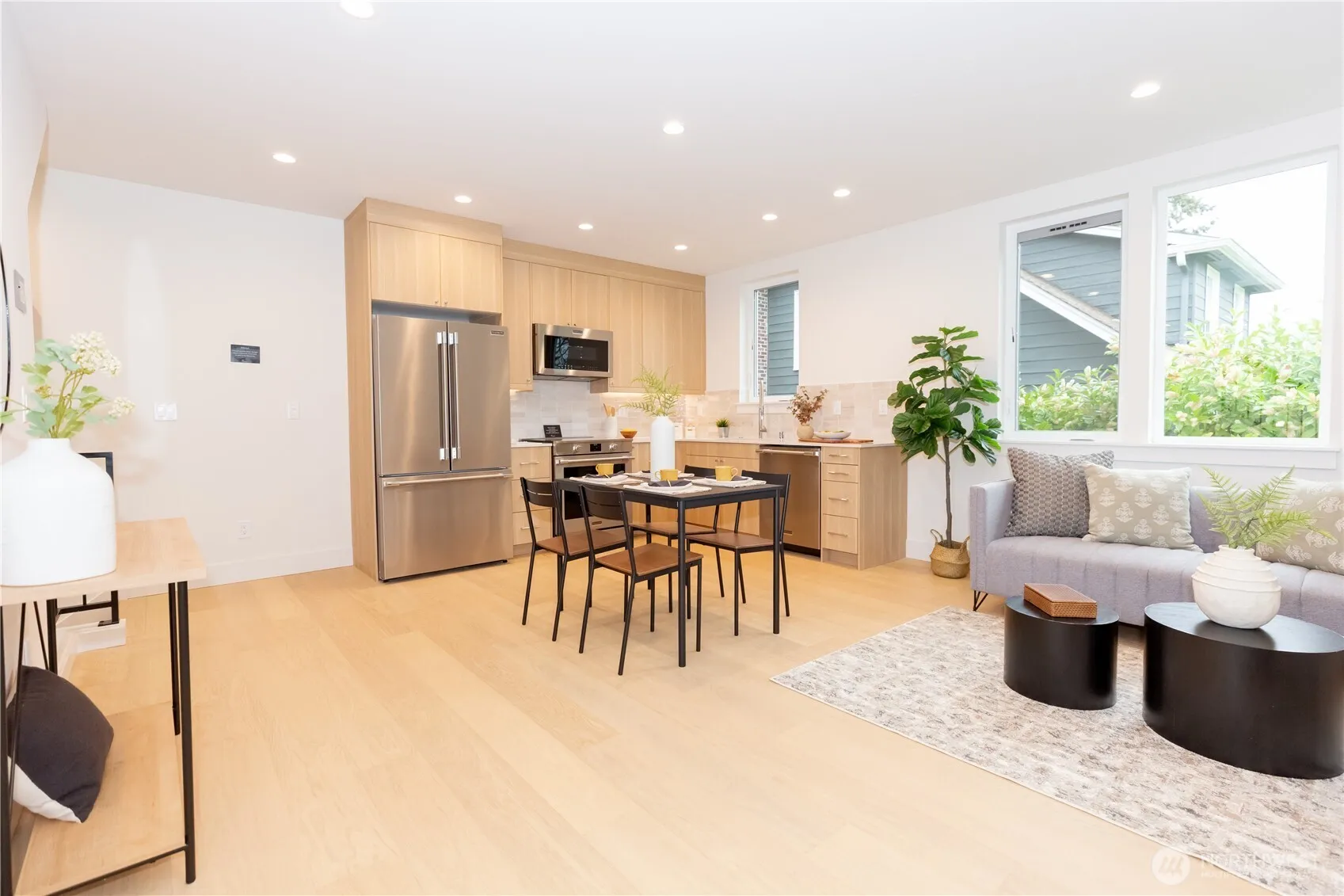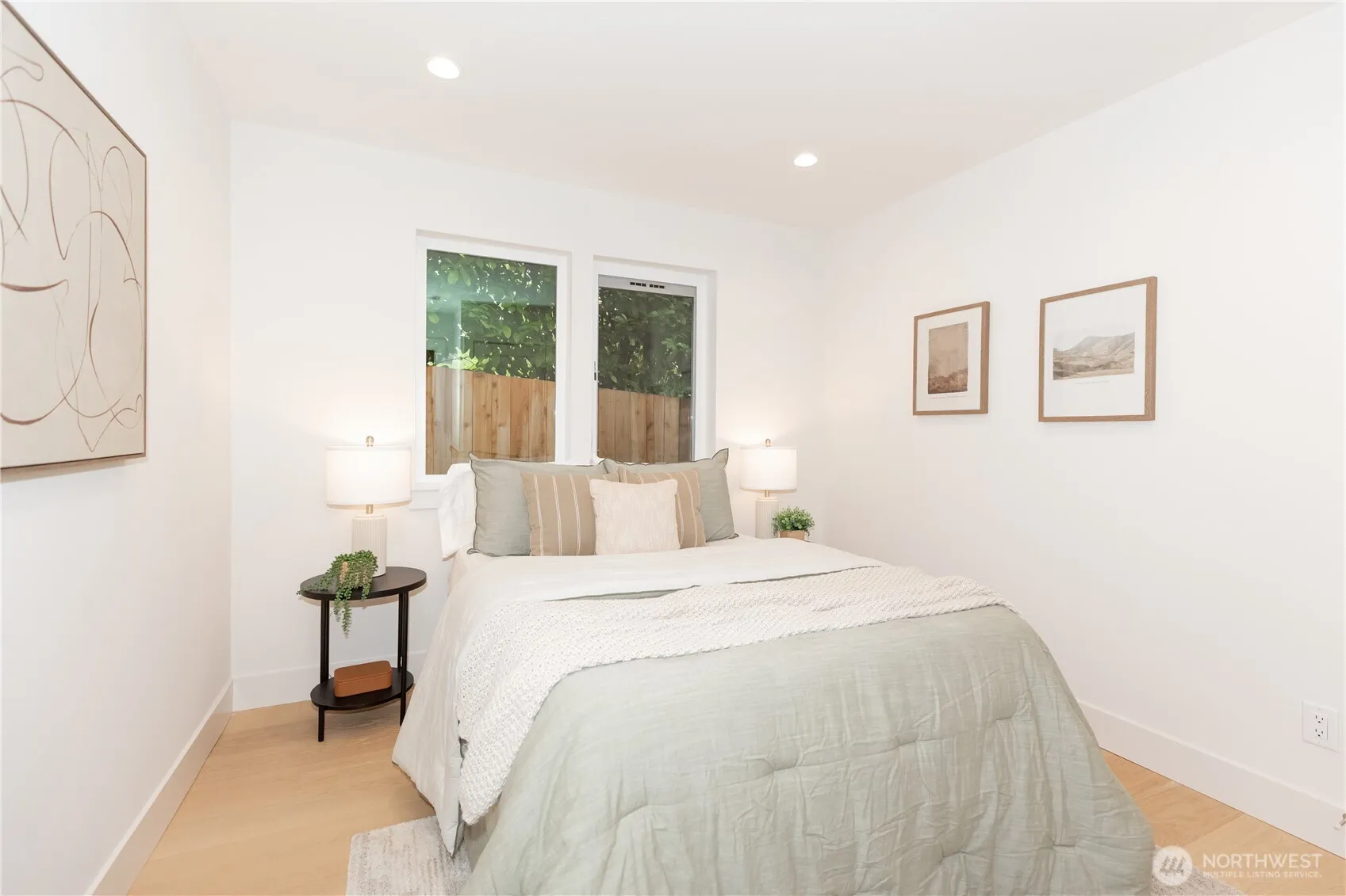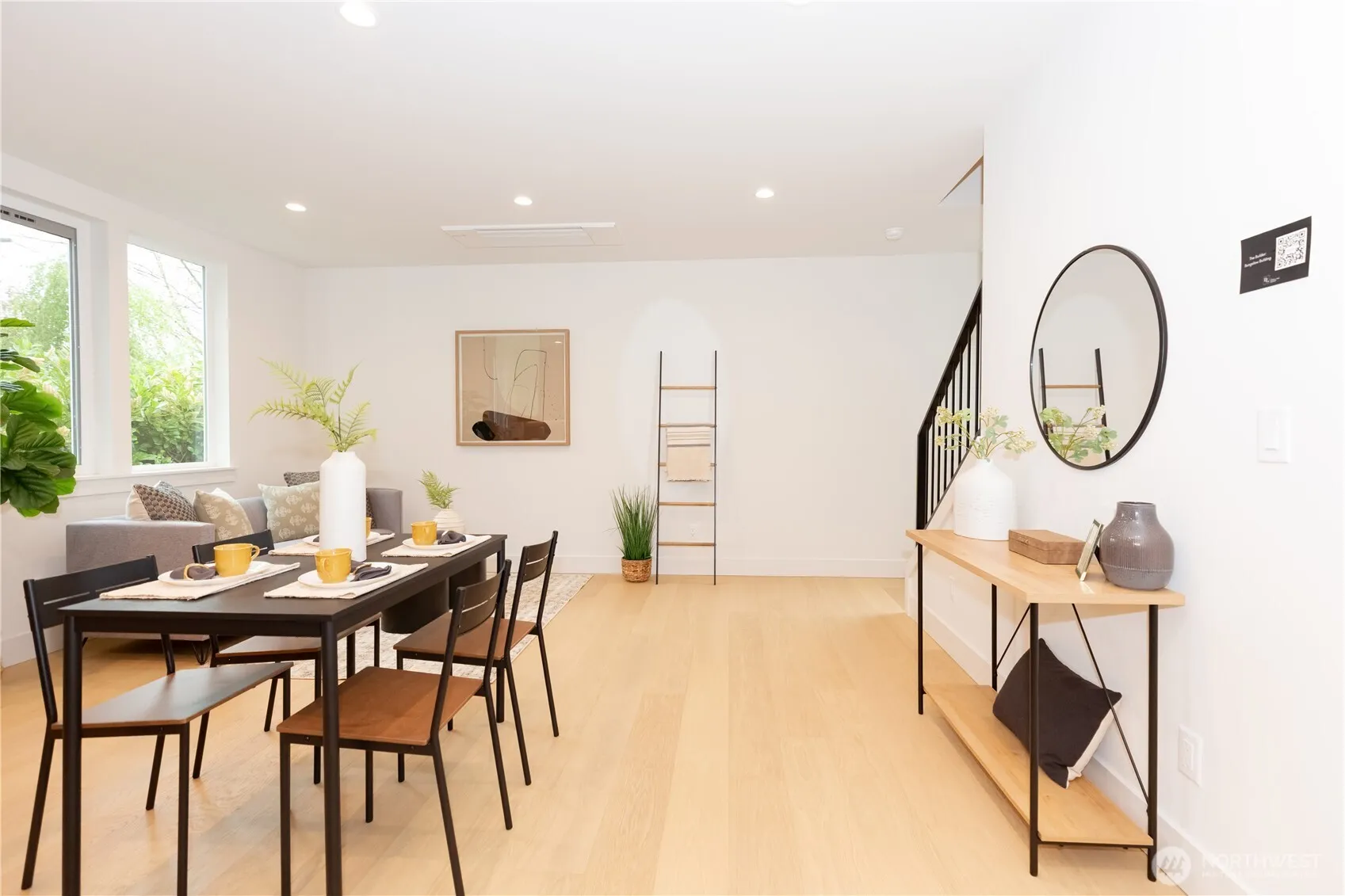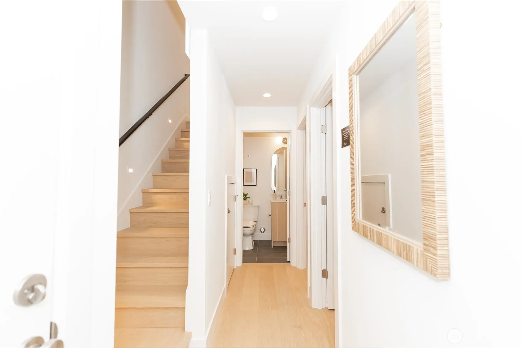Welcome to this community of three newly built modern homes in Seattle’s vibrant Central Area, crafted by Bungalow Building. Thoughtfully designed with contemporary living in mind, each home features an open-concept floor plan, premium finishes, and dedicated off-street EV-capable parking. This three-story, 1,087 sq ft residence offers a main level entry featuring one bedroom, a full bath and a spacious home office or guest bedroom with a sliding glass door to access a private patio. Upstairs, the second level includes an open living and dining area, an L-shaped kitchen with quartz countertops, modern cabinetry and stainless steel appliances. The top floor is reserved for the primary suite with high ceilings, a walk-in closet and a convenient laundry closet. High-end details throughout include engineered wide-plank oak flooring, smooth wall finish, custom tilework, frameless glass showers, private outdoor space, and energy-efficient mini-split heating and A/C on all floors. Ideally located just minutes from downtown Seattle, Capitol Hill, the Arboretum, and Madison Park, with easy access to neighborhood cafes, markets, and major commuting routes. Schedule a tour today! Walk score 77.