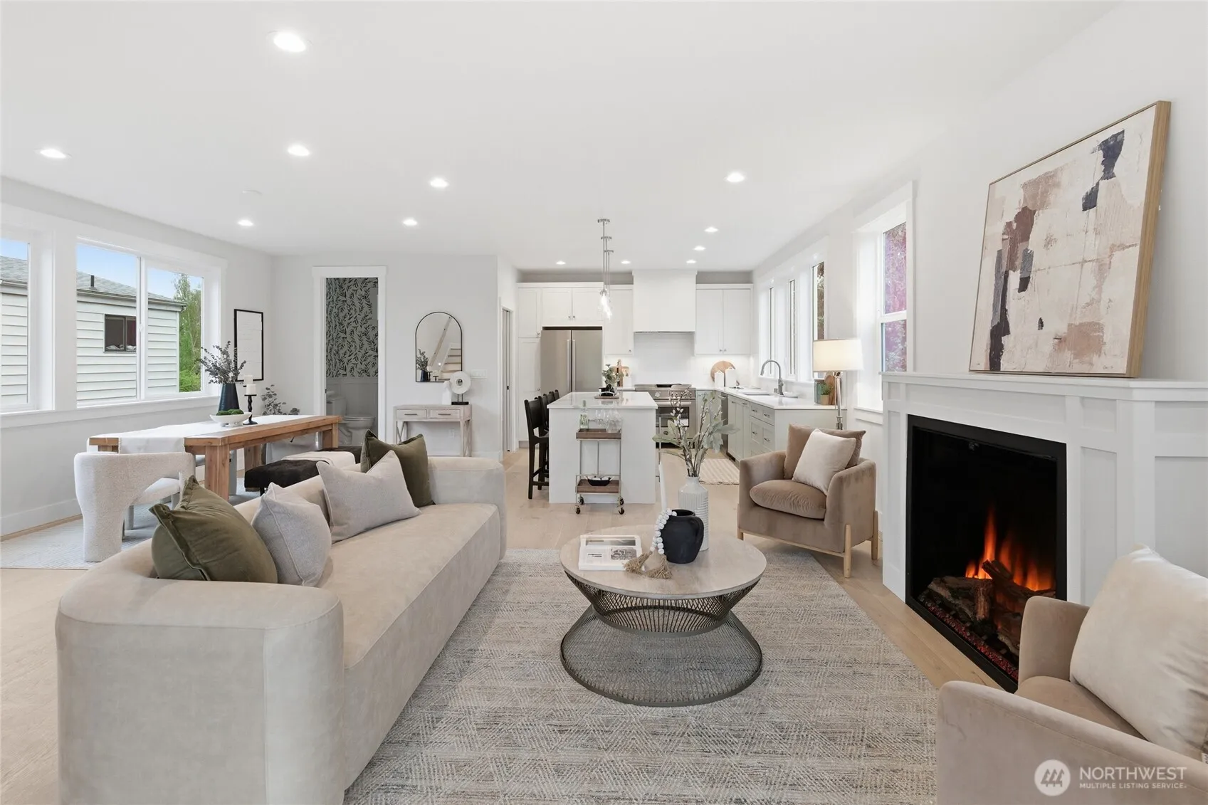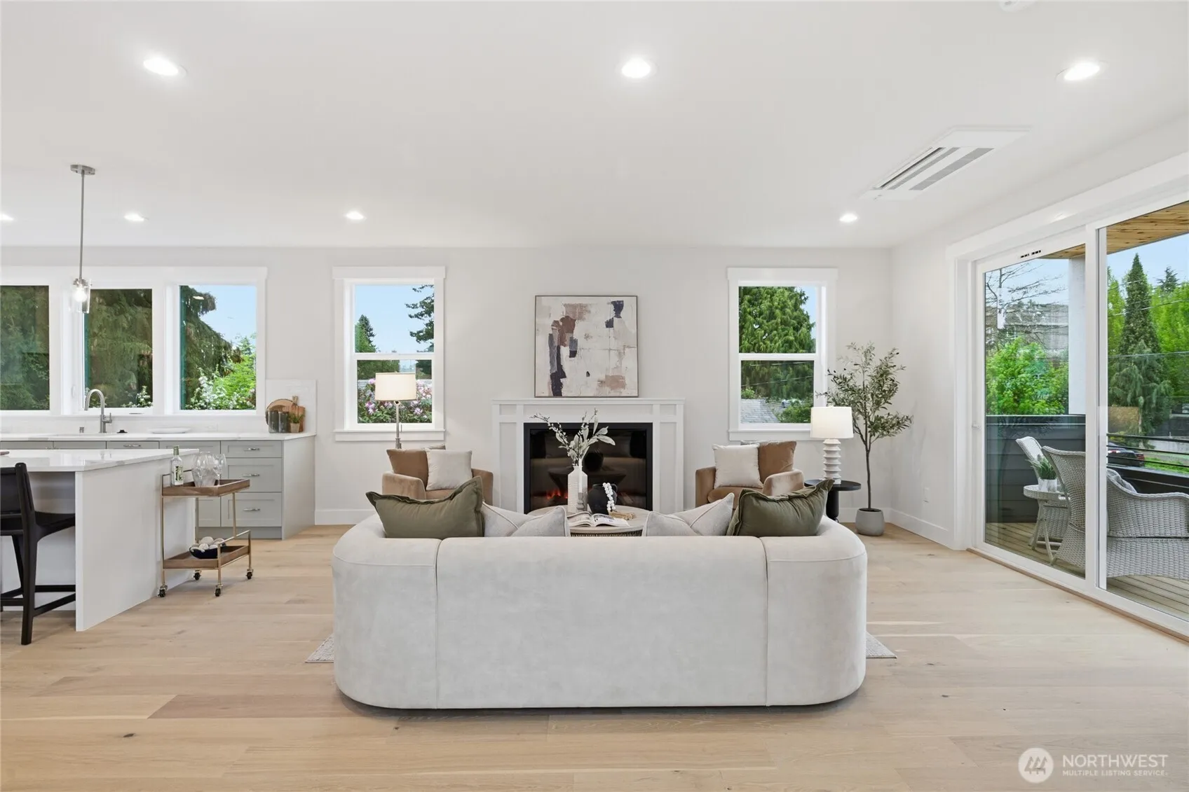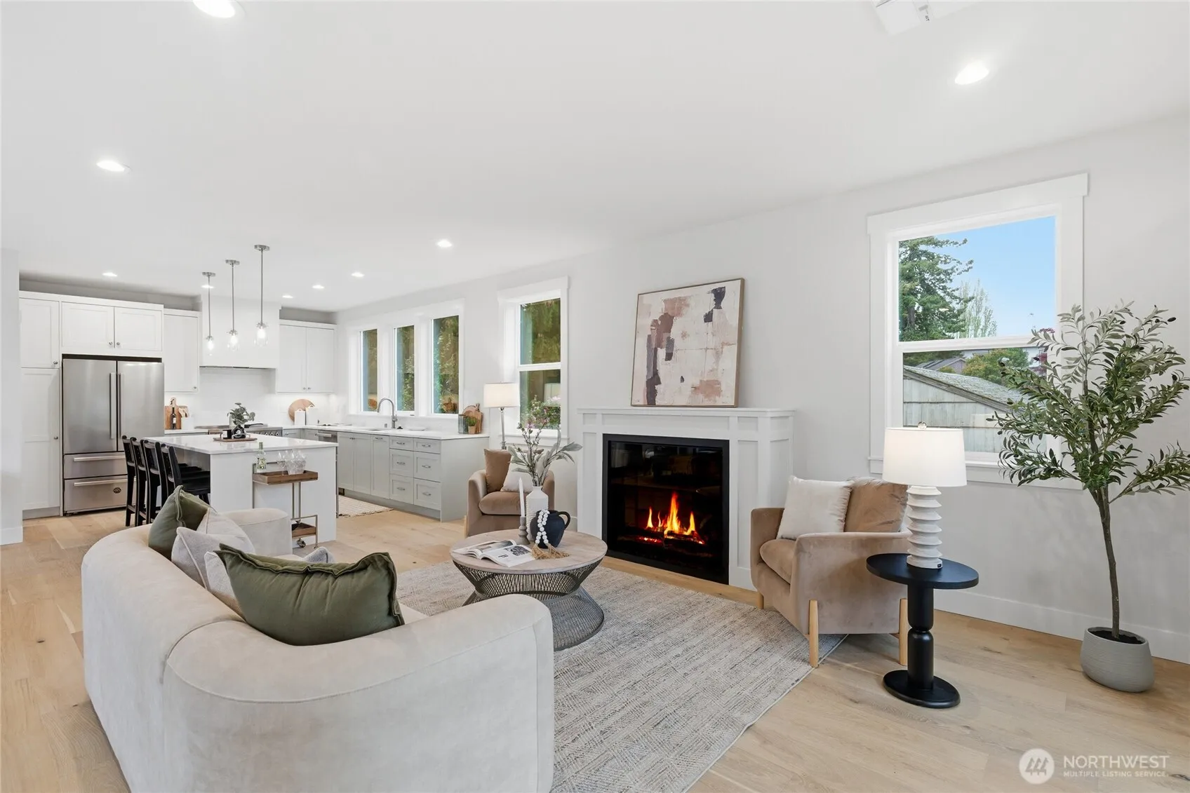 Crisp modern design meets everyday comfort. The largest of three spacious brand-new DETACHED homes from Seattle favorite boutique builder Garton Developments on one of the finest tree-lined streets in North Green Lake. Thoughtfully designed new construction, these home blends modern craftsmanship with timeless finishes. Wide-plank hardwoods, clean-lined shaker doors, and black hardware create a cohesive, elegant look, while a custom entry drop zone adds practical style. The kitchen features two-tone Bellmont cabinetry, quartz counters, full-height backsplash, and a spacious peninsula with pendant lighting. Bathrooms showcase designer tile, quartz, and modern fixtures, including a spa-like primary suite bath and a boutique powder room. Additional highlights include plush carpeted bedrooms, black spindle stair railings, curated exterior lighting, and a neutral palette for a bright, calm feel. Don’t miss the heated garage/flex room, a rare find for in-city new construction. Set on a quiet, peaceful street yet just moments from vibrant conveniences including Green Lake, Northgate Station, North Seattle College and much more!