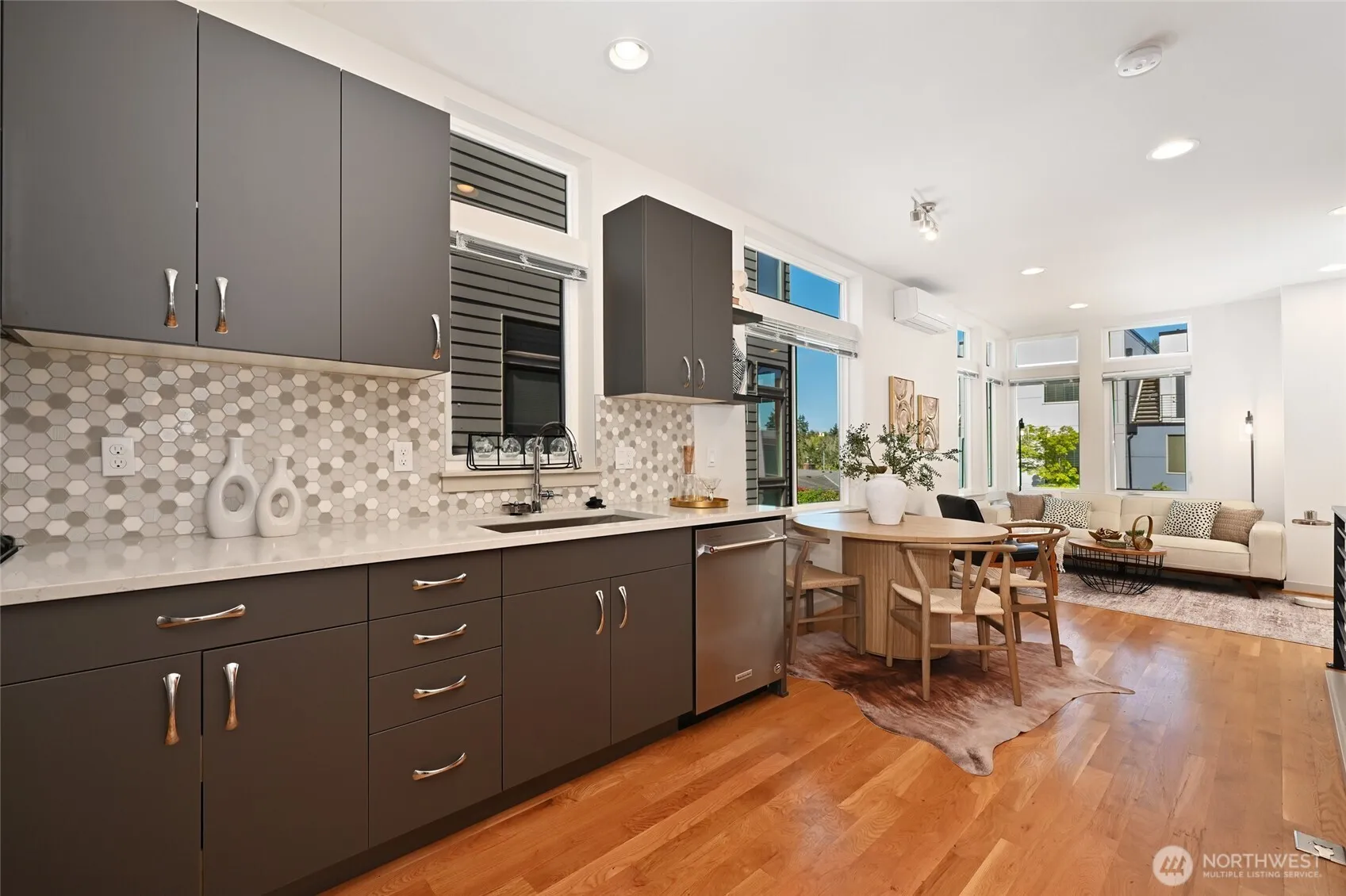 The one you’ve been waiting for! Perfectly positioned townhome on a quiet residential street in Laurelhurst! Beautifully built showcasing the ideal blend of style, space and functionality. Open main floor features chefs’ kitchen with stainless appliances, quartz counters, gas cooktop, designer tile, luxury vinyl plank flooring and expands to the spacious living & dining room framed by floor-to-ceiling windows for abundant natural light. Upper level primary suite with large closet, adjoining bath with double sink vanity & tile shower. HUGE rooftop deck for year-round outdoor enjoyment with lovely territorial views. Entry level features large 2nd bedroom and full bath. Tons of storage throughout, optimal large ‘easy access parking space’ and sewer capacity charge paid in full! Fabulous location near Children’s, UW, U-Village & Burke Gilman access. A stone’s throw to many fun eateries, coffee shops and parks. Easy 1-5/520 access taking you anywhere you need to go in a jiffy!