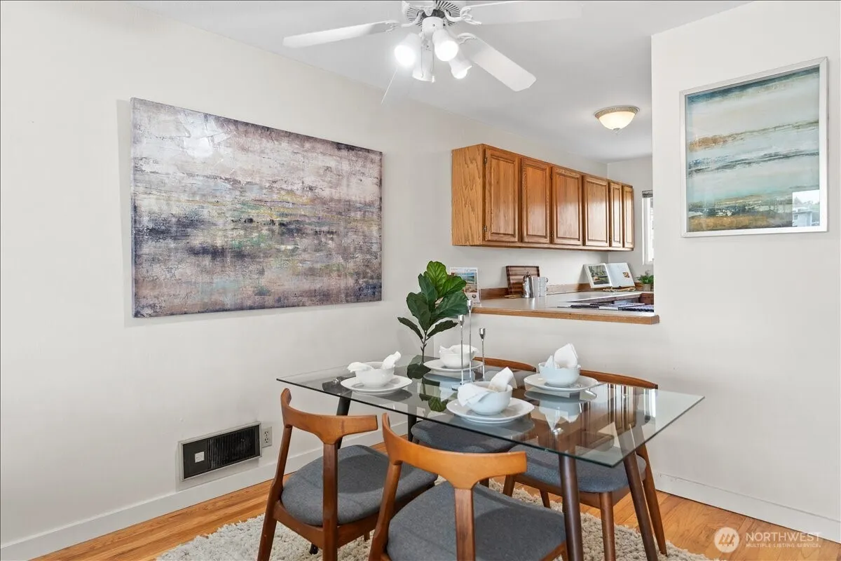 Lakefront living at its finest! Stunning unobstructed views of Lake WA & Mt Rainier from top floor. Seafair + Blue Angels fly overhead. Light-filled rooms, hardwoods throughout, & exquisite custom built-ins & cabinetry. Second open bedroom w/ Murphy bed for convenience, easily convertible w/ built-in flat screen, perfect for entertainment & extended living space. Beautiful kitchen w/ breakfast counter & SS appliances. Love the sliding glass doors onto large deck, great for relaxation, watching boats pass by &soaking in city &sound views. Cool off on hot days w/ SUP , kayaking or swimming off private dock. In-unit laundry. Controlled access entry. 1 dedicated parking space. Prime location, steps from Leschi Market, BluWater, & Daniel’s Broiler. No Rental Cap. Welcome Home!
