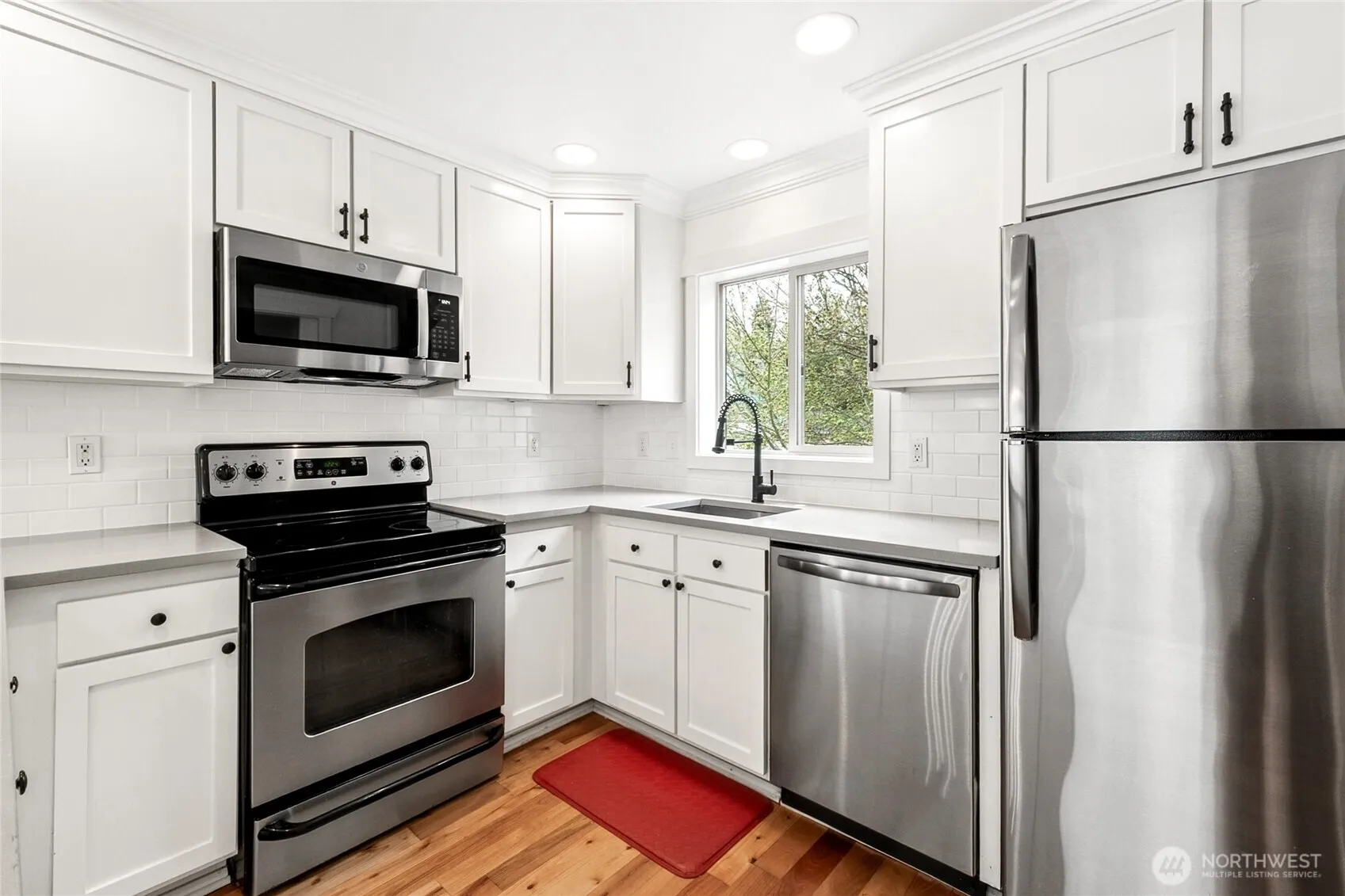 Lovely end unit townhome that truly delivers what buyers want—garage, extra parking, fenced yard, and no HOA dues or restrictions. This is homeownership on your terms. Newly painted inside and out, with brand new higher-end carpet, this home feels fresh and is move-in ready. Flooded with all-day southern light, the main level offers a floor plan that actually works, with defined living, dining, and kitchen spaces, plus a convenient half bath. Beautiful real hardwoods and updated kitchen and bath. Upstairs feels quiet and private with vaulted ceilings, two spacious bedrooms, and a full updated bath. Lower level entry from the garage or courtyard includes an additional flex room—perfect for a guest bedroom, office, or den. Summer-ready with a welcoming front yard and patio, ideal for BBQs, gardening, and connecting with neighbors. Parking is a true standout. Attached garage with shop/storage space, plus rare additional parking thanks to end-unit placement at the end of the alley. Vibrant, friendly neighborhood with easy access to light rail, bus lines, and freeways. Close to the Rainier Beach community center, public pool with waterslides, playfields, pickleball/tennis courts, and Lake Washington parks and beaches. Adjacent to elementary and K–8 schools, with the brand-new Rainier Beach High School and International Baccalaureate program just down the street.