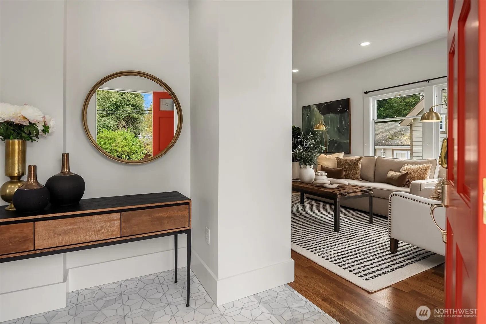 Quintessential West Seattle charm meets modern comfort in this North Admiral home located on a quiet cul-de-sac. The rocking chair front porch invites you into the renovated interiors. You’ll love the soaring, near 10-foot ceilings & warm, elegant ambiance complemented by abundant natural light. The original brick fireplace with new mantle & gas insert anchors the living room. Spacious media room. The sunny, flexible bonus room is equally suited for a home office, sunroom or playroom. Brand new kitchen with walk-in pantry, Bosch appliances, large island workspace, & well positioned BBQ deck. Coveted 3 beds & 2 baths upstairs, including a serene primary suite with South facing roof deck. All bedrooms have vaulted ceilings & walk-in closets. Updated bathrooms with heated floors, designer tile, & floating Toto toilets. Delightful glimpses of Puget Sound & mountains from several spots inside & out! Ample space to play in the fenced backyard. Enjoy alfresco dining & lounging on the front deck. Renovations include all electrical & plumbing, new attic insulation, new appliances, new furnace, & PVC sewer line to the street. Wood shop/craft space in the dry basement or use it for extra storage. Detached garage & plenty of off-street parking. Located equally between the North Admiral shopping corridor & Alki Beach in a spot of urban convenience, yet full of neighborhood charm. Close to groceries, shopping, bars, restaurants, schools, parks, & the Admiral theater. Welcome home!