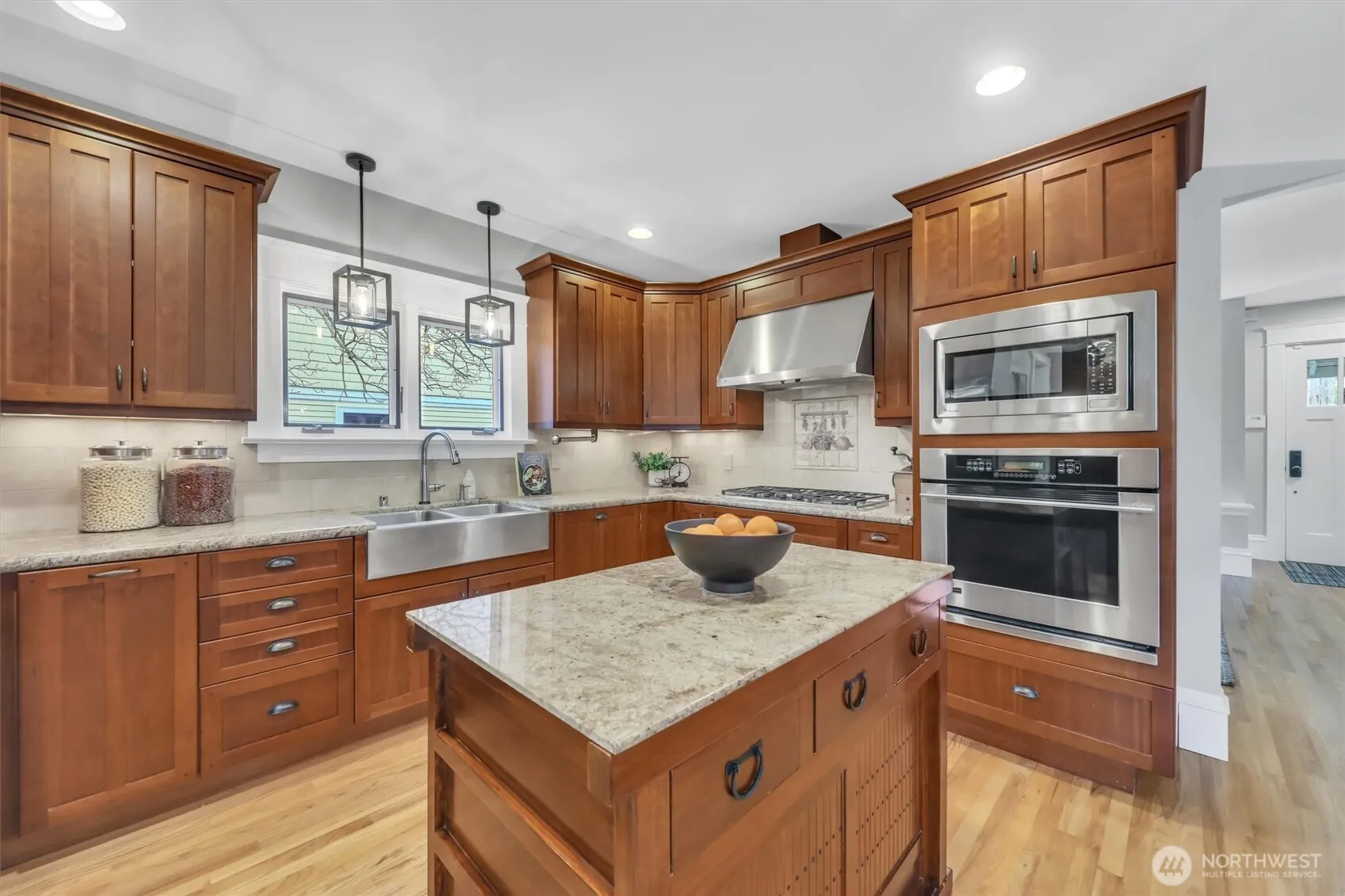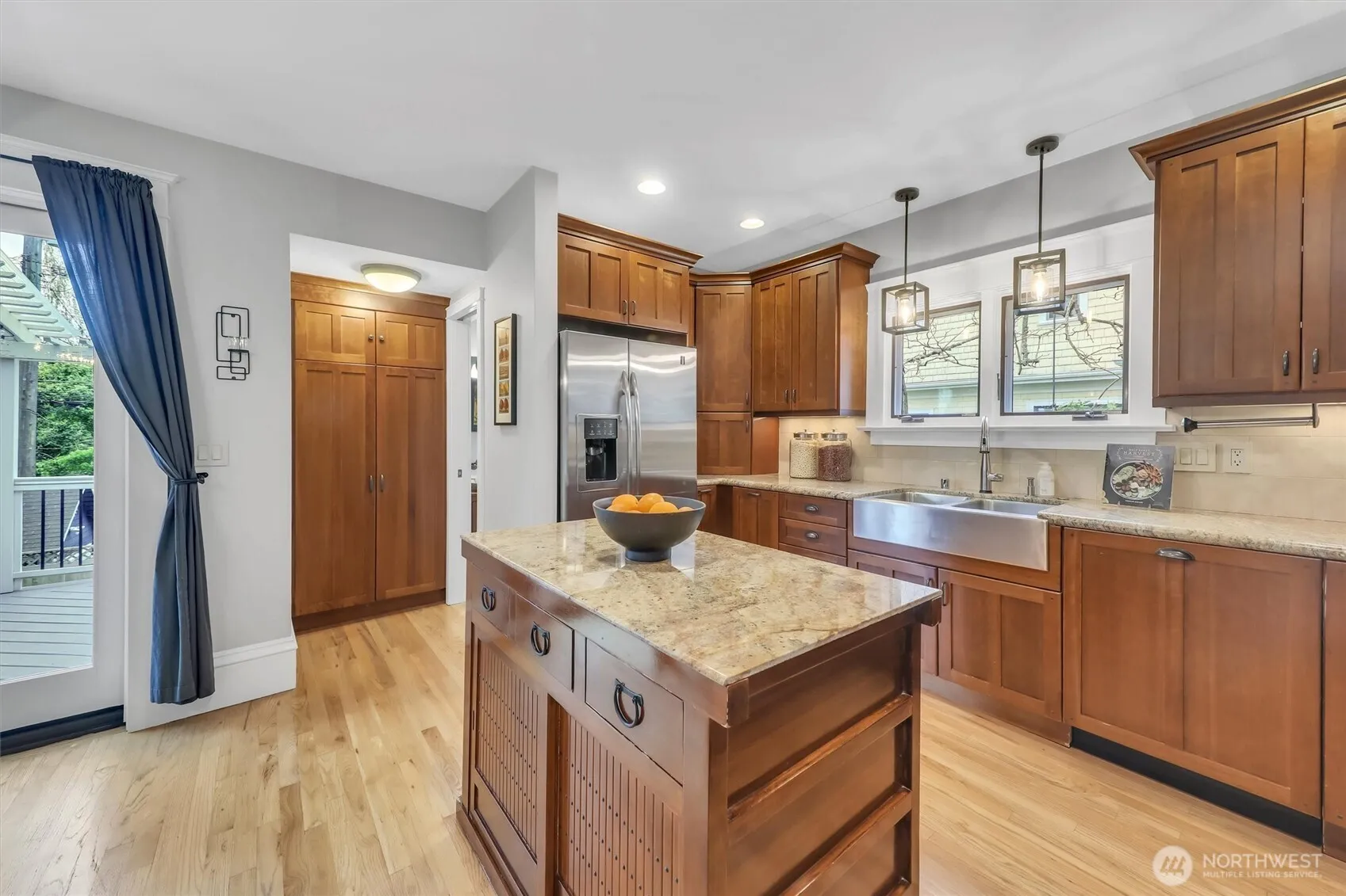 Just a half-block off Admiral, this thoughtfully updated Craftsman blends timeless character with modern comfort in one of West Seattle’s most sought-after neighborhoods. With coffee, dining, parks, and the Alki shoreline moments away, it offers an ideal mix of convenience, walkability, and vibrant community living.The main level features gleaming hardwoods, a welcoming living room with gas fireplace, and a granite and stainless kitchen accented by rich cherry cabinetry. A powder room and flexible office/TV room add everyday practicality. French doors open to a spacious deck overlooking the professionally landscaped yard, perfect for morning coffee, summer dinners, or quiet evenings outdoors in a truly private setting.Upstairs, two peaceful bedrooms share a spa-inspired bath, creating a calm retreat. The finished lower level enhances versatility with a third bedroom, generous family room, stylish ¾ bath, laundry, and ample storage—ideal for guests, hobbies, or extended living. Step outside to a covered patio designed for year-round enjoyment. A garage off the alley completes this well-appointed home, offering comfort, thoughtful updates, and a layout that adapts beautifully to modern life.