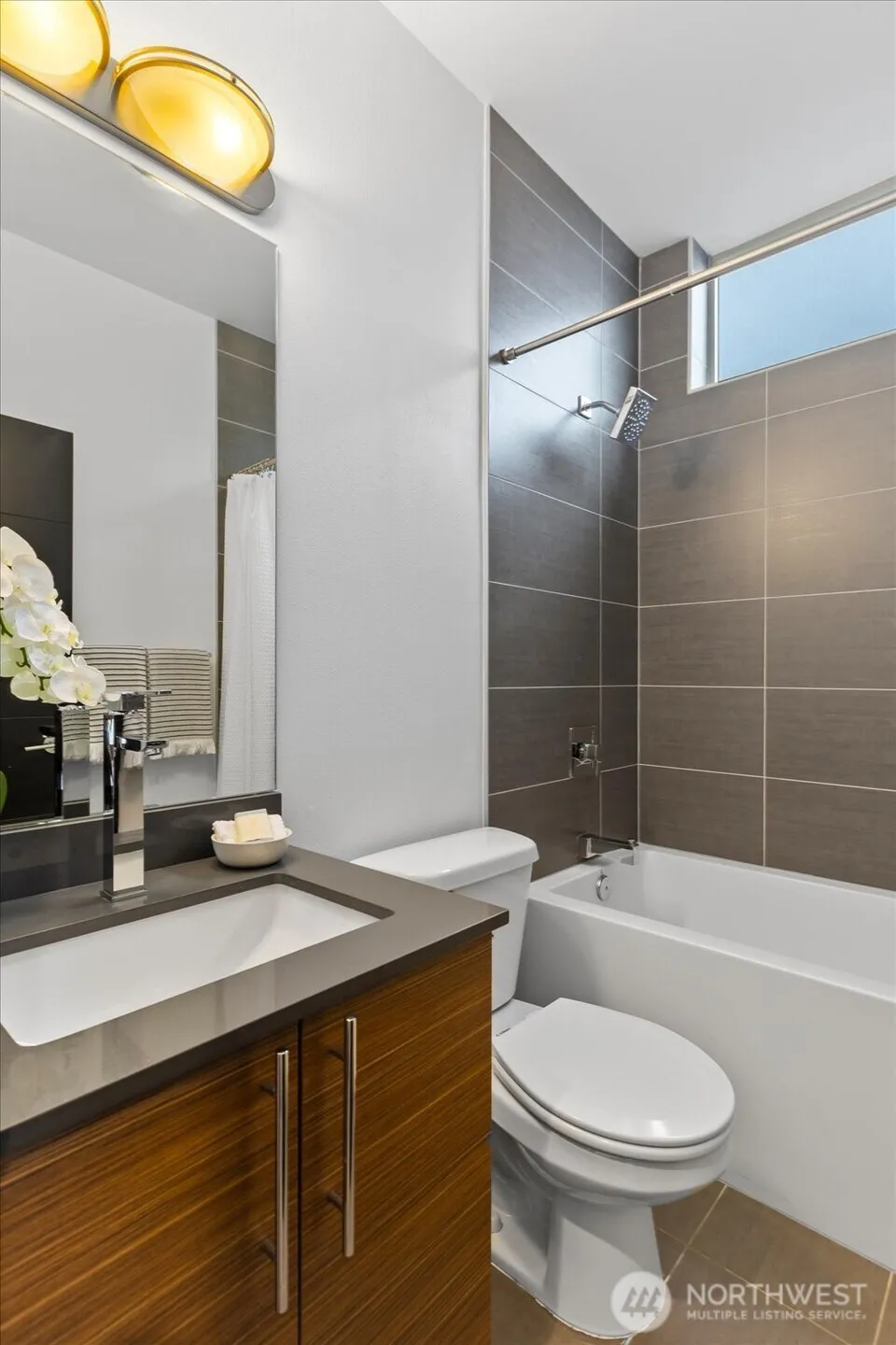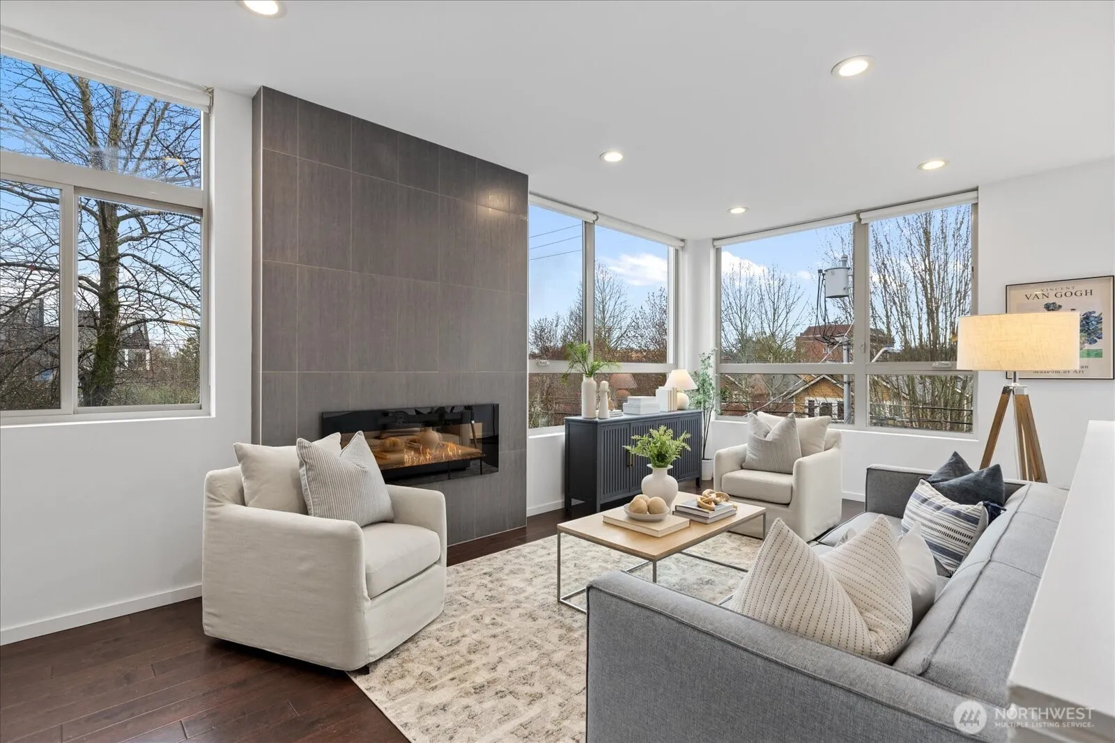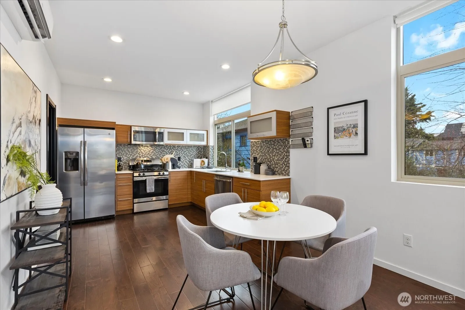SW corner townhome in the heart of the Central District – Built Green 4-Star & flooded with natural light from expansive windows on two sides. Open main level with soaring ceilings flows seamlessly between living, dining & kitchen, great for entertaining or just settling in. Designer kitchen with sleek cabinetry, SS appliances & HW floors throughout. Two beds up, flex third bed or office space on the lower level. Four baths total. Rooftop deck with sweeping Seattle skyline views. Enjoy morning coffee, sunset drinks & city lights. Gas hookup on the patio for easy grilling. Steps to Midtown Square & the 23rd & Jackson corridor with restaurants, cafés & shops. Minutes to Judkins Park & Lake Washington Blvd’s waterfront trails. Mini-split A/C, garage parking & no HOA dues. Easy access to Downtown Seattle & the Eastside for an effortless commute.