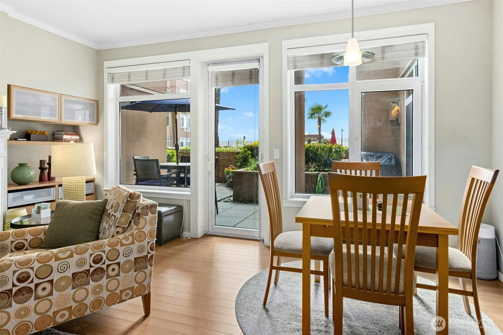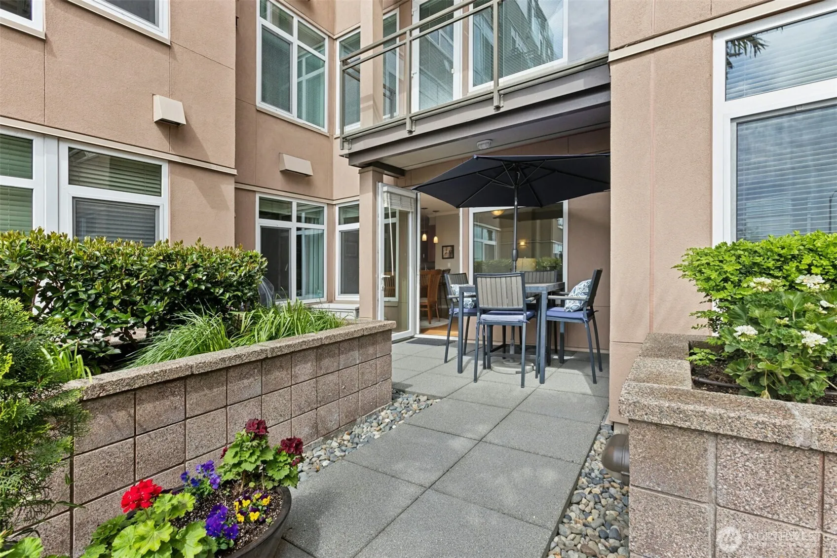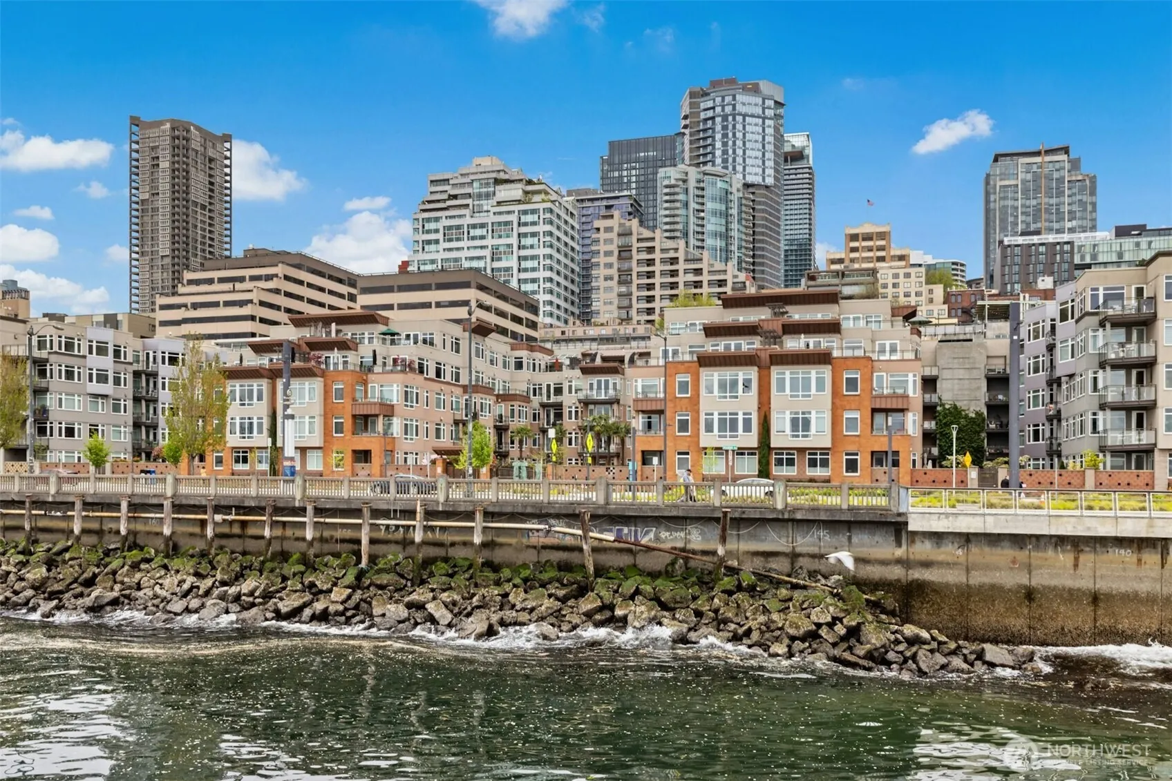 Location is everything and this beautiful West facing condo at Waterfront Landings has it all! Ideal main floor location with spacious private patio with sound views. Enjoy the new pedestrian friendly paths in front of the building and be in the heart of it all with Pike Place market & the new overlook walk behind you and the waterfront and Puget Sound out your front door. The condo has been beautifully updated with Bamboo hardwood floors, renovated bathroom with tile, dual vanity, quartz counters, oversized shower as well as upgraded carpet in the primary and the den. The kitchen has stainless appliances, wine refrigerator, counter eating space and quartz countertops. Spacious den and in unit laundry. The primary bedroom has a walk in closet and there is a storage unit just down the hall on the same level as the home. One oversized parking space with a gated secure garage. There is a concierge on site 24/7 with a secure entrance. The building has a rooftop deck with spectacular views, a fitness center, hot tub, club room to host large gatherings and a hobby room in the basement. The building also has guest suites available to host visitors at a nominal fee. This is a well maintained building with a strong HOA. There is no rental cap. Do not miss this beautiful home.