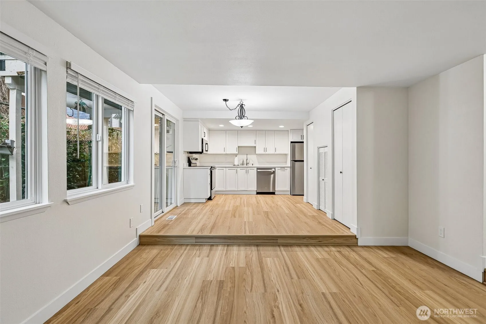 Completely remodeled and move-in ready—this ground-floor 1BR/1.5BA end unit blends style and comfort in the heart of Totem Lake. Enjoy high-end finishes, quartz counters, brand new appliances, new floors, and a rare private sauna in the primary suite. The open layout flows to a private patio, perfect for relaxing or entertaining. Features include a real fireplace, full-size laundry, generous storage, two parking spaces (one covered), and no rental cap. Set among lush, garden-like grounds with no special assessments, just minutes to Totem Lake Village, dining, shopping, and easy I-405 access.