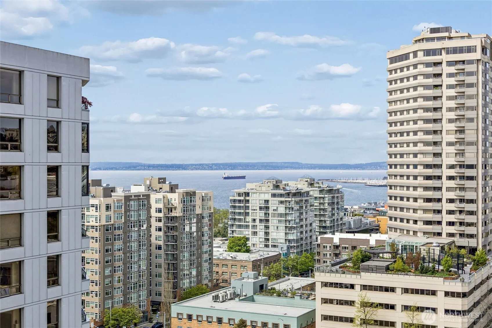 Timeless elegance meets modern sophistication in this fully redesigned 2-BEDROOM + HUGE DEN home. The expansive den easily functions as a third bedroom, office, or media room. Amazing floorplan and thoughtfully designed with two spacious primary suites -each with its own ensuite- positioned on opposite ends of the home for ideal privacy. Showcasing picturesque, front-row panoramic views of Elliott Bay, Mt. Rainier, and the Cascades, this one-of-a-kind 1400 SQFT+ residence is filled with natural light from expansive wall-to-wall windows. The open layout features a chef’s kitchen, a proper dining room, and a large, inviting living area. Enjoy seamless indoor-outdoor living with two large covered view balconies. Designer upgrades include new light hardwood floors throughout, custom cabinetry in the kitchen and both bathrooms, statement lighting, built-in closets, tailored window shades, and air conditioning. Seattle Heights offers 24-hour concierge; common area decks with outstanding views of city and sound; a fully equipped gym; an indoor pool, sauna, and hot tube; and a business center / conference room. With a 99 Walkscore, Seattle Heights is walking distance to all downtown, Belltown, South Lake Union, and Queen Anne has to offer from public transportation, parks, the waterfront and shopping to restaurants, entertainment, nightlife, and cafes. Water, sewer, and garbage. 1 dedicated parking & 1 assigned storage. Option for a 2nd parking space available for $200!