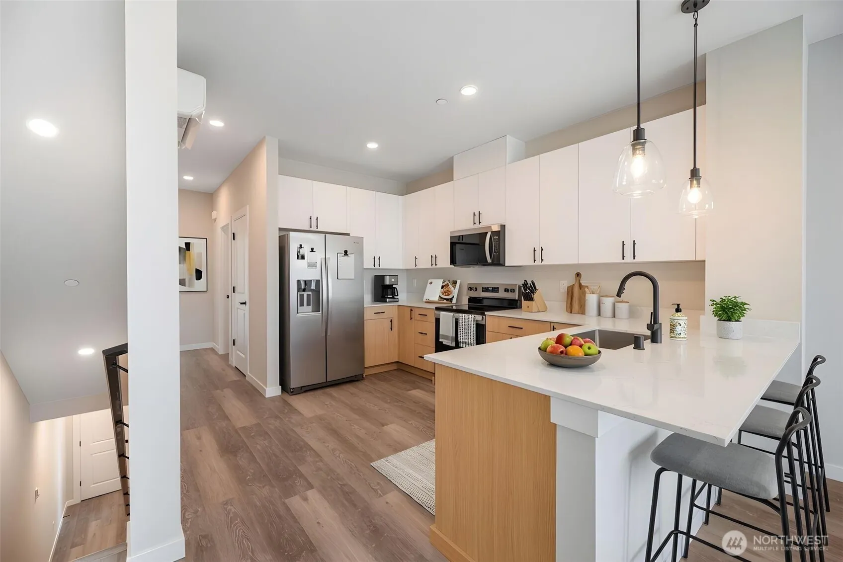 Luxury 4 Bedroom Townhomes Avail Now! Be the first to experience a perfect blend of comfort, style and modern living in this stunning brand-new home! Natural light pours into the spacious open floor plan and embraces the sleek spacious kitchen featuring high-end finishes, quartz countertops, and brand new SS appliances. Four generous sized bedrooms, one on main level plus large primary suite with ensuite bath and second smaller ensuite bedroom on ground floor. Interior is beautifully finished with durable and stylish LVP flooring throughout entire home. Mini-split heat/cooling in each room ensures year-round comfort. Attached single car garage with EV charging provides secure off street parking. Private, low-maintenance fenced backyard. Grounds keeping provided by owner, included backyards. Unbeatable convenience with easy commute access, mere minutes to Ash Way park and ride. Walking distance to everything you need…shopping, dining and entertainment! Small pets considered case-by-case with added deposit. Don’t miss out on this gem! Multiple units available. Flexible move in dates and lease terms considered. Limited time move-in special. Photos of similar unit, same floorplan.
