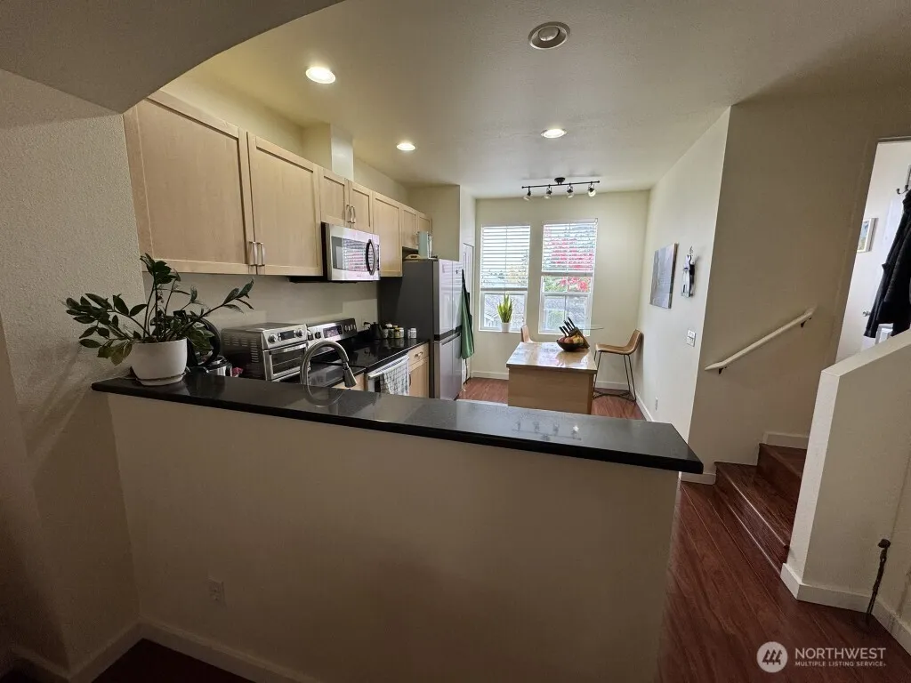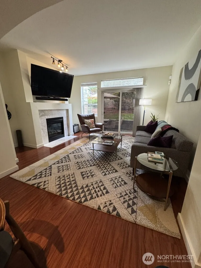Available 6/1! Updated townhome in the desirable Lakemont Neighborhood will exceed your expectations! Renovations include espresso hardwood floors throughout, gorgeous light filled kitchen with maple cabinetry, slab granite and so much more! The open floor plan and 9′ ceilings showcase the sunlight through oversized East/West windows. The spacious living room with gas burning fireplace leads to the large patio – the perfect place to try out your gardening skills with the afternoon sun. Primary bedroom with two closets and in suite bath with soaking tub. Second bedroom with another well appointed en suite bath. Tandem garage with extra storage, easy guest parking. Water/Sewer included. 1 small pet c/c.