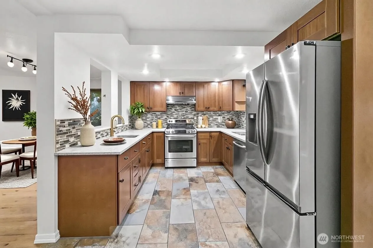 Welcome to Wellington Hills Estates-where comfort, privacy, and timeless appeal meet in this beautifully refreshed Woodinville home. Thoughtfully updated with new interior paint, plush carpet, and a new roof (2025), this move-in ready abode offers a light-filled, inviting atmosphere throughout. Featuring three spacious bedrooms and an easy-flowing layout, the home lives larger than expected —perfect for both everyday living and entertaining. A cozy gas fireplace anchors the main living space, creating a warm and welcoming setting. Step outside to your own private retreat. The oversized, fully fenced backyard (just shy of a 1/2 acre) backs to a serene greenbelt and is framed by mature landscaping for added privacy. Enjoy year-round outdoor living on the custom paver patio with fire pit-ideal for gatherings or quiet evenings. An insulated indoor/outdoor dog house adds thoughtful functionality. Additional highlights include new exterior paint (2025), newer windows and skylights, updated appliances, newer insulation, a whole-house Generac generator + garage storage that stays. Located in the sought-after Wellington Hills Estates community, just minutes from Woodinville’s wineries, trails, park, dining, and amenities— this is a rare opportunity to own a turn-key home with exceptional indoor and outdoor living in an idyllic setting.