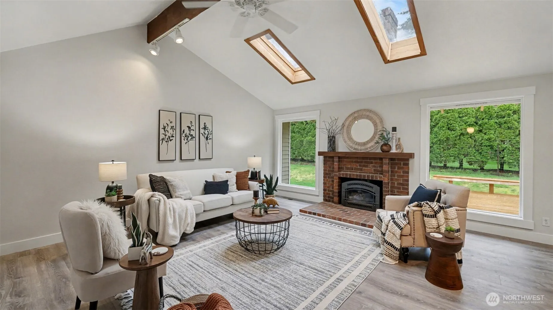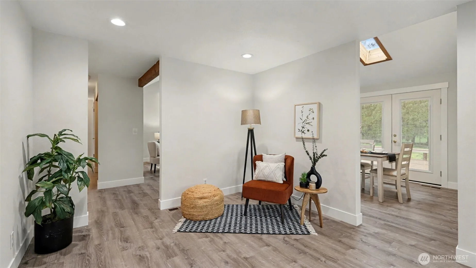 Fantastic rambler offering the perfect blend of thoughtful updates, space, and future potential, tucked away on a quiet cul-de-sac in desirable Woodinville. Set on a generous lot, this single-story home features vaulted ceilings in the living room and primary, skylights, and abundant natural light throughout. Recent upgrades include LVP flooring, base, trim, interior paint, and exterior paint in 2024. Enjoy the refreshed kitchen with quartz counters and newer fridge. The property truly stands out with its versatility—an oversized garage, RV/boat parking, shop/large shed (~13×23) with covered outdoor space, and a finished detached space (~16×24) with sub-panel for lights, power and wall-heat along with its own dedicated generator hook-up panel; ideal for hobbies, work-from-home, or future expansion potential.. Major systems are dialed in with a heat pump providing efficient heating and A/C, backed by a gas furnace, along with popcorn ceilings removed and roof replaced in 2023. Whole home generator hook-up panel located in the garage. Enjoy a peaceful setting on quiet cul-de-sac with room to garden, and space to grow. Excellent Northshore Schools.