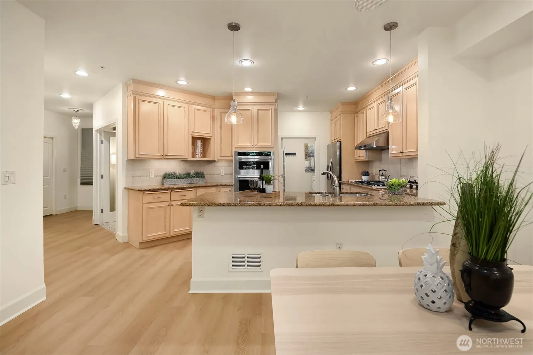 Rare opportunity to own a thoughtfully designed, ADA-compliant 1-bedroom + den condo offering an exceptional blend of space, comfort, and accessibility. This home features extra-wide 35” doorways & oversized hallways, providing ease of movement throughout. The versatile den has a high-end built-in Murphy bed, desk, & shelving system—perfect for guests, a home office, or flexible living. The remodeled bathroom includes tile flooring, accessible shower, dual vanities & modern fixtures. The kitchen is well-appointed with granite countertops, SS appliances, new oven, microwave & hood vent, along w/ ample storage for everyday convenience. Enjoy cozy evenings by the gas fireplace in the open-concept living area, or relax on the sunny east-facing patio. This home also includes 2 dedicated storage spaces. Accessibility continues beyond the unit with a conveniently located parking space near the lobby, providing extra room for mobility aids, plus elevator access. There are 2 beautifully appointed lobby spaces, a green space behind the unit, secure garages, EV charging & ample guest parking. The well-managed HOA boasts strong reserves, no special assessments, and is below the rental cap. This is a prime Redmond location, just minutes from Microsoft, Meta, Amazon, SpaceX & other major Eastside tech campuses, as well as Redmond Town Center, SR-520, the newly connected light rail with direct Seattle access. Multiple transit lines right outside, making commuting a breeze. Pre-inspected.