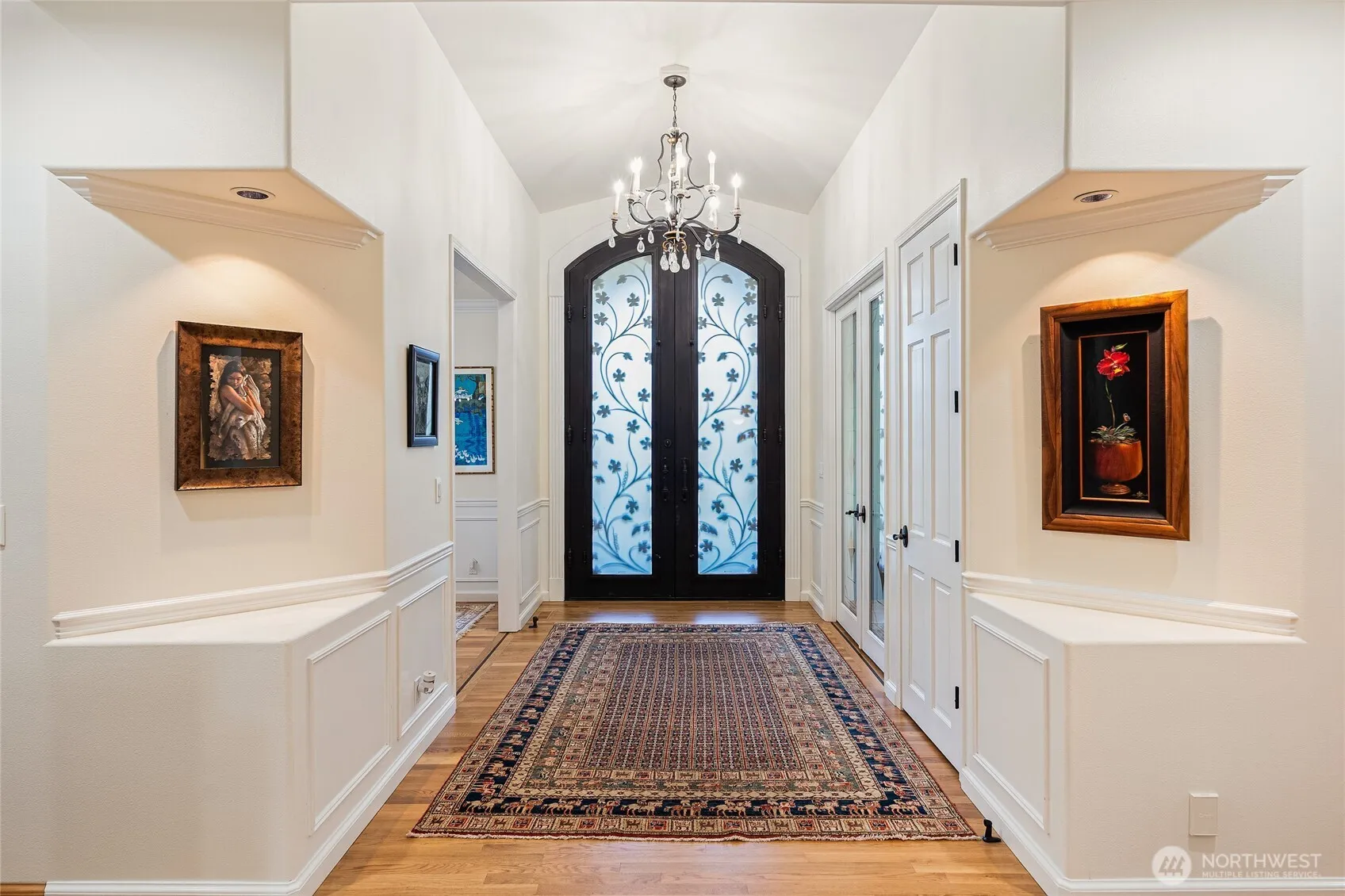A Hollywood Hill dream come true! Located on 1.97 gorgeous fully fenced acres down a quiet dead end street. Main house is 3,350 sqft plus a newer 700 sqft studio over detached garage (4,050 SQFT FINISHED). Approximately 1,600 sqft of garage space with 5 bays for the car/craft enthusiasts (Epoxy flooring and Tesla Charger). Very tech savvy home with smart features galore. The sprawling one story living area is finished with hardwoods throughout, three main bathrooms extensively remodeled. Kitchen with top of line appliances (Miele & Wolf), newer granite and Maple Cabinets and open to family room with vaulted ceilings. Architectural comp roof, Custom metal arched entry door, New AC/Heat Pump in main and mini split with AC in Detached studio. The exterior has it all: very large patio, water feature, swim spa, garden, firepit & gated entry. Minutes to everything Woodinville – Wine country, Restaurants, Burke Gilman Trail and Northshore Schools.