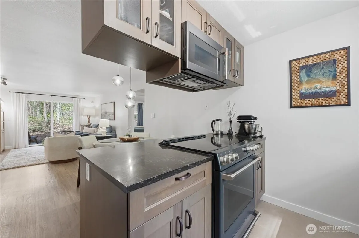 This exquisitely renovated, end unit, condominium in the heart of Woodinville showcases high-end finishes and thoughtful design throughout, creating a sophisticated yet comfortable retreat. From the moment you step inside, you’re greeted by a light filled custom interior with a sense of understated elegance. Every detail has been carefully curated-from sleek surfaces and updated textures to a clean, cohesive aesthetic that creates a calming, elevated living space designed by a professional decorator. Residents enjoy an exceptional suite of amenities designed to elevate everyday living, including resort style outdoor pool, tranquil hot tub, equipped fitness center and tastefully appointed community lounge – offering the perfect balance of relaxation, connection and wellness. Positioned near major highways, boutique shopping, Woodin Creek Park – featuring the burke-gilman trail, indulgent spas, and the region’s celebrated wineries, the location offers both convenience and lifestyle. Timber Ridge is a pet friendly community. Just moments from downtown and within the highly sought-after Northshore school district, every detail has been considered and none overlooked.
