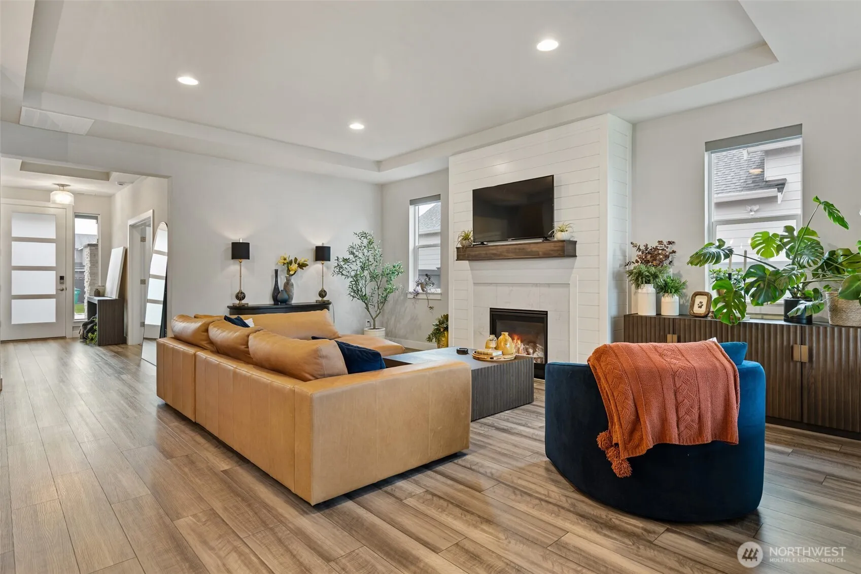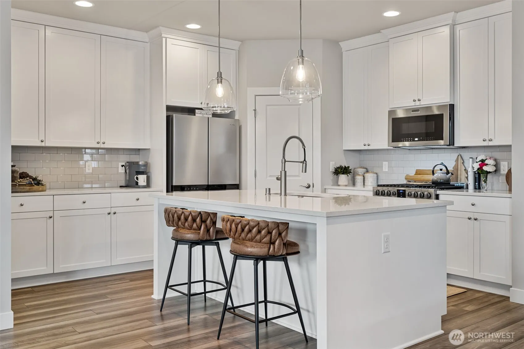 Nestled in the foothills near downtown Enumclaw, this barely lived-in Pacific Lifestyle Home blends modern comfort with a welcoming community atmosphere. While you’re close to town and still in King County, Enumclaw serves as a gateway to mountain adventures—whether hiking, exploring, or simply enjoying the natural beauty nearby. Inside, the main floor primary suite offers a spacious walk-in closet and luxurious five-piece bath. The chef’s kitchen includes a gas cooktop, stainless steel appliances, a walk-in pantry, and a casual eat-in area. The dining space, accented by a feature wall, opens onto a covered patio—perfect for year-round enjoyment. Custom blinds provide a polished touch and privacy. The main floor also includes an office with double glass doors. Upstairs, a spacious loft and two oversized bedrooms await. The fully fenced yard is ideal for activities and pets. Enjoy Enumclaw’s local charm and the mountain lifestyle right at your doorstep!
