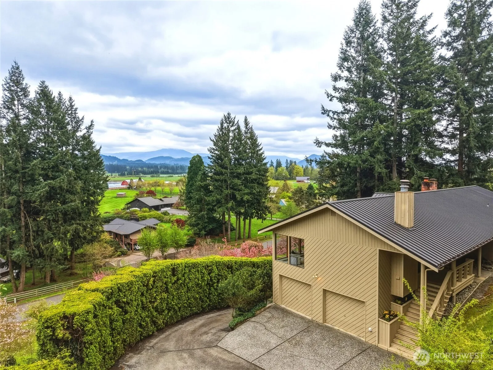 Stunning Enumclaw home on nearly 1 acre with breathtaking partial Mt. Rainier and 180 degree foothill and Veazie valley views! This spacious 3,922 sq ft property offers 4 bedrooms, 3.5 baths, office, and a versatile layout perfect for everyday living and entertaining. Vaulted ceilings, hardwood floors, and abundant natural light with floor to ceiling windows create a warm, inviting feel. The oversized kitchen features ample counter space, extensive storage, skylights, double ovens, and a walk-in pantry. The primary suite is a private retreat with deck access, and jetted soaking tub. Fully finished daylight basement includes a large rec room with fireplace and plumbed for a wet bar, ideal for multi-generational living or guest space. Additional features include 2 fireplaces, a wood stove, heat pump for efficient heating and air conditioning, built-in vacuum system, newer metal roof, furnace, and 2 hot water heaters. Enjoy a secluded, terraced lot with mature landscaping.The 1,200 sq ft of 2 story Mahogany deck is designed to enjoy outdoor living while taking in the views. Located in the desirable Enumclaw School District with easy access to Hwy 169 and 410. Rare combination of space, privacy, and scenery in Enumclaw’s sought-after New Horizons neighborhood. *Up to $10,000 credit with preferred lender with qualifying loan*
