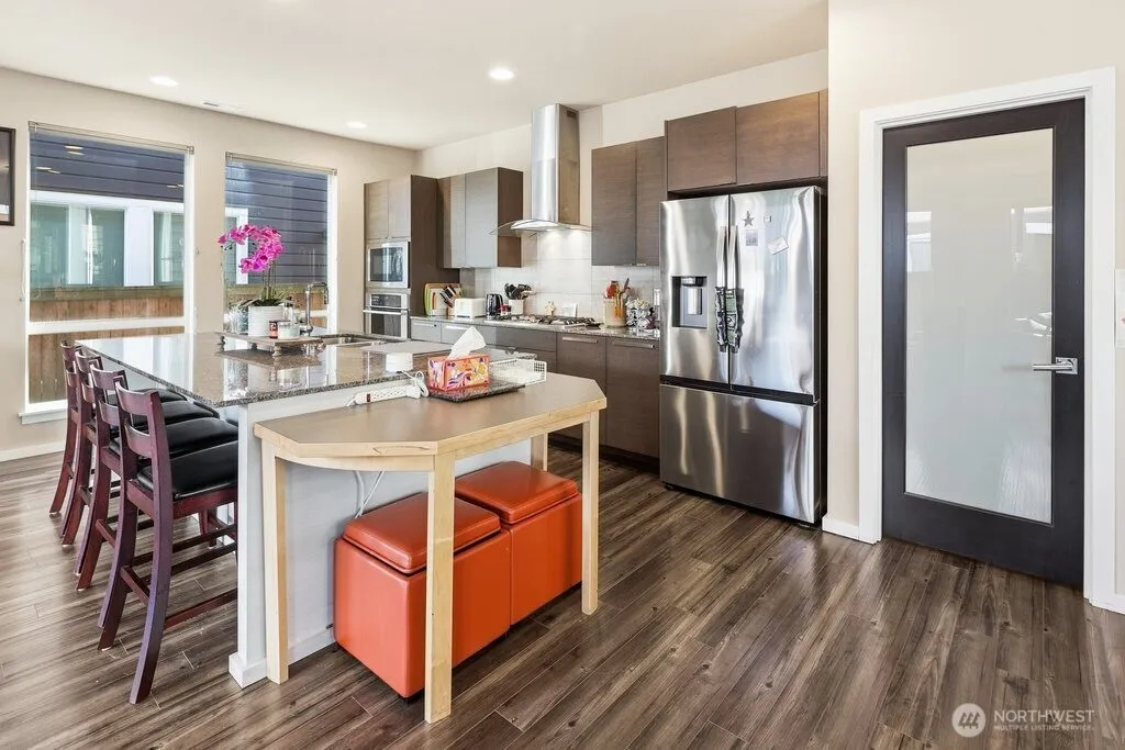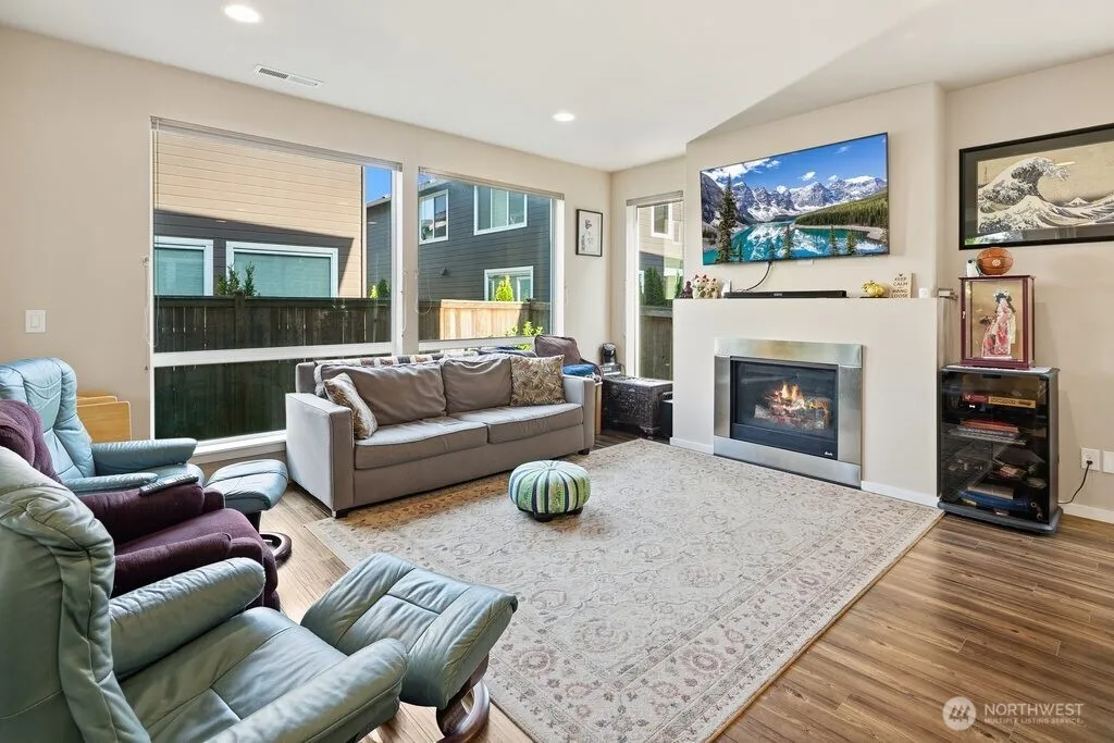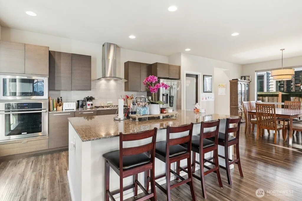 Stunning Bothell/North Creek 2-story home offering the perfect blend of modern comfort, functional design, and prime location! Built in 2015, this beautifully maintained 4-bedroom + bonus / 3-bath home features a light-filled open-concept floorplan with spacious living areas ideal for everyday living and entertaining. The chef’s kitchen is the heart of the home, complete with quartz countertops, large island, stainless steel appliances, and walk-in pantry, flowing seamlessly into the expansive great room with cozy fireplace and abundant natural light. Upstairs, enjoy a generous primary suite with ensuite bath and walk-in closet, plus additional bedrooms and a versatile bonus room perfect for media, play, or work-from-home space. Step outside to a fully fenced yard, patio, and outdoor entertaining space, ideal for summer BBQs and year-round enjoyment. Nestled in a desirable community with sidewalks and curb appeal, this home offers both privacy and convenience. Located just minutes to Mill Creek, Canyon Park, and Alderwood amenities, with easy access to I-405, I-5, and major tech corridors (Bellevue, Seattle, Redmond) making it a commuter’s dream. Top-rated schools, nearby parks, and trails complete the package. Seller offering credit of $1500 at closing to stretch carpets.