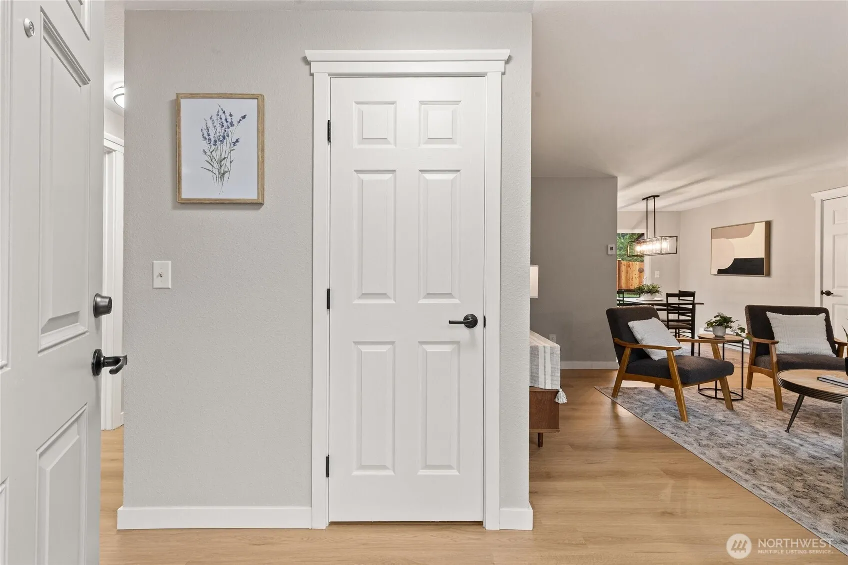 Stylishly updated rambler in the desirable Mays Pond community! This move-in-ready home is tucked on a quiet cul-de-sac and features a spacious, private backyard backing to Mill Creek Community Association open space, offering a peaceful, park-like setting with trees and walking trails beyond. The updated kitchen includes brand-new appliances, new cabinetry, quartz countertops, and tile backsplash. Additional improvements include new luxury vinyl plank flooring, carpet, lighting with adjustable color, hardware, baseboards, interior and exterior paint, washer and dryer, a new 6’ cedar fence, and a newer roof (2023). The living room offers a cozy gas fireplace, and the laundry room is conveniently located inside the home. Step outside to the private backyard and patio—perfect for relaxing or entertaining while enjoying the quiet setting and natural surroundings. Ideally located near schools, parks, SWIFT Transit Line, and Mill Creek Town Center with shopping and dining, as well as golf and tennis clubs, aquatic center, Arena Sports, and more. A fantastic opportunity to enjoy a well-updated home in a location that balances everyday convenience with a peaceful, natural backdrop.