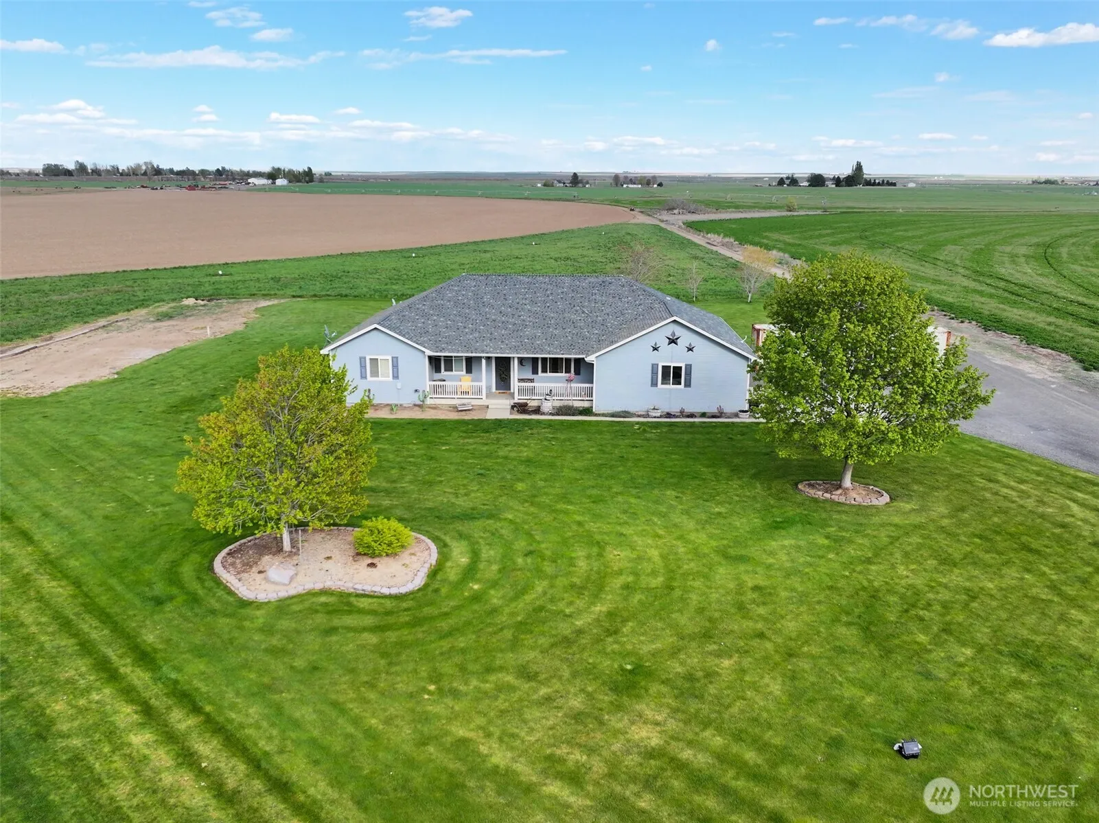 Beautiful rambler-style home with open-concept design set on 2.56 acres. Featuring 4 spacious bedrooms, 2 bathrooms, and a dedicated office. The large primary suite with walk in closet serves as a private retreat, complete with a luxurious soaking tub for ultimate relaxation. Outdoors, enjoy endless possibilities for a garden, hobby farm, or simply taking in the peaceful surroundings and enjoying summer BBQs. Experience the perfect balance of country living just minutes from town amenities.
