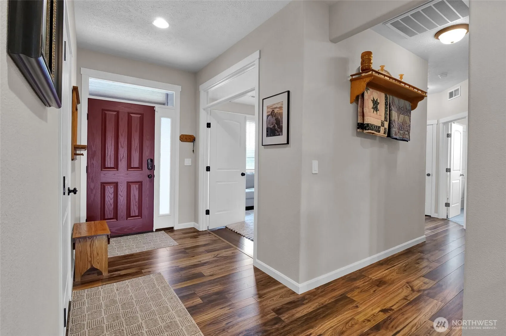Designed for entertaining, this beautifully maintained Moses Lake rambler is a must-see. The heart of the home is a spacious great room featuring an open-concept kitchen, large dining area, and an electric fireplace—perfect for gatherings large or small. The gourmet kitchen impresses with granite countertops, stainless steel appliances, a pantry, built-in bar with both a wine fridge and beverage fridge, and a center island for additional seating and prep space. Step outside to the oversized covered patio, creating seamless indoor/outdoor living. The patio’s wood-vaulted ceiling adds warmth and charm, while the custom fire pit, big fully fenced backyard, and underground sprinklers complete this inviting outdoor retreat. Inside, the home offers a welcoming front entry, a dedicated office or den, three bedrooms, and two full bathrooms. The spacious primary suite features a luxurious ensuite bath with soaker tub, separate shower, dual vanity, and large walk-in closet. Fresh interior paint throughout adds to the home’s move-in-ready appeal. Located near Moses Lake Golf Club and Pillar Rock Grill, this home combines comfort, style, and location—perfect for those seeking single-level living in Moses Lake.