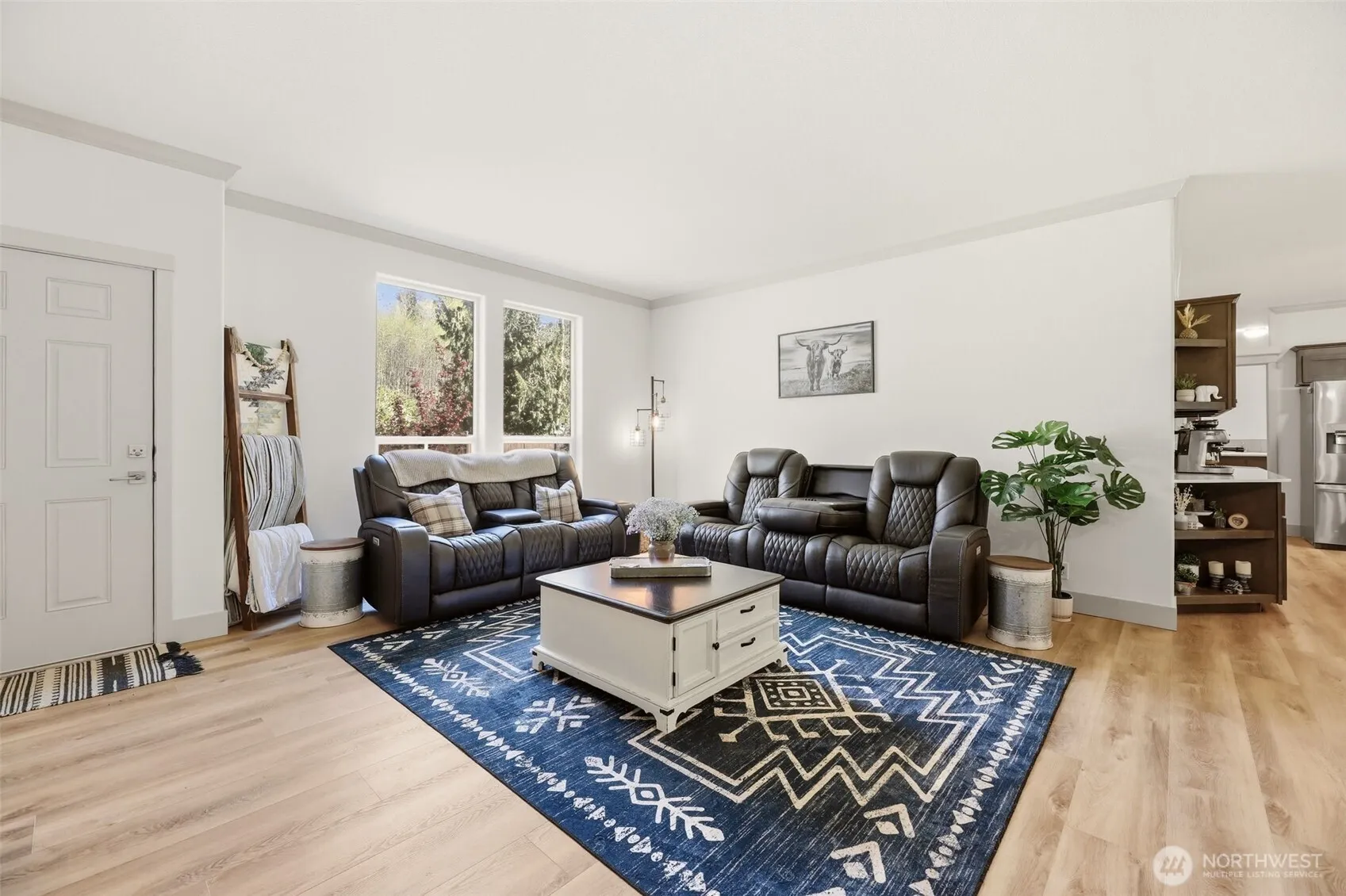 4.48 Gated Acres · Private Creek · DNR Access · Mountain Views · Imagine this: Set behind a private gate and tall privacy fence, this property offers a quiet kind of homestead-style living, with space to breathe and room to roam. A creek winds through the property, mountain views stretch into the distance, and DNR land sits just next door. The sense of privacy here is real. Inside, the home has been thoughtfully cared for and updated: new luxury flooring, interior paint, quartz counters, custom tile in the bathroom, and a propane fireplace bring comfort, while the primary suite is set apart from the secondary bedrooms, creating a layout that you will love. The open-concept floor plan connects the kitchen, dining, and living areas, creating an easy, functional flow. This 3-bedroom, 2-bath home features a spacious kitchen with a large island, pantry and a dedicated laundry/mud room with a utility sink. The backyard lives like an extension of the home, with a covered tongue-and-groove outdoor living space that invites gathering, unwinding, and taking in views of the pasture and creek. The heated three-car garage shop and detached heated office add flexible & functional spaces. Designed with a practical connection to the land, the property is fully equipped for equestrian use, with a horse stall, barn with hay and tack storage, and a dedicated turnout area. Riding, ATV trails, and year-round outdoor recreation all yours! Pre-inspected and appraisal on hand