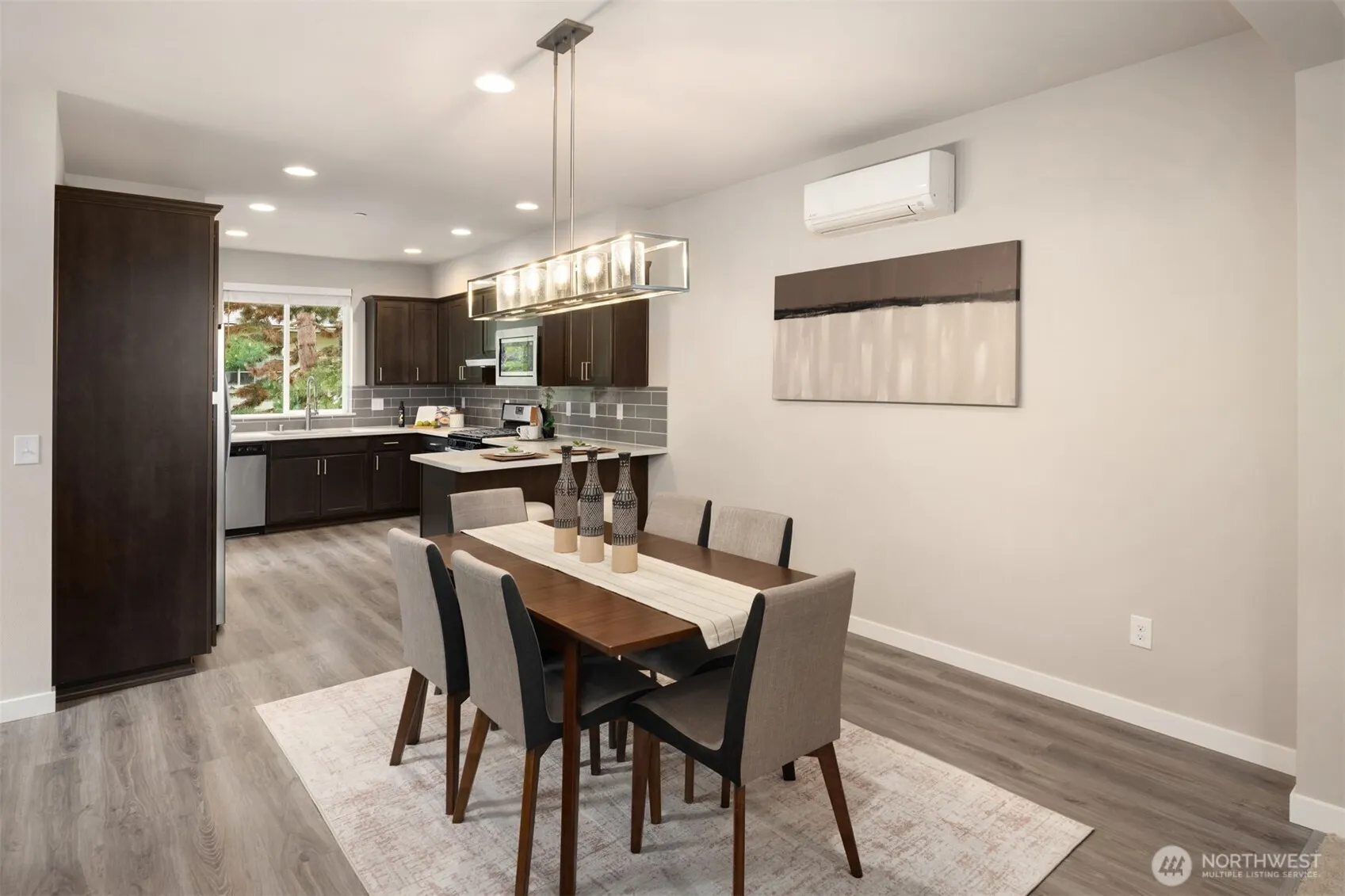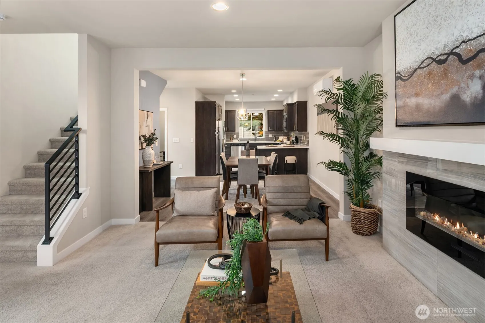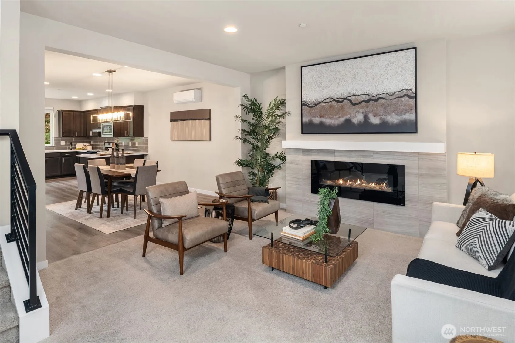 Securely tucked away in a sought-after gated community, this luxurious 2019 end-unit townhome is a move-in ready masterpiece boasting impressive curb appeal & stunning modern finishes with a sprawling 2-car garage, driveway & super low HOA dues! Lavishly appointed 1,548sf, 3 bed, 2.5 bath design features a desirable open concept layout with tall ceilings, oversized windows & horizontal open rail staircases throughout. Light-filled living room with captivating linear fireplace opens spacious formal dining & high-end dream kitchen with rich solid wood cabinetry, gorgeous quartz counters, full-height tiled backsplash, gas range, stainless steel appliances, peninsula bar & private covered balcony. The primary suite dazzles with generous walk-in closet & dramatic tiled bath with dual-sink quartz vanity & glass enclosed shower. Full-size utility room, abundant storage space, on-demand hot water & efficient A/C. Covered patio + backyard space with upside potential. Attractive neighborhood with fenced-in playground, ample guest parking & no rental cap!