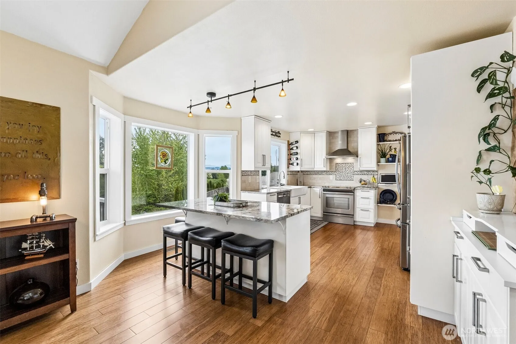 Tucked away at the end of a long, private driveway in an established Puyallup neighborhood, this home offers both seclusion and convenience, with easy access to nearby freeway corridors. Being set well back from the street ensures a quiet atmosphere and provides ample space for parking. Full of natural light, this five-bedroom, 3.5-bathroom residence is designed for functional living. The main floor features an updated kitchen that serves as the heart of the home, alongside a dedicated office space that provides a quiet environment for working from home. Expansive territorial views can be enjoyed from various points on the property, creating a scenic backdrop for daily life. The fully finished daylight basement offers significant additional living space. With its own full bathroom, this level serves as an ideal setup for multi-generational living or a private guest retreat. The basement also includes extensive storage, complemented by further storage off the laundry room, with direct access to the backyard. The backyard is set up for outdoor enjoyment, featuring a private putting green, a ninja workout structure, and a storage shed. For even more utility, there is pull-down ladder access to additional storage space above the garage. This home combines practical, generous storage, versatile living areas, and a unique outdoor lifestyle in a highly desirable location.