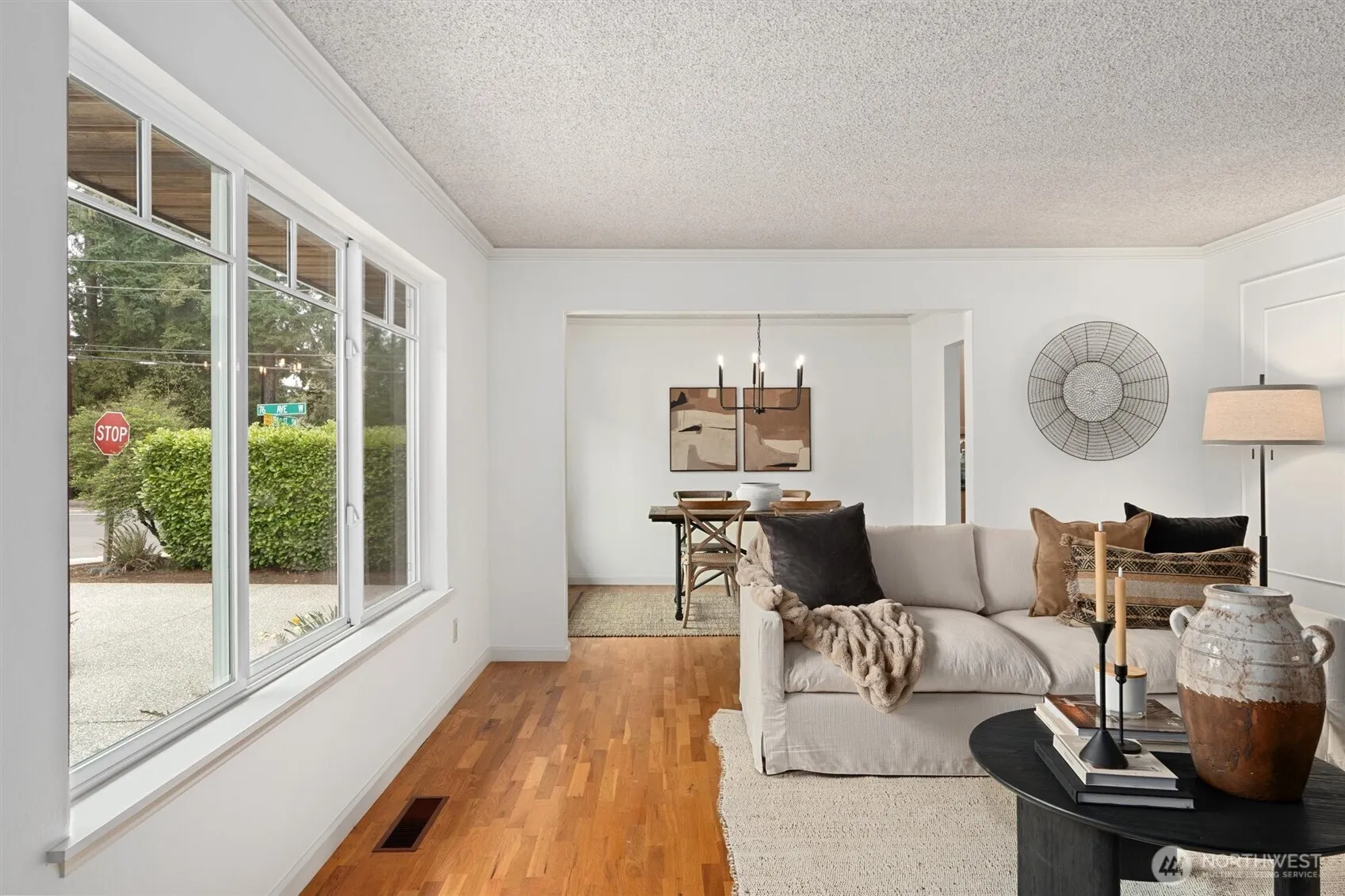Character filled Edmonds rambler on a shy Quarter Acre corner lot, blending timeless 1950s charm with thoughtful MODERN UPDATES. This light filled home features beautiful HARDWOOD floors, 2 cozy brick FIREPLACES, and new windows that enhance both comfort and efficiency. The inviting layout offers 4 bedrooms and 1 bath, including a unique upper bedroom over the garage with its own private staircase, perfect for guests, a home office, or creative space. The primary bedroom is a warm and inviting retreat, featuring a charming corner window that fills the space with natural light and offers a peaceful outlook. The updated kitchen features recessed lighting, granite countertops, newer cabinetry, stainless appliances, gas range & a charming built-in bench in the eating nook. Newer interior and exterior paint give the home a crisp, move-in-ready feel. Step outside to beautifully curated landscaping, a welcoming walkway, and a fully fenced backyard with a spacious patio ideal for entertaining or moments outdoors. Ample driveway parking is complemented by an additional one-car garage and a storage shed for added convenience. Located just minutes from highly sought after Downtown Edmonds, enjoy easy access to incredible restaurants, boutique shopping, and waterfront charm. A truly unique opportunity perfect as a starter home or an inspiring forever retreat.