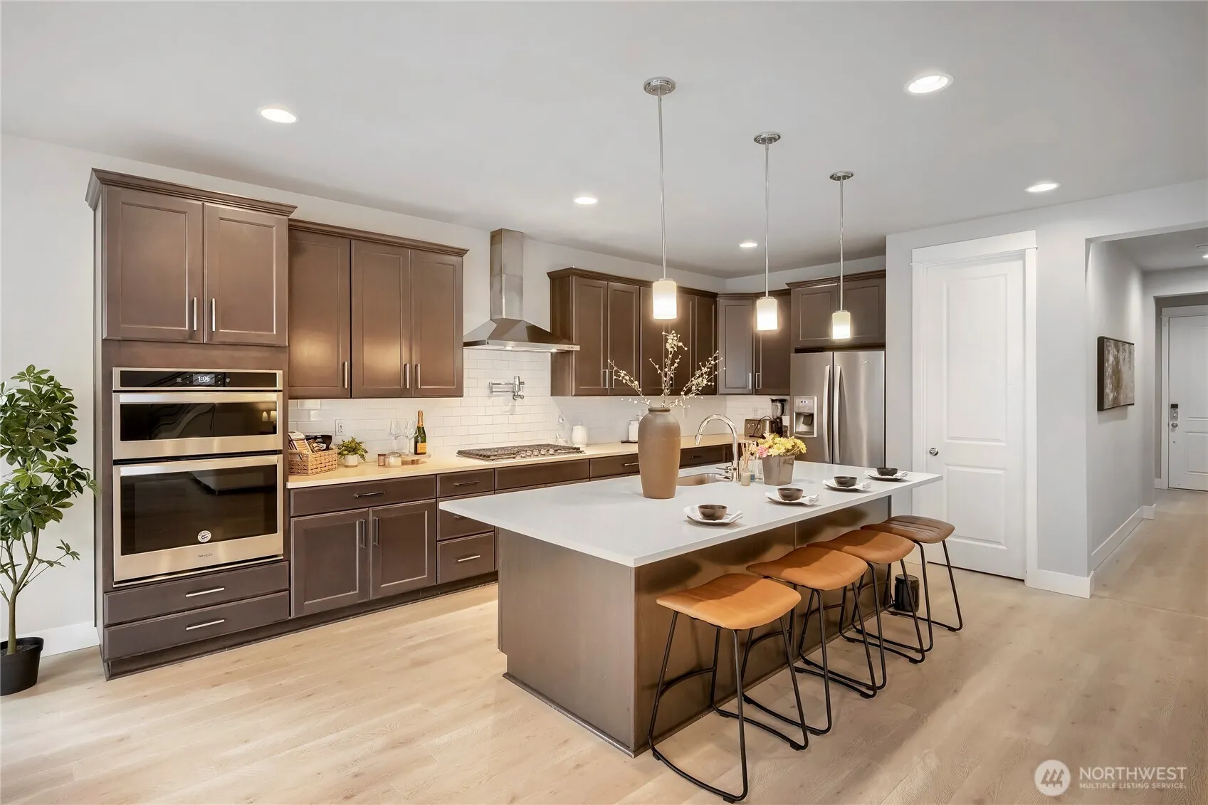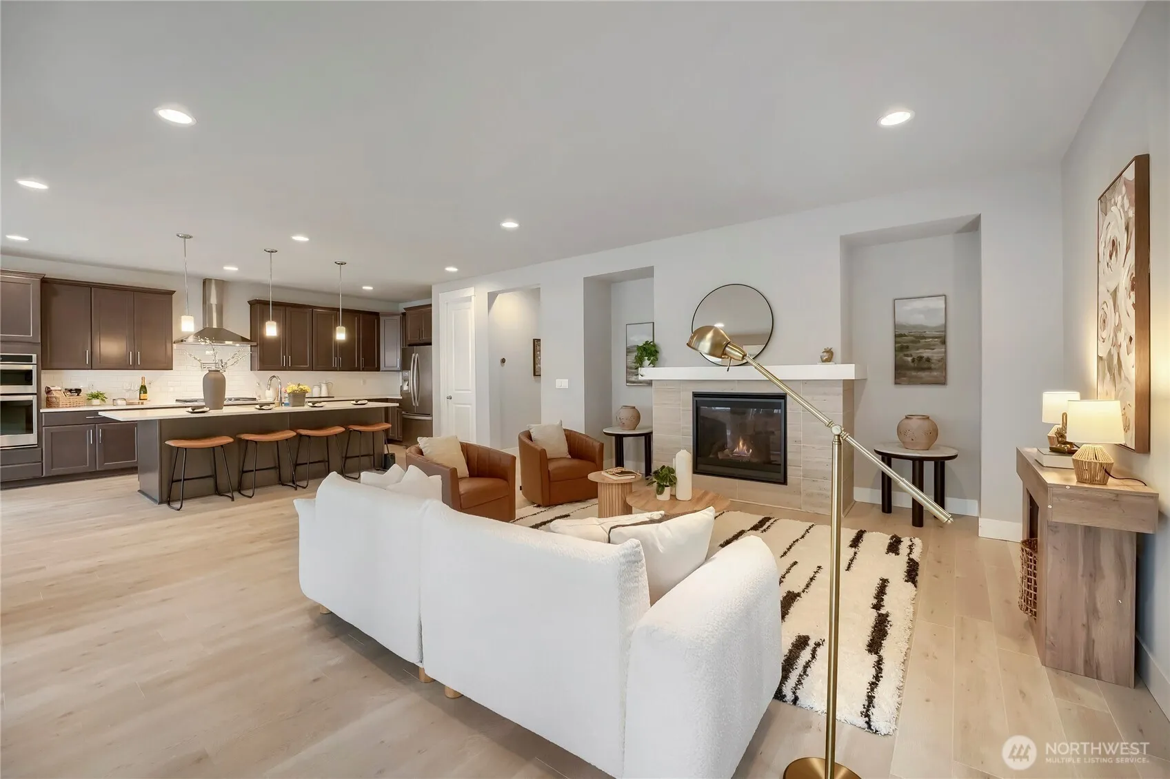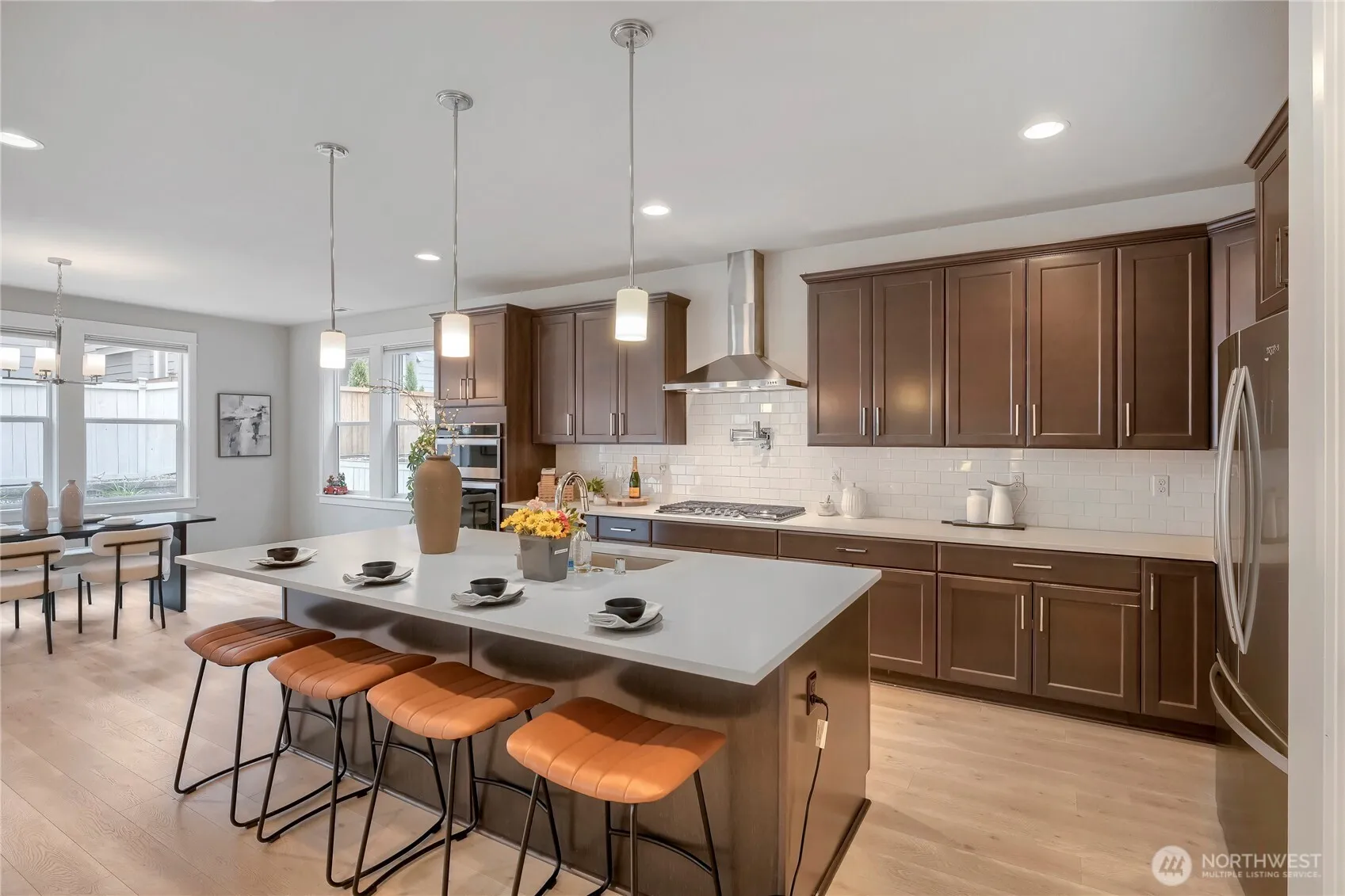 Welcome to the beautifully designed home for modern living in Maple Valley with over $50,000 in upgrades. Inside you’ll find 4 bedrooms and 3 thoughtfully updated bathrooms with contemporary finishes. There is a convenient main floor bedroom and adjacent bath perfect for guests or use as home office. Upstairs loft/bonus room great space for a play area, media room or extra living space. This home features fully paid-off solar panels for energy efficiency, an EV charger, and smart home upgrades including a smart garage system and Ring security cameras for added convenience and peace of mind. The front entry is enhanced with a stylish metal screen gate, adding both security and curb appeal. Step outside to an upgraded backyard perfect for relaxing or entertaining, with patio pavers, turf and plank covered patio. Pre-inspected for buyer confidence, and HVAC System has been serviced; this home is move-in ready and offers the perfect blend of comfort, technology, and lifestyle. Just steps to Four Corners shopping and dining, Summit Park’s sports fields, playground, and off-leash dog park, plus easy access to the Cedar River Trail and walking distance to Tahoma High School, all within the highly regarded Tahoma School District. Don’t miss this opportunity to own a smart, energy-efficient home in a prime location! **opportunity with up to 1% lender credit offered with Guild Mortgage (conditions apply)**