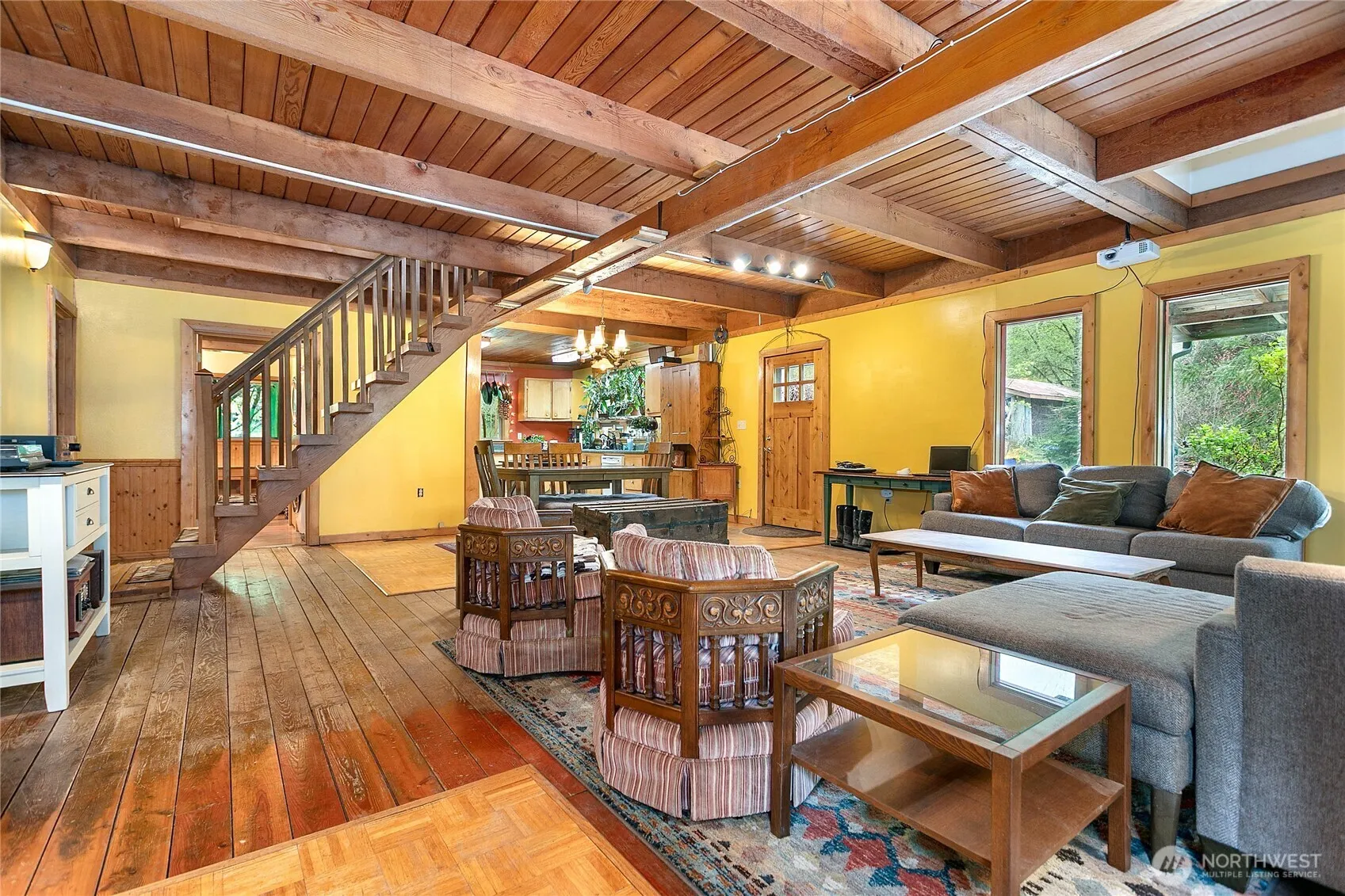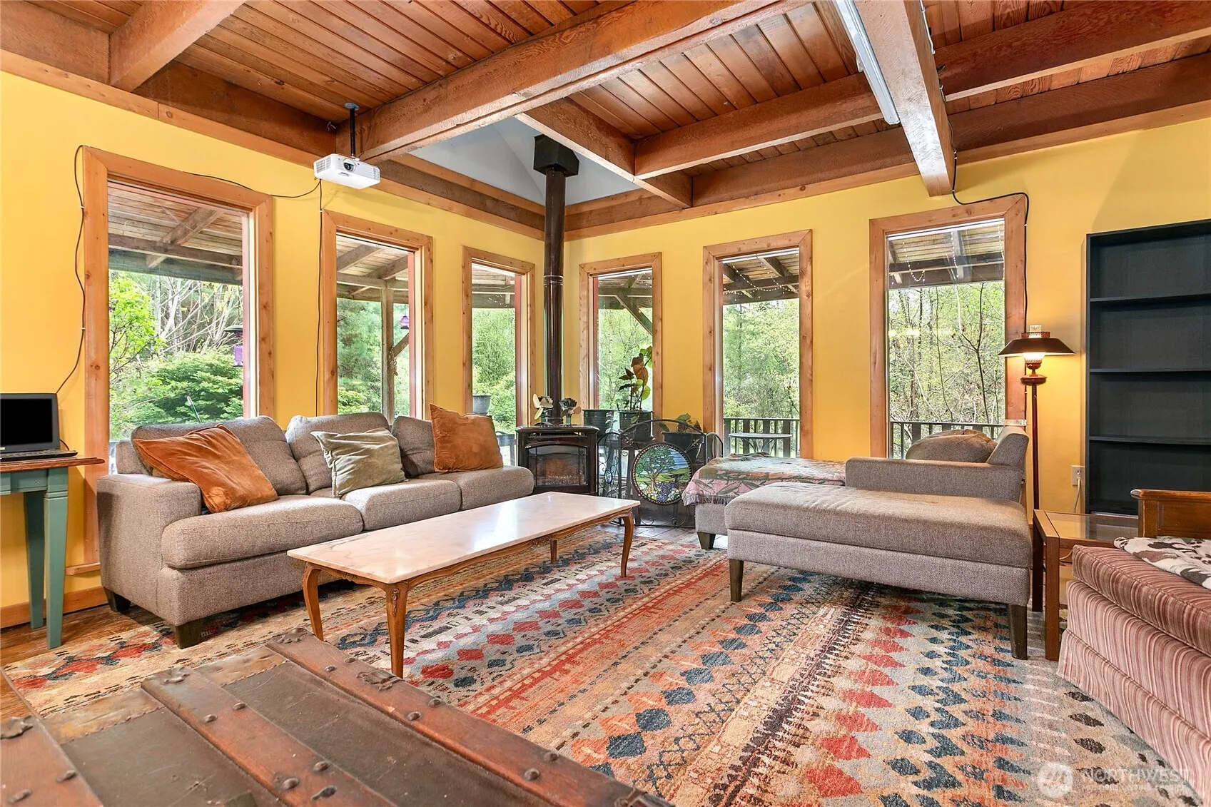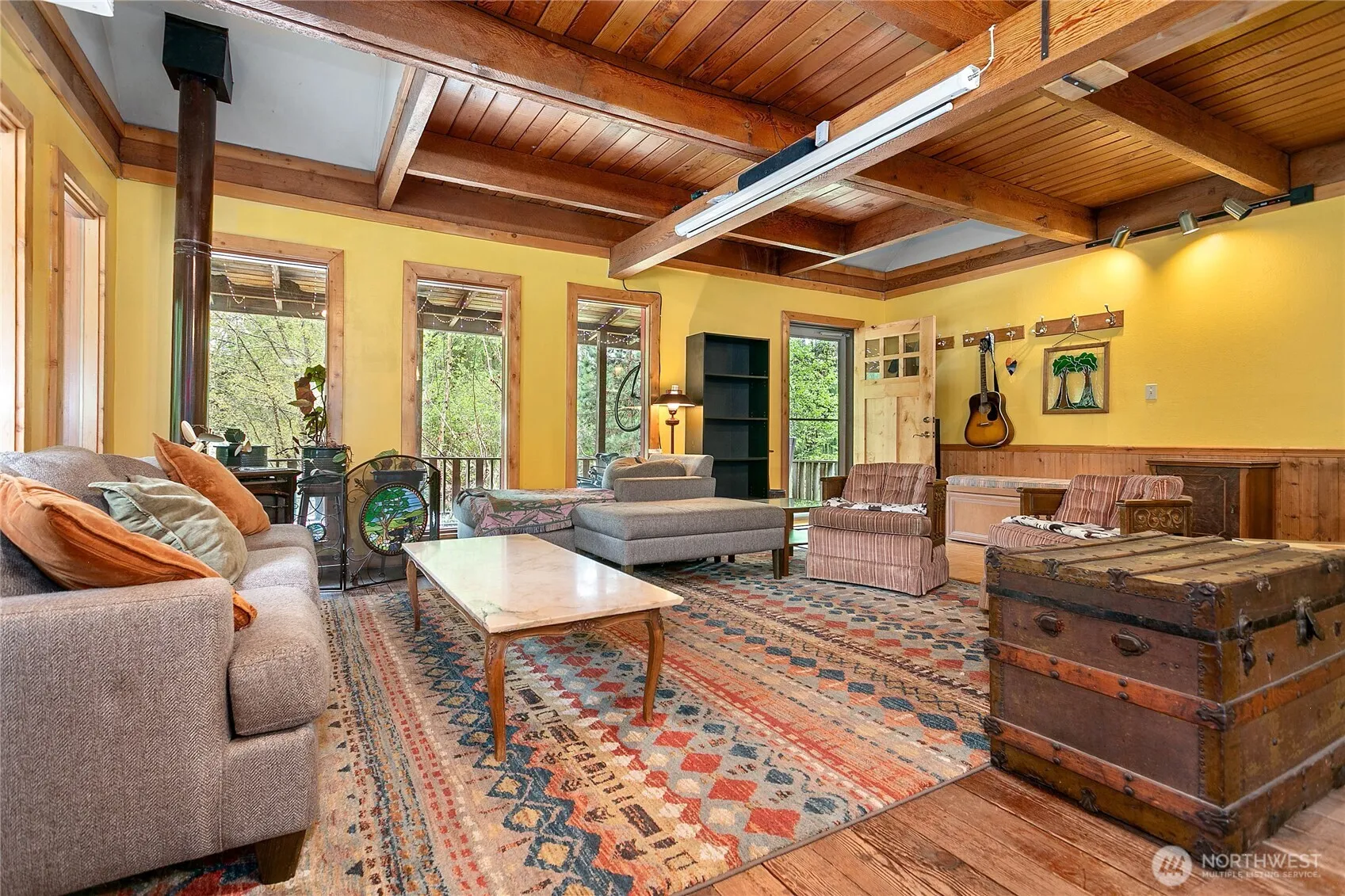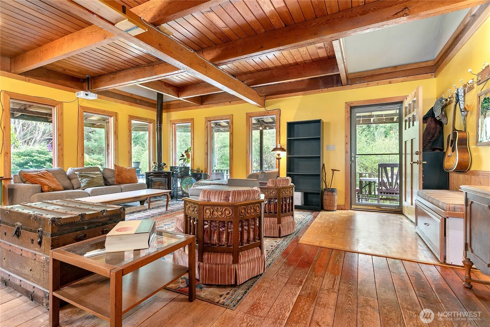 Tucked into 3 private acres in the heart of the Skagit River Valley, this custom retreat delivers the kind of setting buyers dream about. Originally rooted on the site circa 1900, the main home was thoughtfully built in 1995, offering the character of a legacy property with the comfort and functionality today’s buyers expect. Unobstructed views of Sauk Mountain, a seasonal creek, mature evergreens, and wide open skies create a true sense of escape, just minutes from world class fishing, hiking, and wildlife. Inside, beamed ceilings, warm wood floors, and walls of windows bring the outdoors in. The open concept main level flows effortlessly, while the upper level primary suite offers a private balcony with stunning mountain views, plus a clawfoot tub and oversized shower for a true retreat feel. A fully equipped secondary living space with its own kitchen functions as a highly successful Airbnb, offering immediate income potential or flexible multi-generational living. Outside, the property is dialed for lifestyle and utility alike: expansive garden space, fruit trees, pasture potential, and multiple outbuildings including a garage and detached studio ideal for hobbies, guests, or future rental conversion. Properties like this are rare. Privacy, income, and iconic North Cascades views all in one.