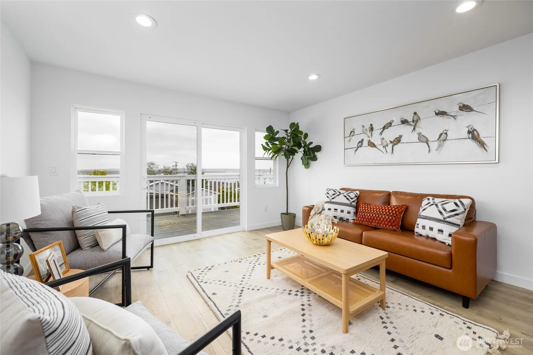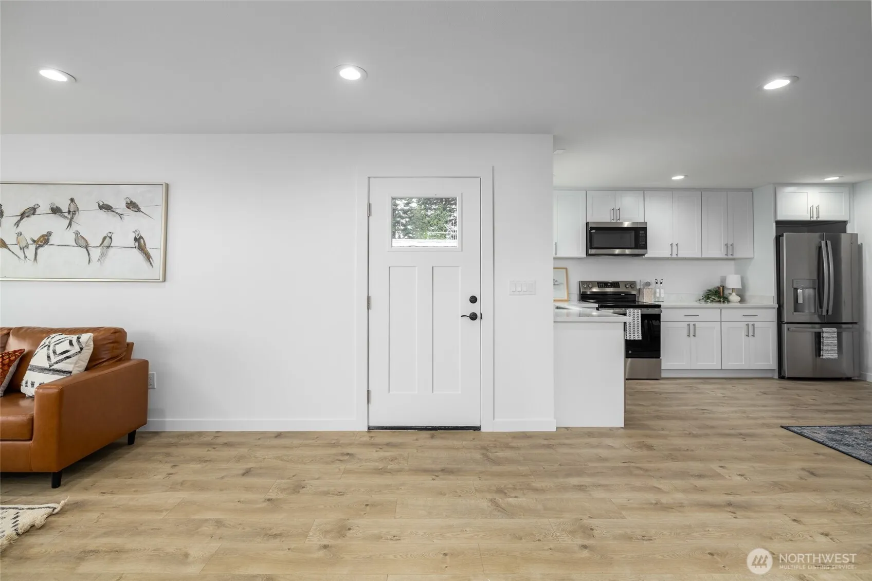 Welcome to Bayview Mobile Home Park, a peaceful 55+ community where breathtaking views of Padilla Bay and the surrounding islands create a truly special place to call home. This beautifully renovated residence has been transformed from top to bottom, inside and out, offering the perfect blend of comfort, style and functionality. Step inside to a bright, open living design filled with natural light, framed by glistening views of the Bay. Thoughtfully designed for accessible age-in-place living, this home features a ramped entry, easy-care luxury vinyl plank flooring throughout the main living areas, a wide hallway, and pocket doors for added convenience. Perfect kitchen is sure to impress with all new soft close cabinetry, quartz countertops, new stainless steel appliances, including refrigerator, plus a fantastic walk-in pantry with abundant storage. The spacious primary suite offers a private retreat with an ensuite bath featuring an oversized walk-in shower with bench seating. Laundry area with brand new washer and dryer, along with the added efficiency of a tankless water heater. Good sized guest bedroom and 3/4 guest bath. The impressive front and side low maintenance Trex deck provides an ideal setting for year-round enjoyment, whether relaxing quietly or entertaining guests, all while taking in the wonderful water and island views. Padilla Bay Shore trail just a quick stroll across the way and Bayview State Park just up the street! Park Rent $1300 per month.
