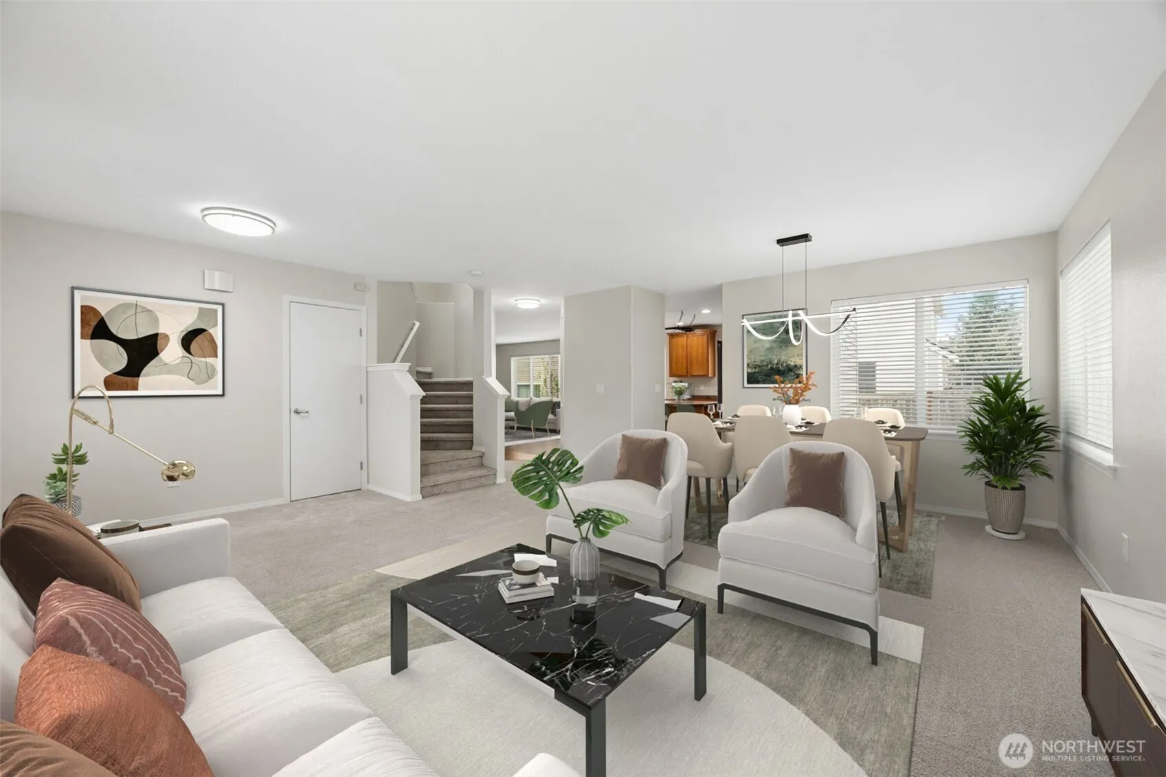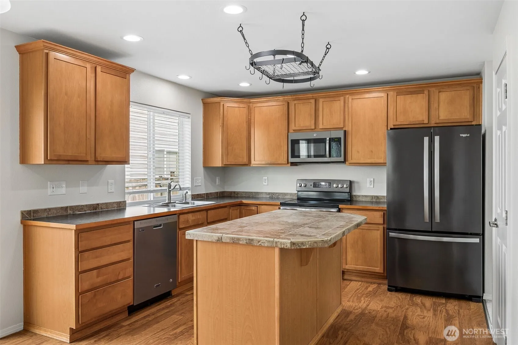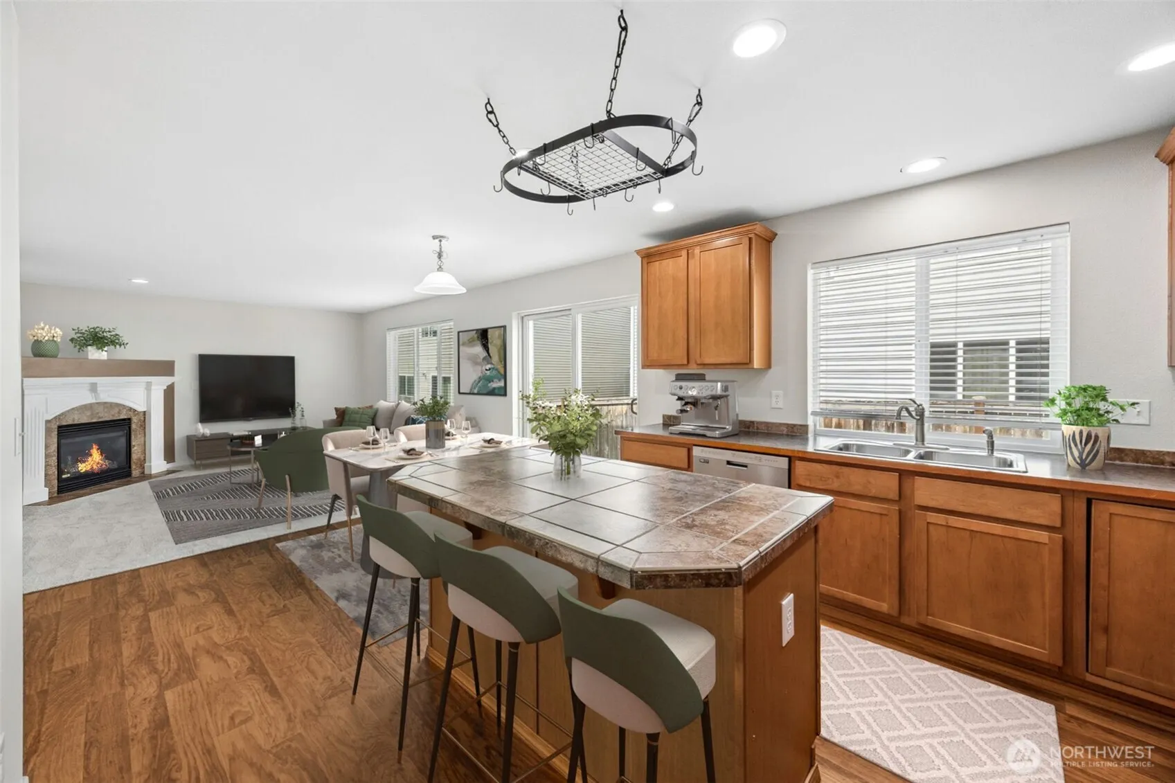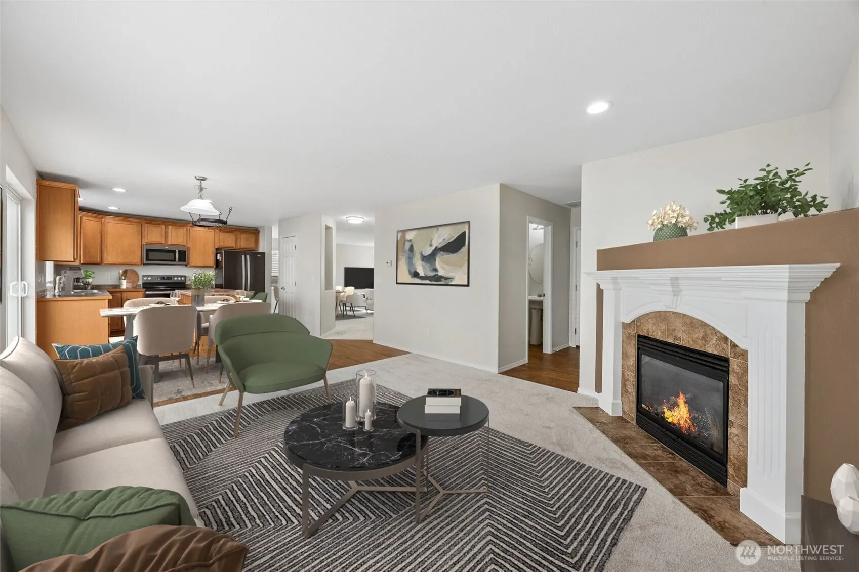 Discover modern, functional living in this spacious 2,440 sq ft two-story home in Spanaway. The open-concept main floor features a generous living room flowing into a separate family room and an updated kitchen with a large center island, stainless steel appliances, and abundant natural light. New carpet throughout, a dedicated walk-in laundry room, and a warm fireplace create a bright, contemporary atmosphere. Upstairs, the flexible layout includes four bedrooms—highlighted by a second primary suite—plus a versatile loft ideal for a home office or additional flex space. A full two-car garage provides convenient storage.This well-designed home offers an ideal location, close to JBLM, with easy access to Spanaway Park, Sprinker Recreation Center, and shops. Experience comfort, versatility, and convenience in a prime South Sound community—schedule your private showing today.