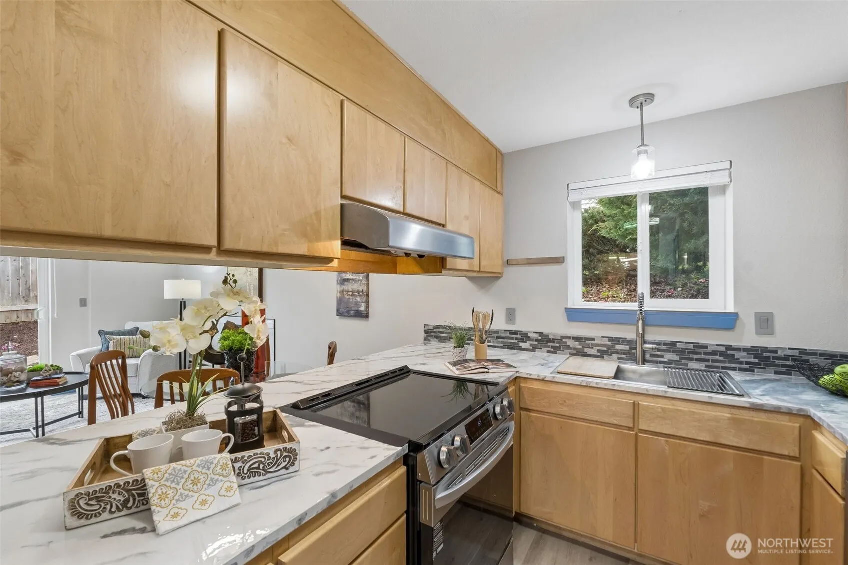 Welcome to this charming ground-level 1-bedroom, 1-bath condo offering comfort, convenience, and a rare outdoor retreat. The thoughtfully designed layout features a bright and inviting living space that flows seamlessly into the dining area, creating an ideal setting for both everyday living and hosting guests. The kitchen provides ample cabinetry and workspace, making meal prep simple and efficient. The spacious bedroom offers a peaceful escape with generous closet space, while the full bath is well-appointed and easy to maintain. Step outside to enjoy a nicely sized private yard—perfect for relaxing, gardening, or entertaining in your own outdoor oasis. Whether you’re enjoying a quiet morning coffee or gathering with friends, this space adds exceptional value and versatility. Located in desirable Lake Forest Park, this home offers quick and easy access to I-5, making commuting a breeze while still providing a tranquil neighborhood feel. Close to shopping, dining, parks, and everyday amenities, this condo combines comfort, location, and lifestyle in one appealing package.