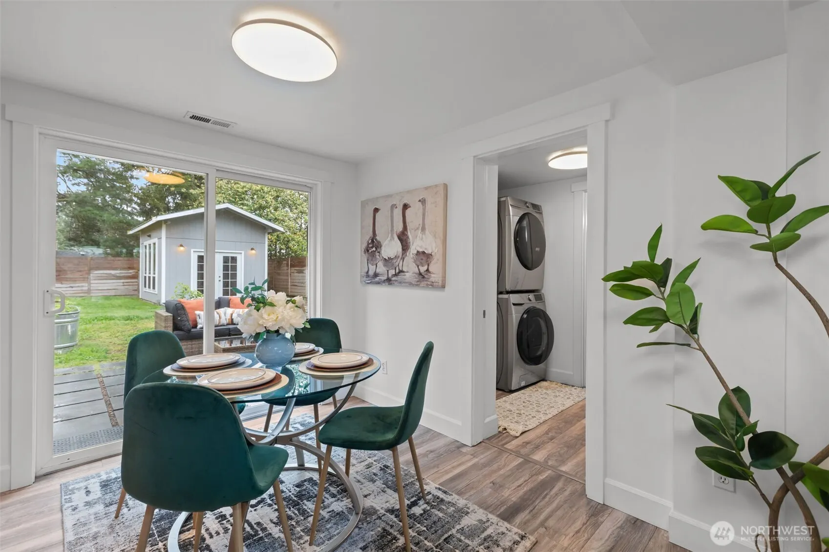 Tucked away on a quiet residential street, this charming Shoreline rambler offers the perfect blend of comfort, convenience, and versatility. Inside, you’ll find an updated kitchen with granite countertops, tile backsplash, SS appliances and A/C, all complemented by plentiful natural light that fills the home with warmth and brightness. Step outside to the fully-fenced backyard with a spacious patio designed for gatherings, summer barbecues, or simply enjoying the peaceful surroundings. The backyard also features a detached flex space wired with electricity, perfect for a home office, gym, or creative retreat. Ideal location, with convenient access to the Interurban Trail, Trader Joe’s, and efficient commuting options via RapidRide, the E-Line, and light rail. Welcome home!