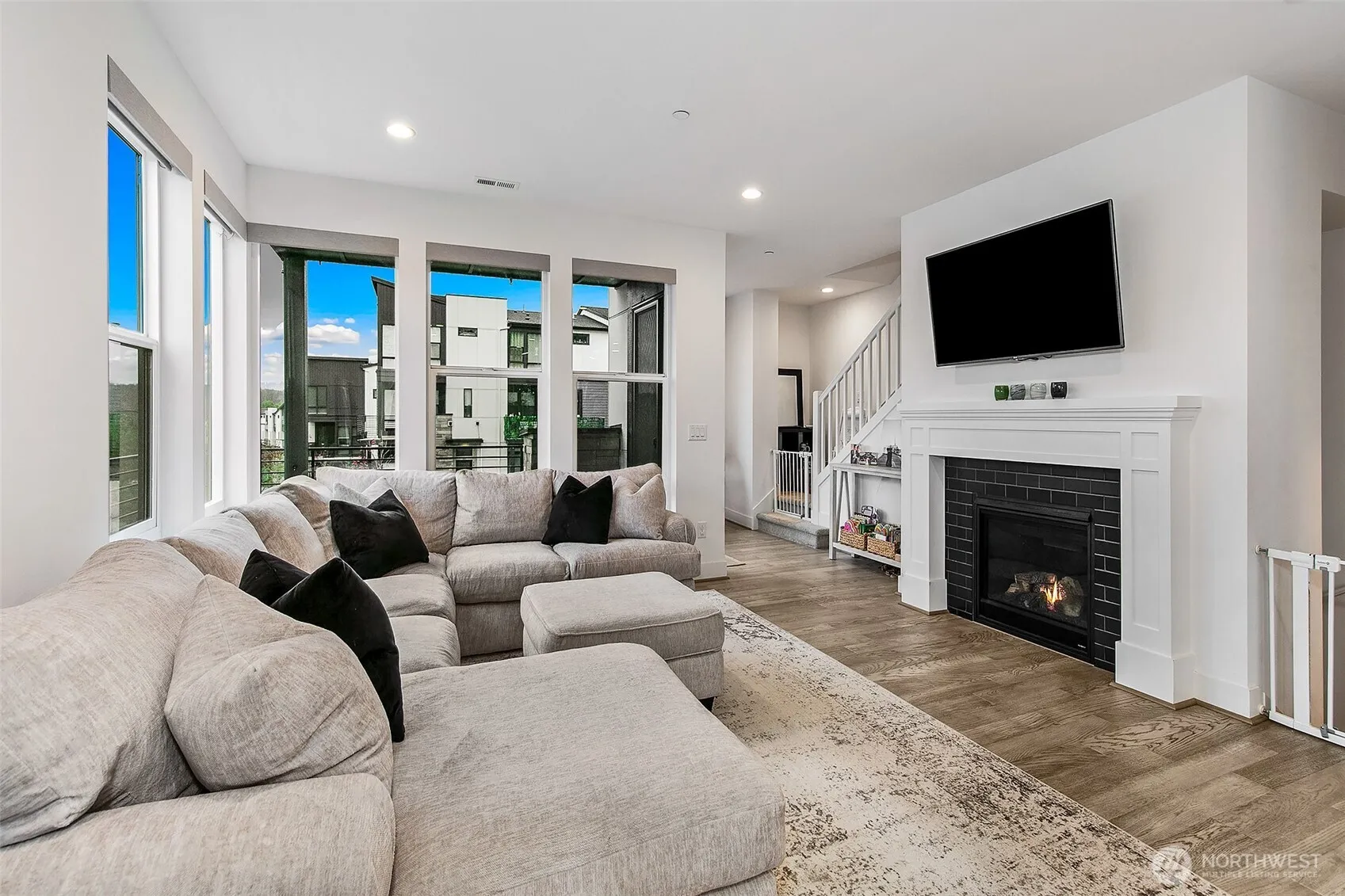 Welcome to modern elegance at The Ridge at Big Rock! Offered for first time resale, this immaculately maintained & light filled end unit townhouse is ready to welcome you! Bright and open, the spacious Great Room boasts rich hardwood floors, floor to ceiling windows and a cozy gas fireplace. Dining area is flooded with natural light. Kitchen is built for entertaining AND everyday living with gorgeous quartz counters and huge island, gas range, ample storage and farmhouse sink. Enjoy all four seasons or man the grill on covered patio! Upper level, sunlit Primary Suite offers a walk-in closet and beautifully appointed ¾ bath, alongside two generous bedrooms and a full guest bathroom. Lower level guest suite, with its own ¾ bathroom provides ideal flexibility for visitors or a home office! Two car garage, A/C and access to all of the amazing community amenities including: clubhouse, fitness center, parks, trails, playgrounds and splashpad! Set in scenic Duvall, near shops and dining, yet just 25 minutes to Downtown Bellevue, you can have it all! Welcome home!