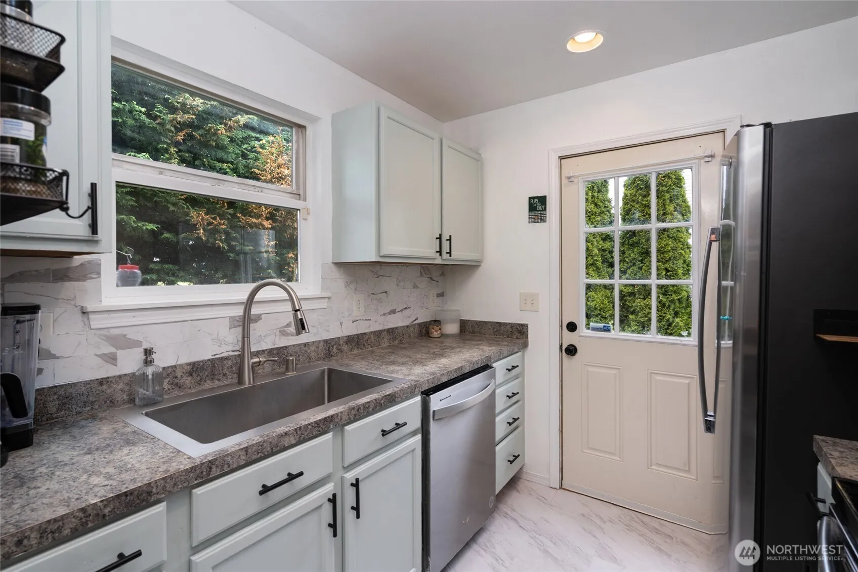 Move-in ready, updated, affordable home located on a quiet cul-de-sac with no HOA. Close to I-5 for commuting and to downtown MV, Skagit Community College and NOT in the flood zone. The recently re-landscaped backyard is fully fenced and features new sod, emerald-green arborvitae trees for great privacy, a large storage shed and sizable TREX deck for entertaining. Upgraded TruDefinition Oakridge Roof installed in 2022. TREX decking front porch opens to upgraded luxury vinyl flooring, custom designed staircase risers and bright finishes that are a statement piece in this home. The energy efficient upgrades include: 90% high efficiency mini split system for heating and AC, heat pump water heater that acts as an additional AC in the summer, LED lighting all throughout and a completely redone crawlspace with new insulation, all significant in helping save you money each month. Kitchen features a beautifully tiled custom backsplash, upgraded sink and new stainless-steel refrigerator. Main level features an additional space that can be turned into an in-home office or primary level bedroom. Downstairs features an upgraded 1/2 bath for guests. Upstairs also features upgraded luxury vinyl flooring throughout. Spacious primary bedroom and an additional bedroom all seamlessly connected to the updated full bath. Enjoy the convenience of having an upper-level stackable SMART washer & dryer giving you additional storage space. Seller offering a $10k credit towards buyer’s closing costs!!