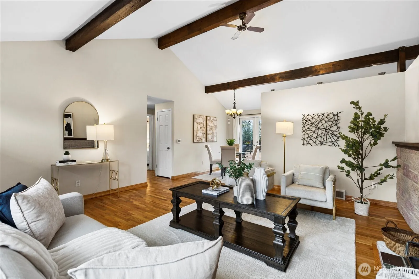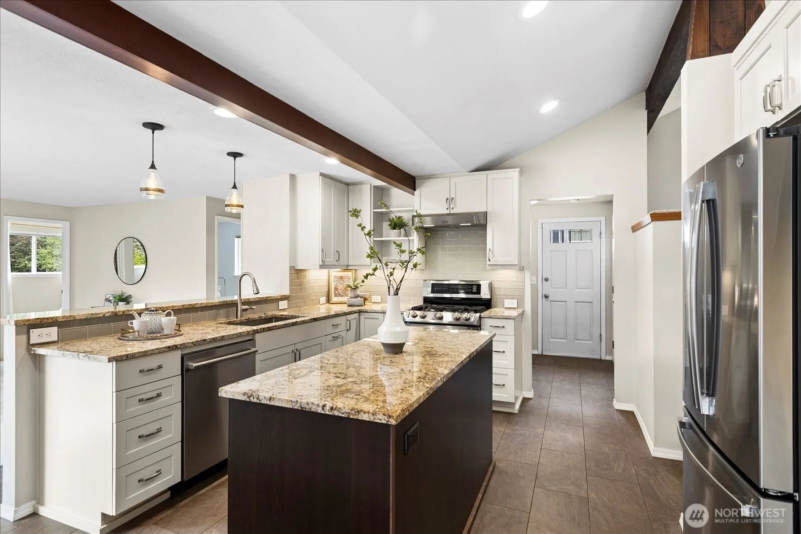Easy, one-level living in a prime Shoreline location. Freshly refinished hardwoods, natural light and everyday comfort—this is a home that lives well. Space to settle in now, with future upside built in. This beautiful rambler offers 1,770 sq ft of effortless living on a private 8,916 sq ft lot. The open layout is both functional and inviting, enhanced by vaulted, beamed ceilings, a living room with a cozy wood stove insert, separate family room and an abundance of natural light. The fully remodeled kitchen—complete with island, gas range, and generous cabinetry—connects seamlessly to the main living spaces and out to an expansive composite back deck, perfect for relaxed mornings and easy entertaining. 4 bedrooms plus a versatile loft provide flexibility without sacrificing comfort. Updated baths, a dedicated laundry room, and an attached garage round out the home’s thoughtful design. Other updates include 200 amp electrical panel, copper plumbing including the supply line, natural gas heat and water heater. There is ample sunny backyard space with a newer shed that’s ready for gardening and play. Ideally located just moments to parks, dining, coffee, groceries, schools, and the Shoreline North light rail station. Zoned MUR-35, offering meaningful long-term development potential for ADUs/DADUs, townhomes, or small-scale multifamily. Enjoy the ease of single-level living today, with options for tomorrow. Pre-inspected and sewer scoped for added peace of mind.
