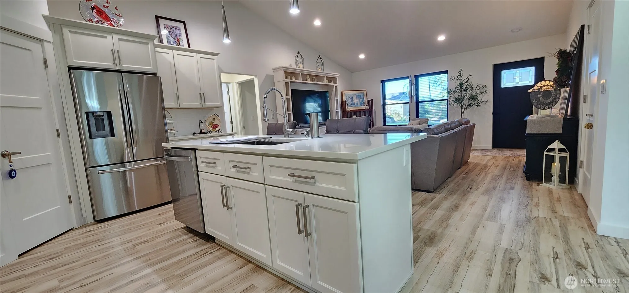 Nestled at the end of a quiet street in the highly sought-after Alderbrook Golf Community, this stunning 2024 home offers the perfect blend of comfort, style, and location. Spanning 1,490 sq ft, the thoughtfully designed floor plan features 2 spacious bedrooms, a large office with closet, and 2 full bathrooms. Step inside to an inviting open-concept layout filled with natural light, enhanced by vaulted ceilings and recessed lighting. The living room flows seamlessly into a chef-inspired kitchen complete with stainless steel appliances, a double oven, a generous island, and elegant quartz countertops—ideal for entertaining or everyday living. Enjoy views of the golf course and relax year-round on the covered rear patio, perfect for taking in the peaceful surroundings. The primary suite offers a luxurious 5-piece ensuite bath and a spacious walk-in closet designed for comfort and convenience. Quality craftsmanship shines throughout with custom tile work, refined finishes, and an oversized 2-car garage providing both function and style. HOA dues include unlimited golf for two (non-tournament), clubhouse access, tennis and pickleball courts at Wickiup Park, plus social activities at The Annex. Whether full-time living or short/long-term rental, this home delivers resort-style living at its best with access to Alderbrook Golf Course and amenities. Home can be turnkey and may include all furniture.
