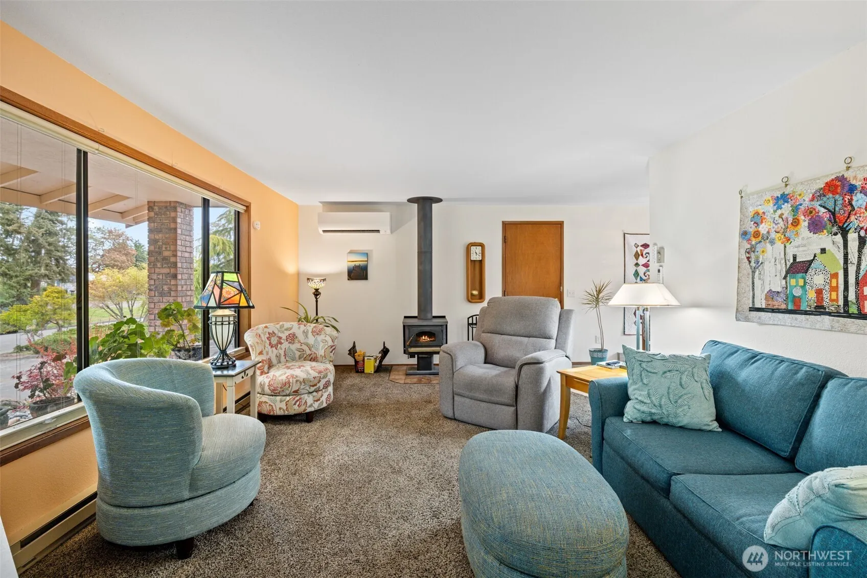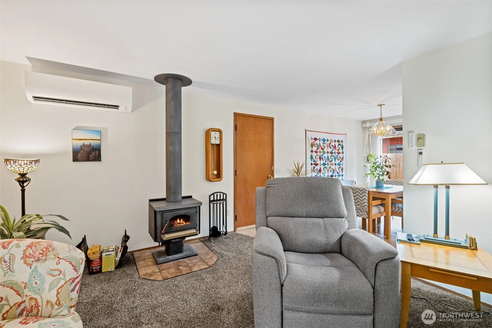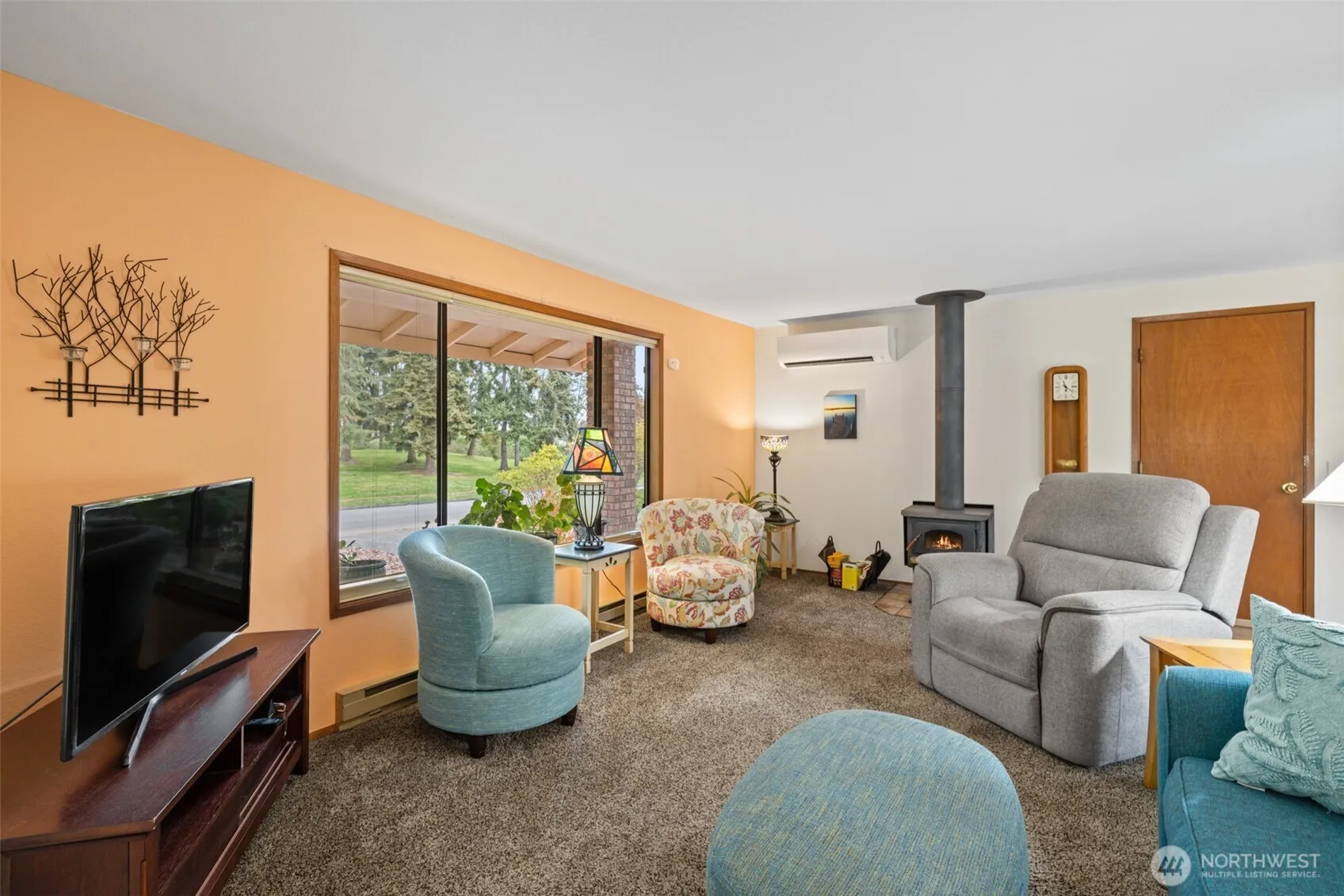 This impeccable rambler has been lovingly cared for and has everything you need! Well laid out floor plan and updated kitchen with separatedining area. All rooms are spacious and the living room offers a woodburning stove as well as a new ductless heat pump. Mature landscapingand a new deck to enjoy this park like setting. Attached 2 car garage plus additional concrete pad for RV/Boat etc. Short distance to Schools,shopping & Park, greenbelt across the street.