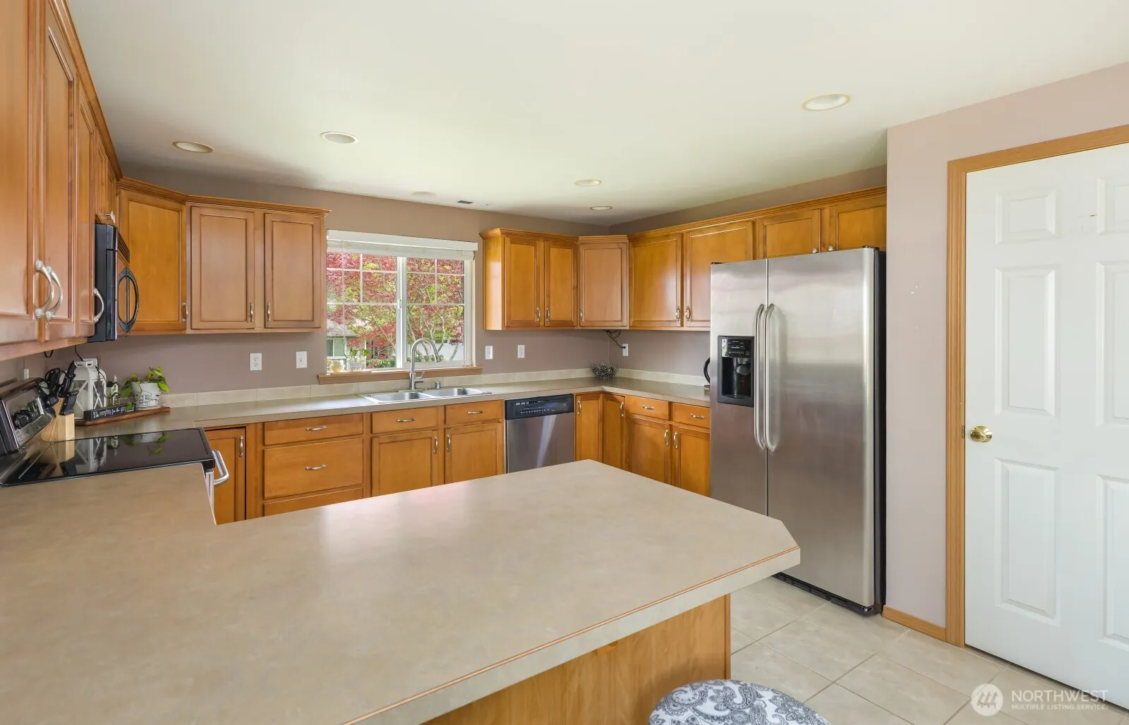 Well maintained 4 bedroom, 2.5 bath, 2175 sq ft home in Grandview Heights! A welcoming entry leads into a country kitchen, complete with an abundance of birch cabinets, stainless appliances, and a large peninsula. Kitchen opens into semi-formal dining area and a spacious great room with cozy gas fireplace. Main floor also includes a large primary bedroom with 4 piece bathroom, walk-in closet, functional laundry space, & additional half bath for guests. Upstairs you will find 3 additional bedrooms with large closets, a full bathroom & additional flex/office space. This home has wonderful curb appeal, easy to maintain landscaping, fenced back yard, a covered backyard patio, and a cozy 9’x16′ shed/shop. Great location, close to amenities, shopping, schools & services!
