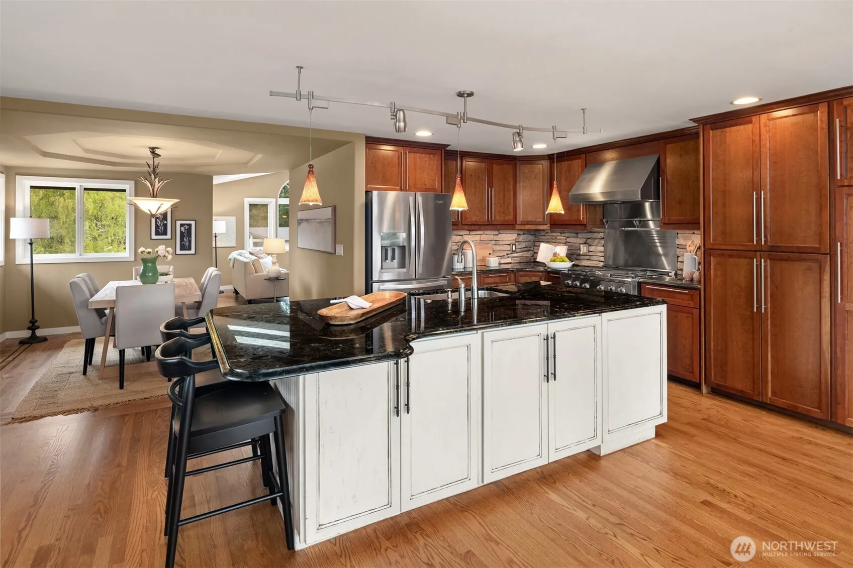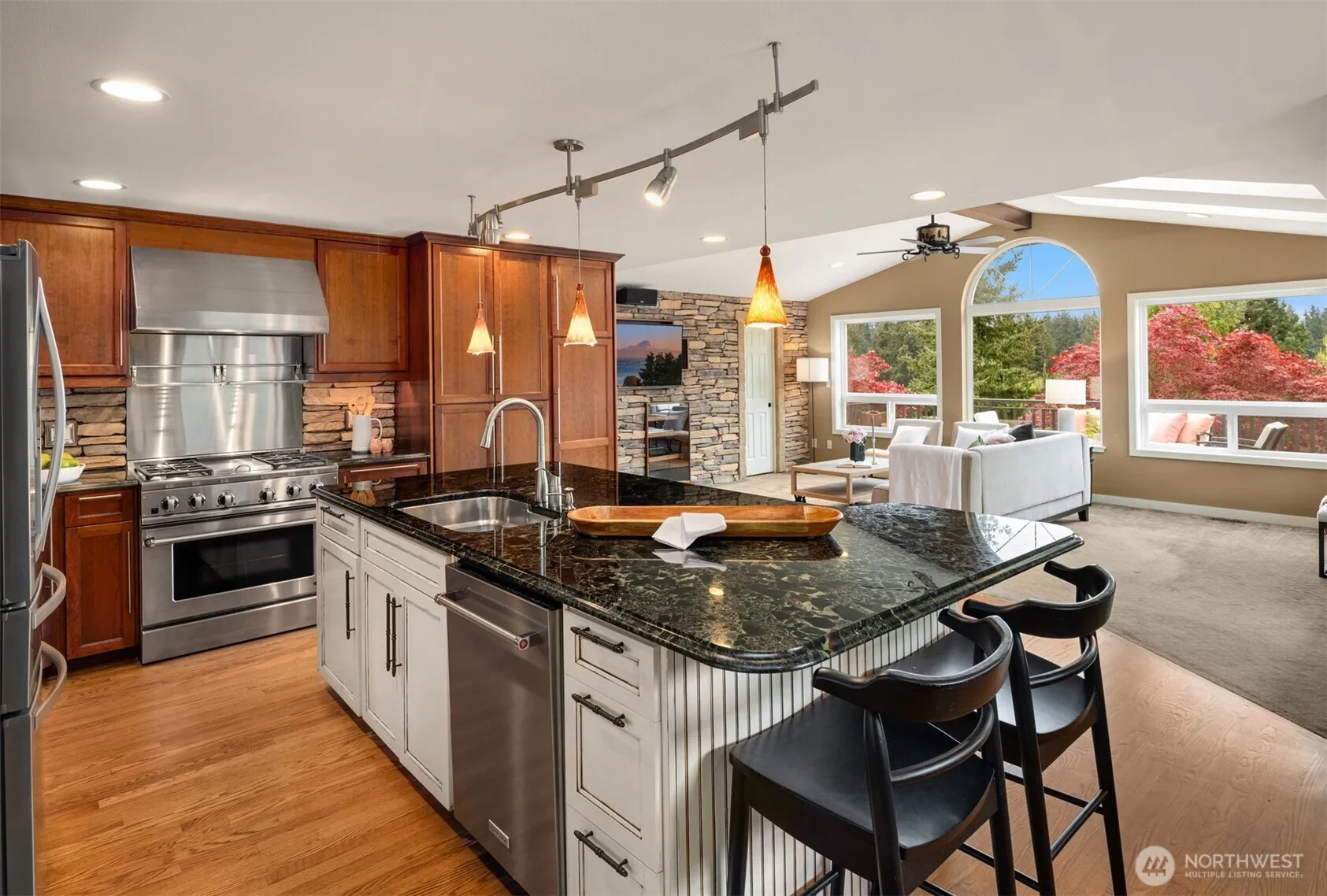 This gorgeous custom-built Craftsman has been meticulously maintained by its original owners since 1993. Sited on an expansive ~14K sq ft lot and completely renovated in ‘08 with high quality timeless finishes, this home offers thoughtful design and easy livability. A welcoming formal entry w/ soaring ceilings leads to the main living level, where two living rooms, a gas fireplace, vaulted ceilings, skylights & beautifully refinished hardwoods create a light-filled, inviting atmosphere. The kitchen is a true centerpiece, anchored by a large Italian granite island w/ bar seating & abundant storage, flowing seamlessly into the sun-drenched living room w/ sweeping territorial views stretching toward Big Gulch Park. French doors open to a low maintenance, south-facing composite deck overlooking the fenced backyard. The functional layout offers 3 beds on one level, including a primary suite w/ its own private deck, generous walk-in closet, and a spa-like, fully tiled 5-piece bath featuring a jetted soaking tub, waterfall shower, sconce lighting & radiant heated floors. A full guest bath w/ double sinks serves the additional bedrooms. Distinctive rock wall accents in the living, kitchen & primary add warmth and texture, while central A/C keeps the home comfortable year-round. The daylight basement includes a rec room, 4th bed, ¾ bath & laundry. All this plus ample parking for your RV, boat, or adventure van, plus a 963 sq ft workshop offering incredible space for hobbies & storage.