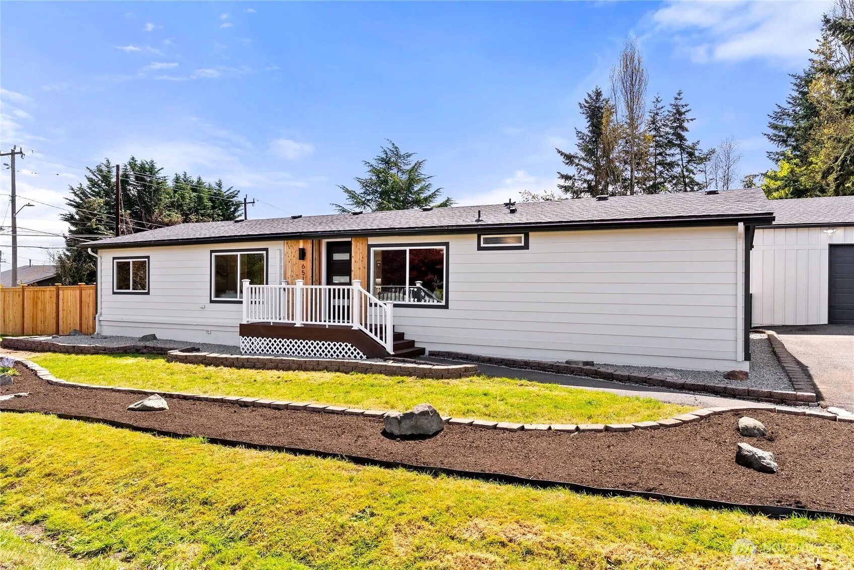 Must-see 3-bedroom, 2-bathroom home in the heart of Burien offering comfort, style, and exceptional functionality. Situated on a generous fully fenced lot, this property features a detached 700 sq ft garage/shop with additional storage space—perfect for hobbies, projects, or extra parking—along with an impressive oversized 320 sq ft deck ideal for entertaining and outdoor living.Step inside to a bright and inviting interior with vaulted ceilings and a spacious living room centered around a modern electric fireplace with a designer accent wall. The updated kitchen showcases a peninsula layout, custom backsplash, stainless steel appliances, and seamless flow into the dining area, creating a perfect open-concept gathering space. The stunning primary suite features a custom accent wall, walk-in closet, and a beautifully remodeled bathroom with a freestanding soaking tub and separate shower. The guest bathroom is equally refined with stylish tile work and upgraded lighting. Two additional well-sized bedrooms provide flexibility for guests, office, or lifestyle needs. Located just minutes from shopping, dining, parks, and major commuter routes, this home offers quick and easy access to Seattle and Sea-Tac Airport while maintaining a peaceful residential feel. A rare combination of space, updates, and convenience—truly a must-see opportunity.