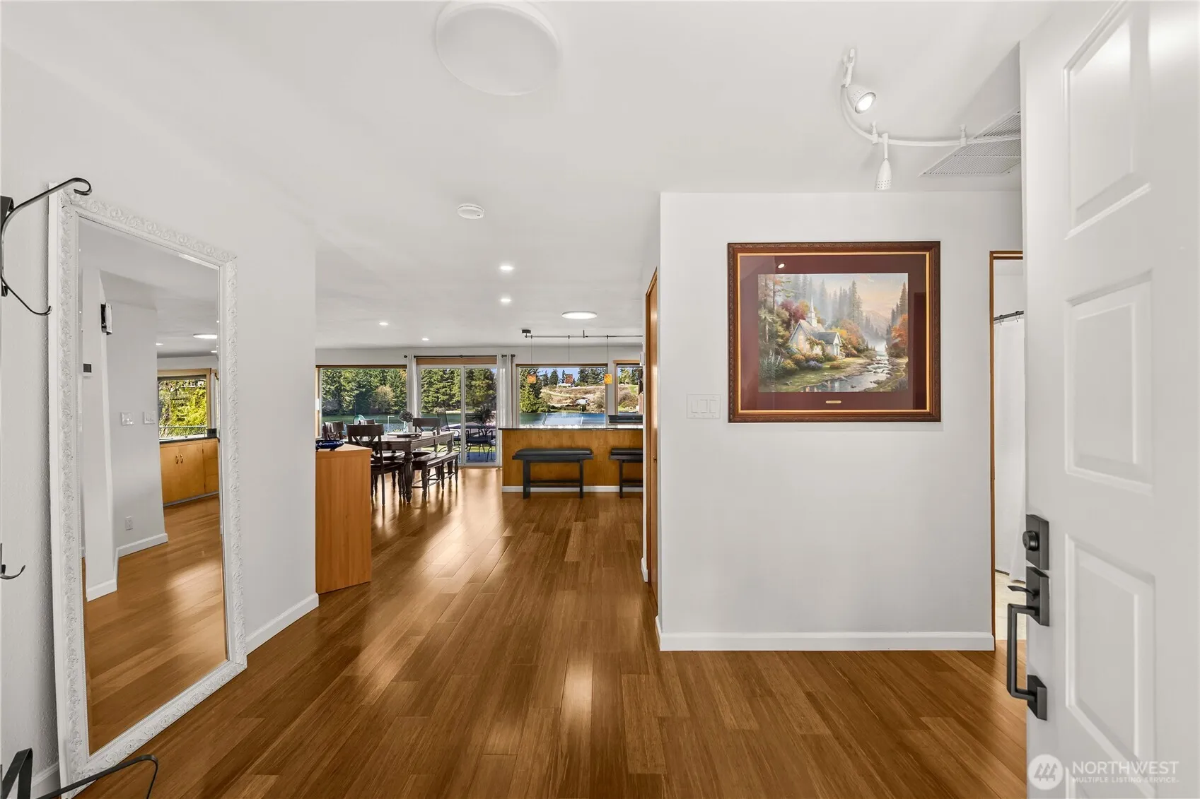 Tucked away on a private cove on Lake Tapps, this exceptional low-bank waterfront retreat offers 80 ft of frontage on a 21,745 sq ft lot with effortless access—just steps from the home to the deck and shoreline. Designed for lake living, the outdoor space features a 900 sq ft porcelain paver patio, 14×20 cedar-covered area, hot tub, pea gravel beach, paved walkway, two docks, and dual covered powered Sunstream boat lifts. Mature landscaping, raised garden beds, and a fully fenced yard with invisible fencing enhance privacy. Inside, enjoy open-concept living with spacious rooms, custom birch cabinetry and doors, wood-wrapped windows, and built-ins throughout. The kitchen includes a new GE Profile refrigerator and Beko dishwasher. Flexible theater/bunk room plus built-in queen Murphy bed in the second bedroom. Major updates include a 50-year roof (2022), gas water heater (2023), heat pump (2025), and fresh interior/exterior paint (2026). The garage is over 1100 sq ft of space across two bays (one used as media room) plus outdoor parking for 10–12 cars. A rare opportunity to enjoy private, turnkey waterfront living on Lake Tapps. Conveniently located on the north end of Lake Tapps for easy commuting to shopping & freeways. This may be the home you have been waiting for. A rare opportunity to enjoy private, turnkey waterfront living on Lake Tapps.