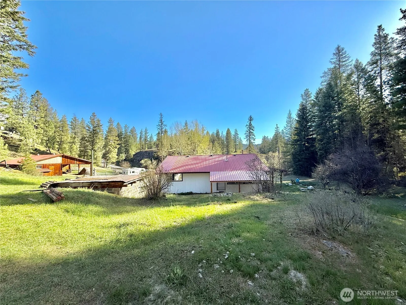 Tonasket – Aeneas Valley – Year Round Spring – Mountain Side Oasis with 40+ acres. Bailey Creek running right through it! Multiple pasture sites for livestock & cross fencing. Surrounded by trees, rolling topography of Aeneas, & beautiful seating areas throughout to enjoy the scenery. Additional parcel above dwelling (included in sale). Wood storage. Hay barn/Rv parking & chicken coop. Outside cellar or fun hobbit hole! 2+ bedroom/1.75 bath 1440sqft home w/enormous living room & wood burning stove, dining room, kitchen – all appliances stay, three-quarter bath, laundry room, 2 additional finished rooms, primary bedroom with full en-suite, additional bedroom w/exterior door to outside lean-to. Private Well. Septic. $355,000 MLS-2511538/H-3750