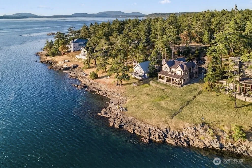 Experience the ultimate in coastal living in this stunning Craftsman-style home set on rare no-bank waterfront in the coveted community of Cape San Juan. This architectural masterpiece is beautifully crafted with timeless, high-end finishes throughout. Impeccably maintained, the residence feels brand new and offers an unparalleled standard of island luxury. Enjoy dramatic western exposure that provides a front-row seat to the Salish Sea’s most unforgettable sunsets each evening. The heart of the home is a gourmet chef’s kitchen that opens seamlessly to a heated, covered patio, creating a perfect environment for year-round dining and sophisticated entertaining. The thoughtful floor plan features two spacious primary suites, one on each level, to provide comfort and flexibility. Two additional bedrooms and den/office space are strategically placed within the home to ensure privacy. Unwind by the cozy fireplace or step outside to launch your kayak or paddleboard directly from your own pebbled beach. Enjoy the convenience of your own private mooring buoy for your boat. Offering a unique connection to nature where you can enjoy watching abundant wildlife. As part of the coveted Cape San Juan community, you will also have access to top-tier amenities including a seasonal swimming pool, a private marina, a sandy beach, and miles of expansive scenic walking trails. This is a rare waterfront retreat designed for creating a lifetime of memories in a setting of unmatched natural beauty.